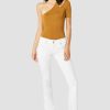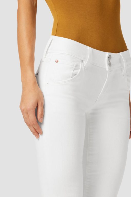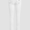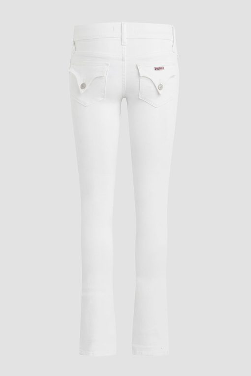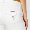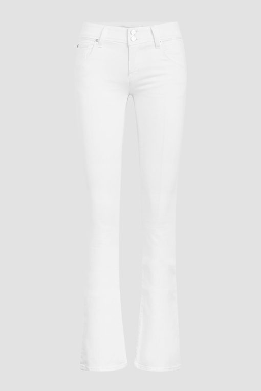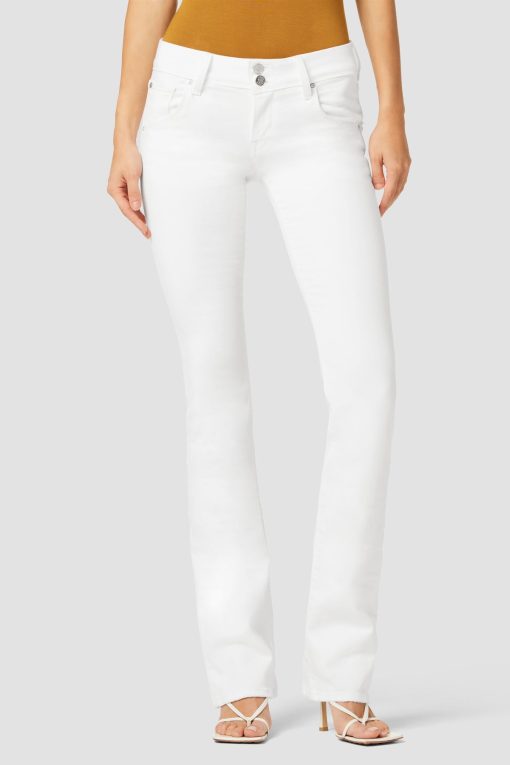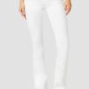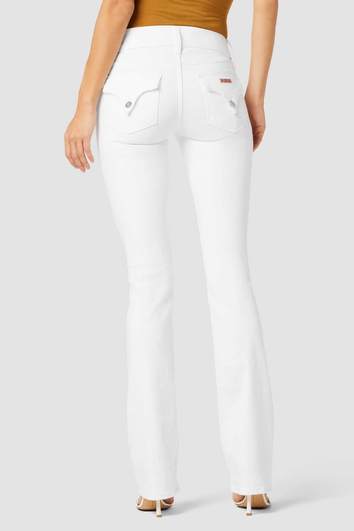 - Cut with premium super stretch denim that smooths, sculpts, and will never sag, our Beth Mid-Rise Baby Bootcut Jean in White features a subtly flared silhouette and our signature button-flap back pockets.