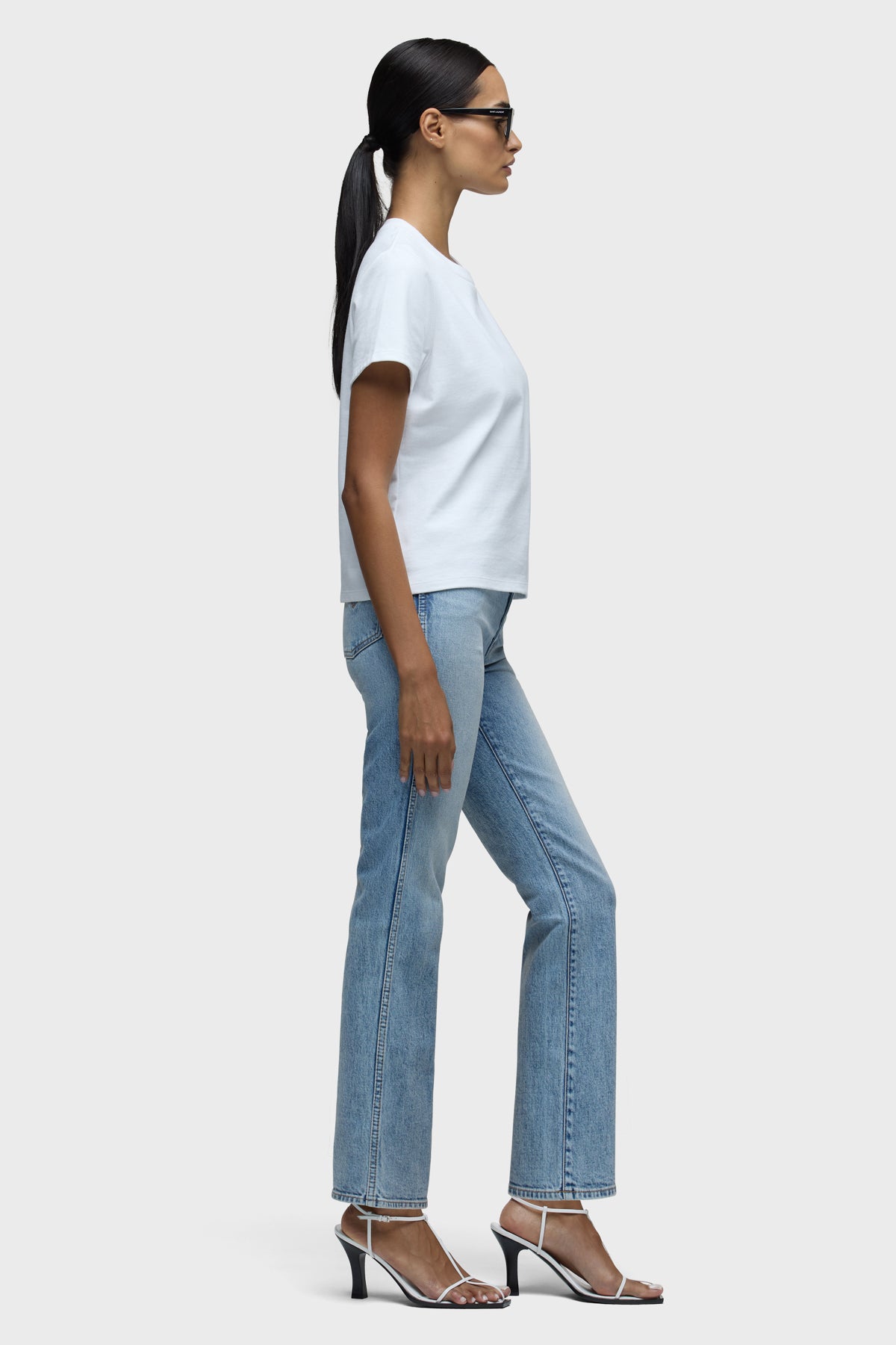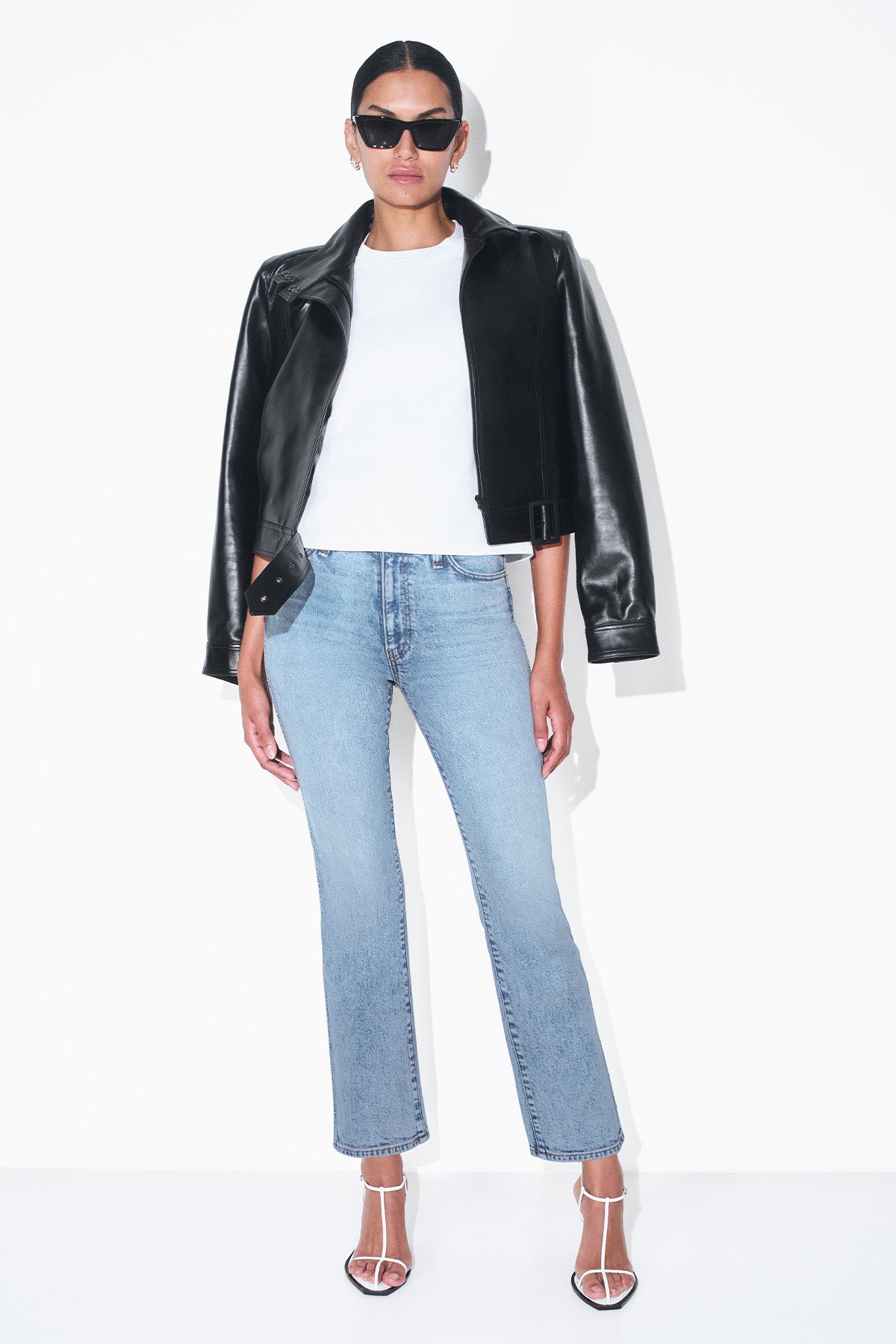 - Part of our Brooks Nader collab capsule, the Breaux High-Rise Straight Ankle Jean in Envie is a high-rise style that fits snug throughout the body. It features a 28″ inseam with clean finished hem. To elevate the look, we added gold branded buttons and a navy leather branded patch to the back waistband. This pair is made of Italian comfort stretch denim in a light mineral indigo with acid washing, whiskering and edge grinding. This capsule was curated by model Brooks Nader and features her personal closet must-haves.