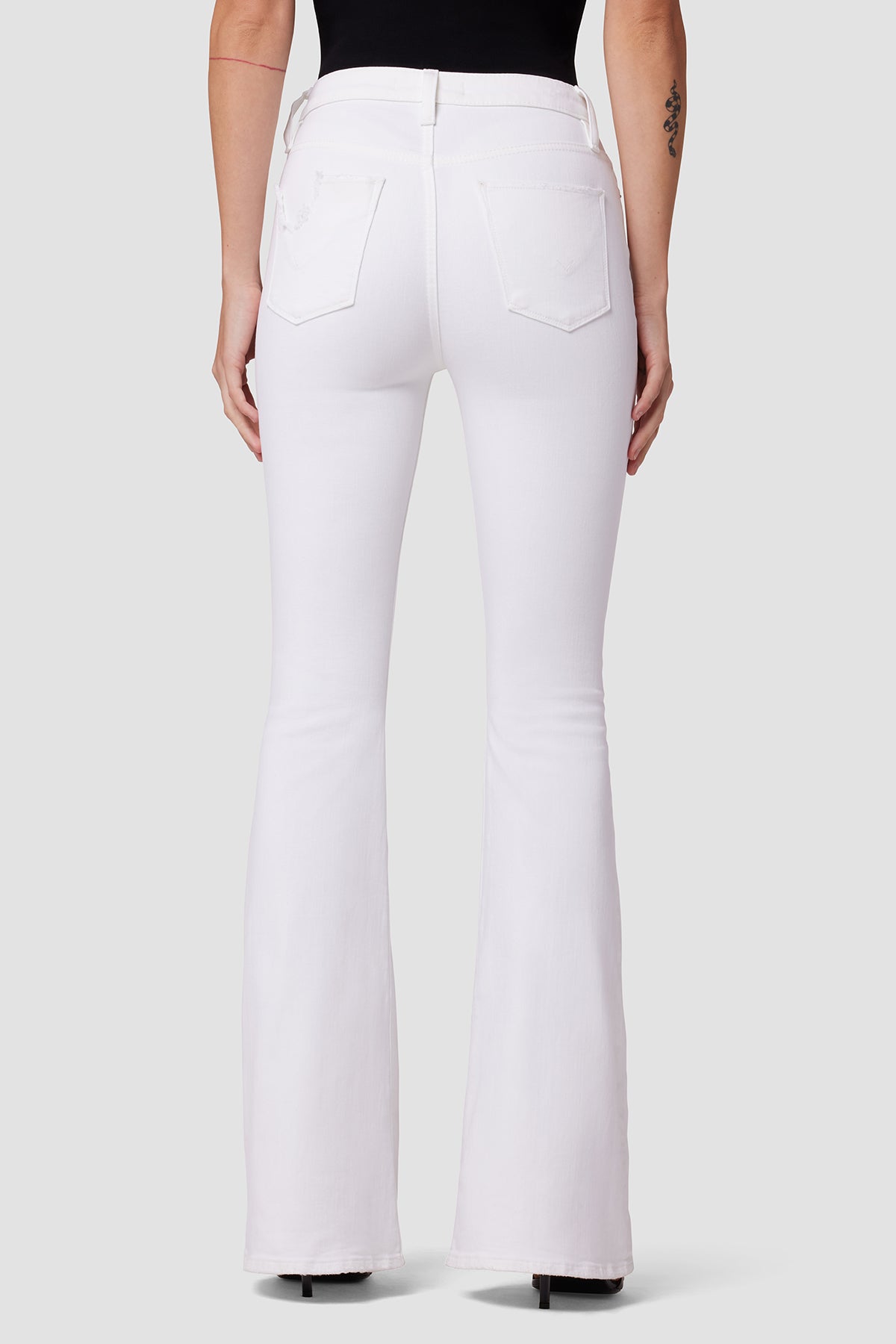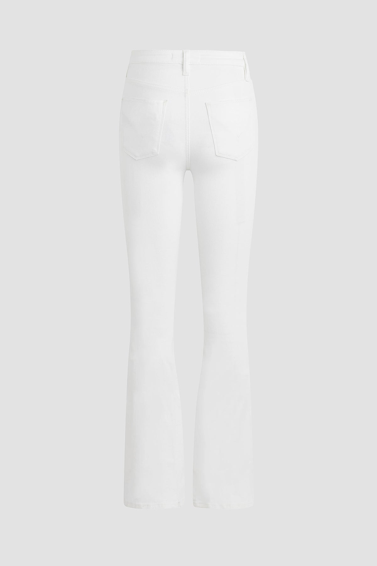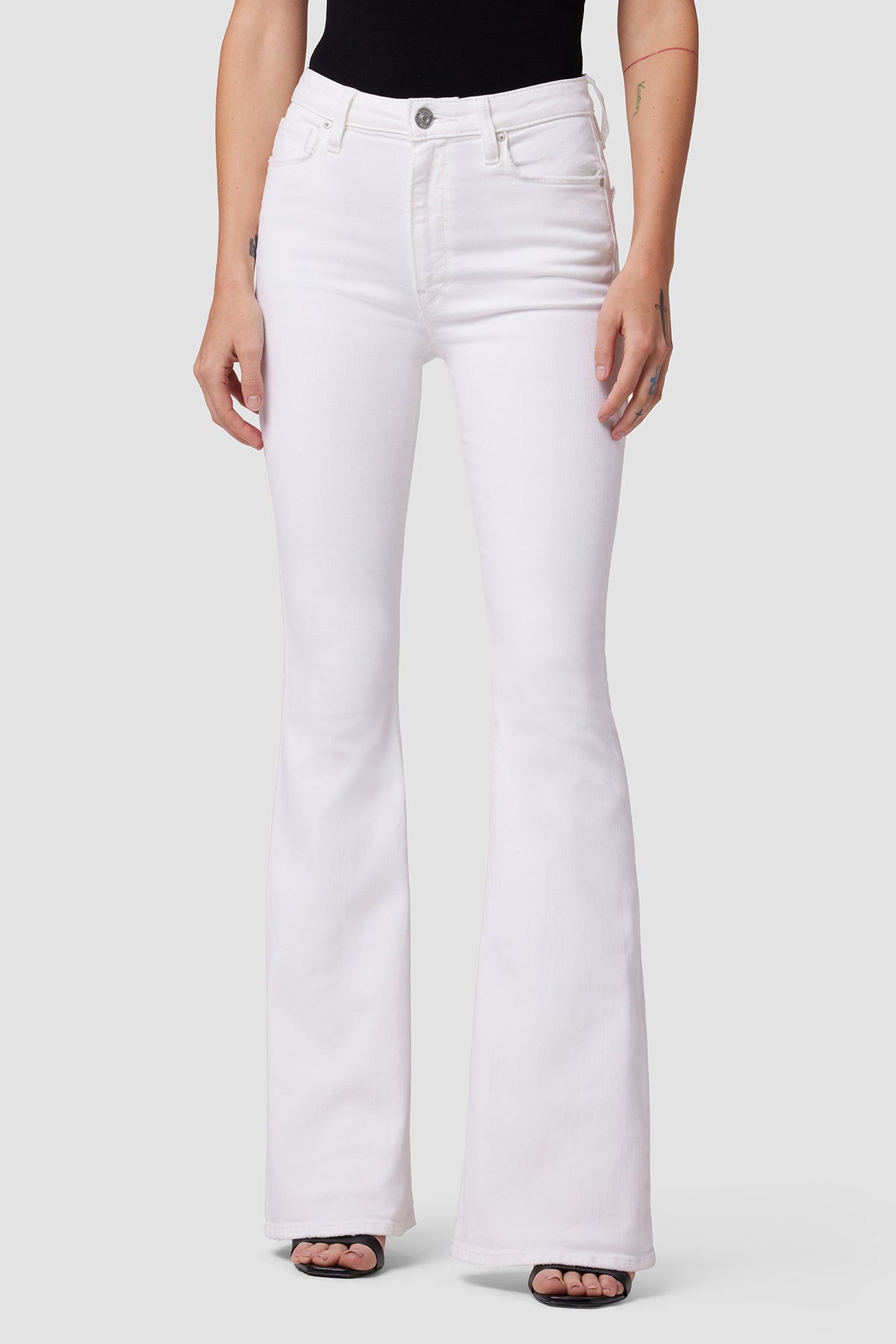 - Our Holly High-Rise Flare Jean in White Horse is cut from premium super stretch denim. Features an elevated waistline, classic five-pocket details, and a fitted leg that breaks at the knee.