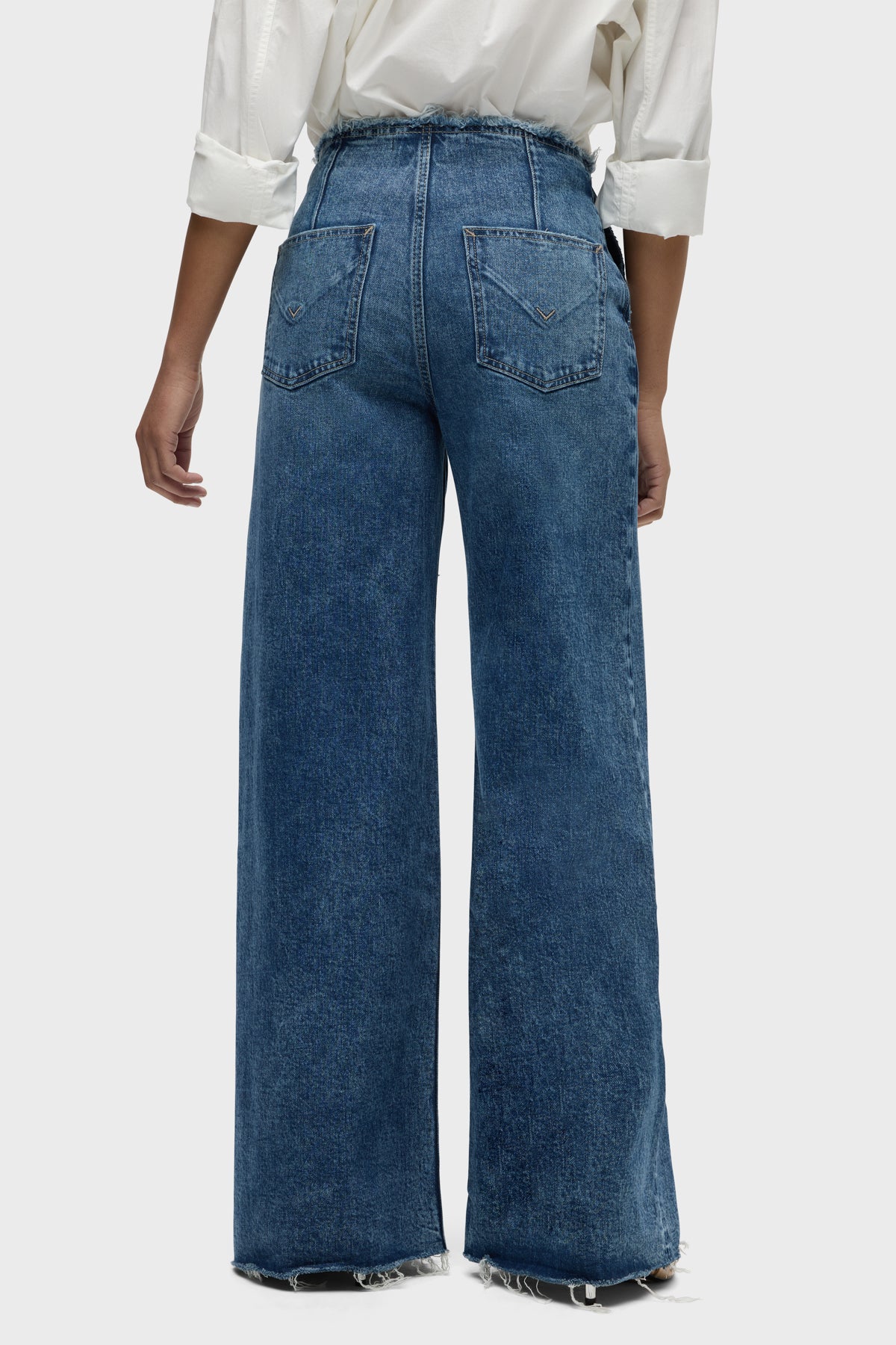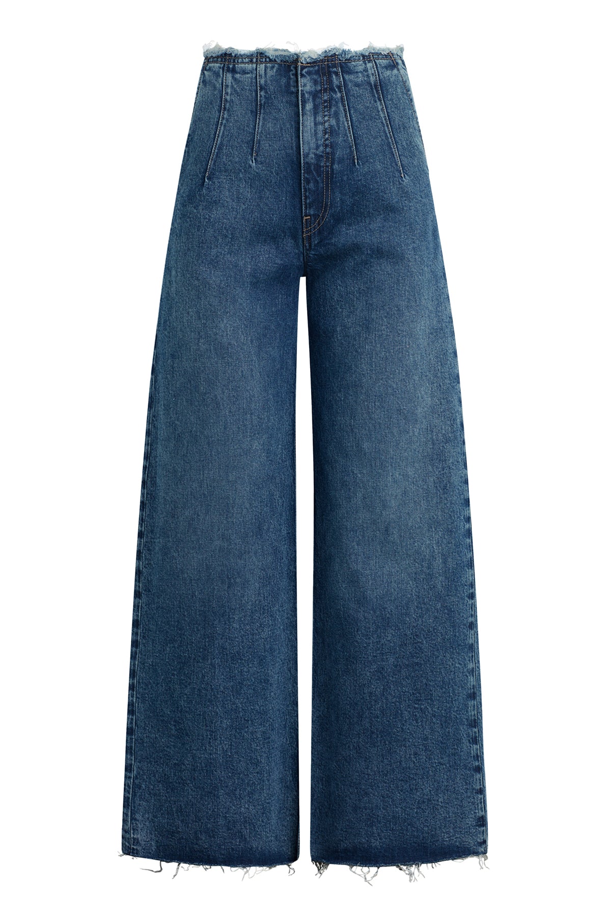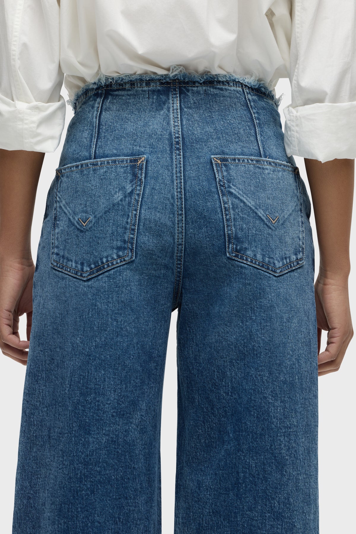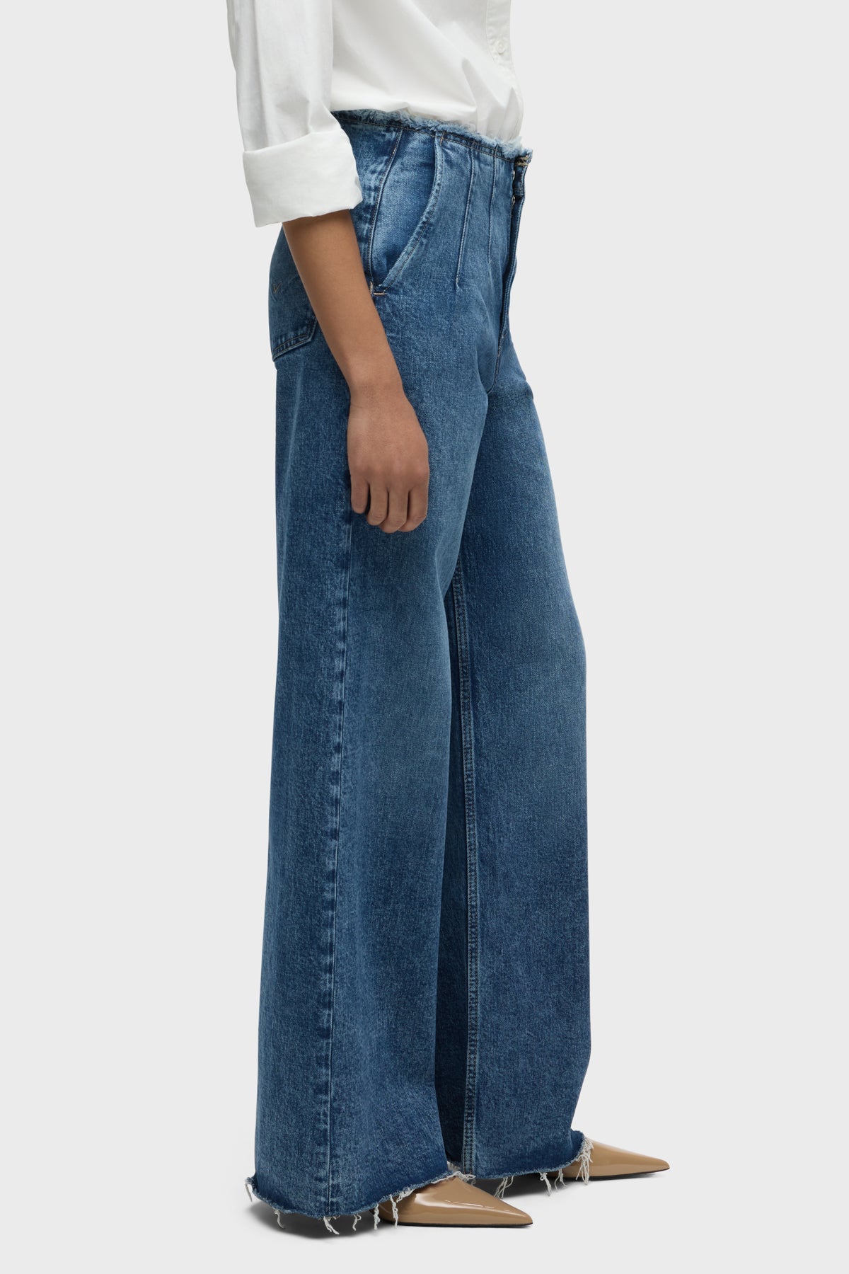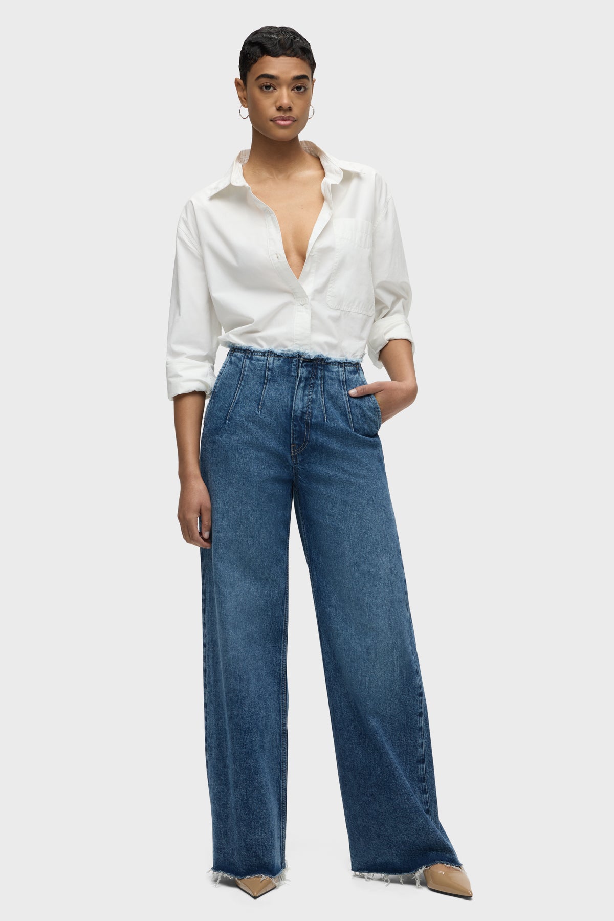 - Our James High-Rise Darted Wide Leg Jean in medium-indigo Mallorca wash is cut from Italian premium comfort stretch denim with an elevated waist and wide leg. It’s finished with front darts, a frayed-edge waistband, grinding along the edges, a raw hem and trouser pockets.