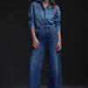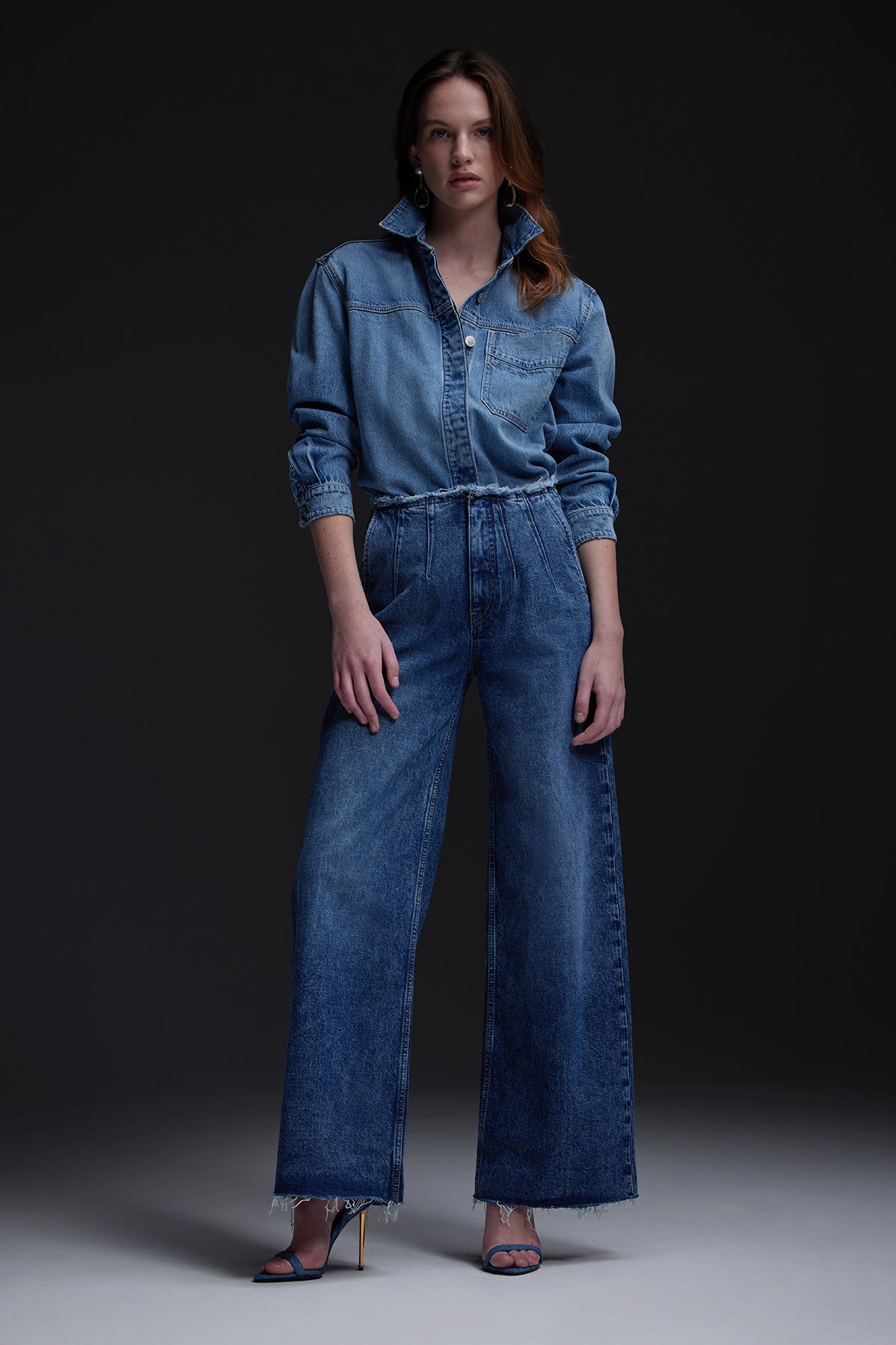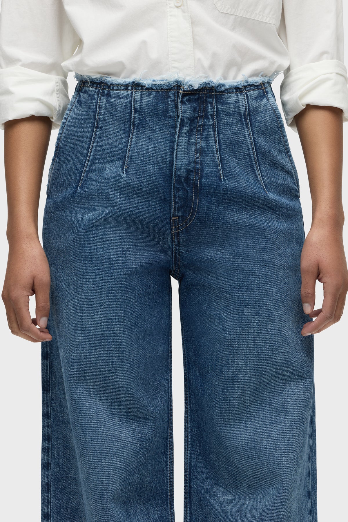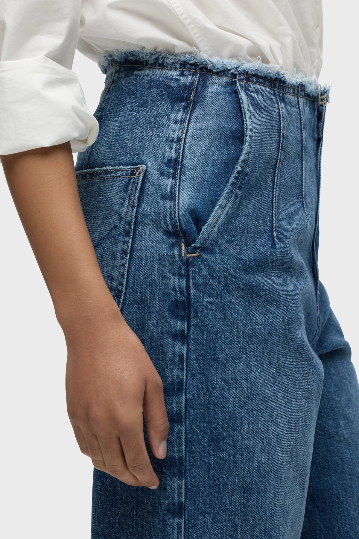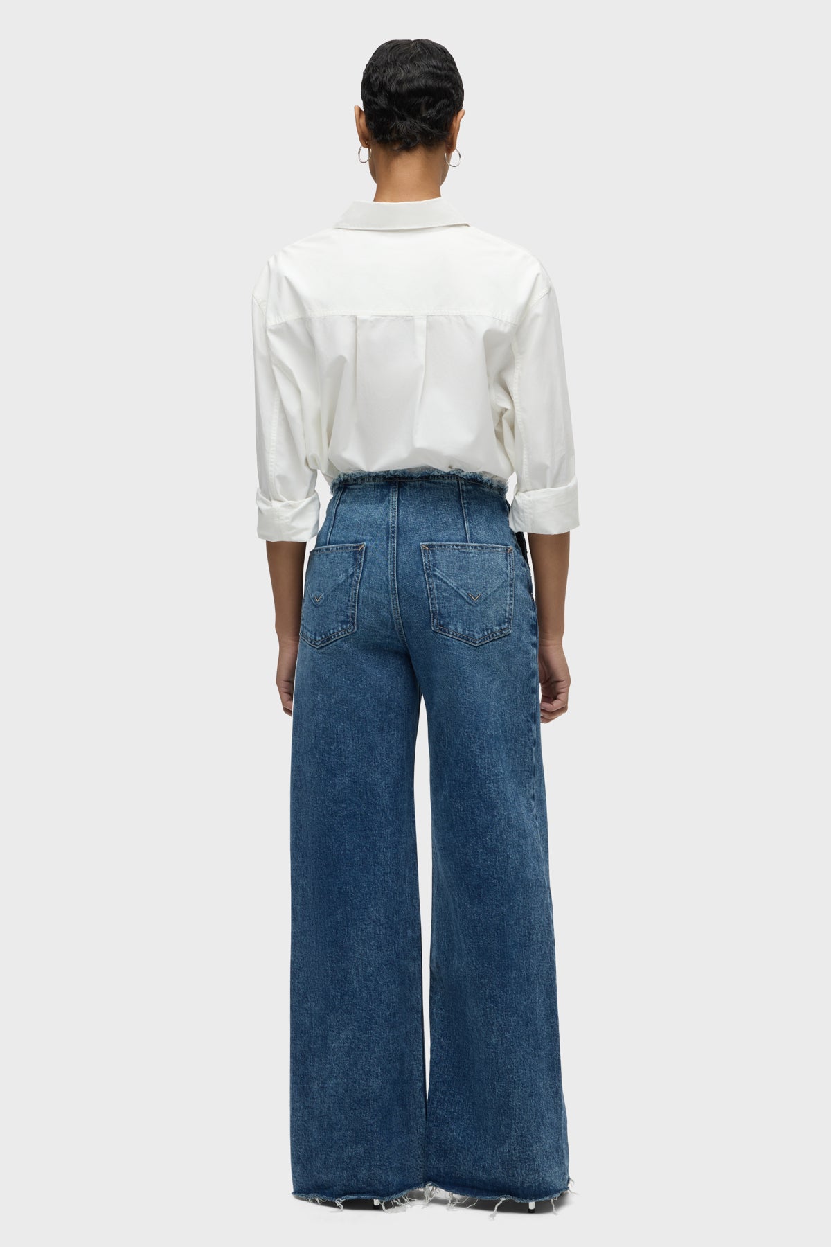 - Our James High-Rise Darted Wide Leg Jean in medium-indigo Mallorca wash is cut from Italian premium comfort stretch denim with an elevated waist and wide leg. It’s finished with front darts, a frayed-edge waistband, grinding along the edges, a raw hem and trouser pockets.