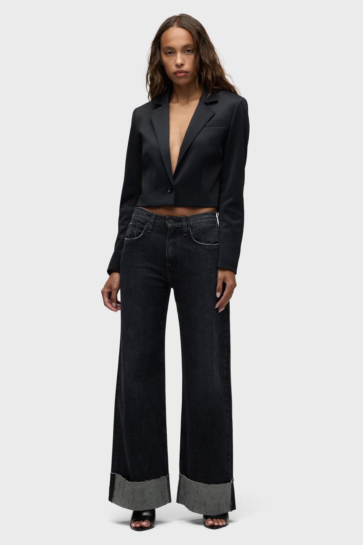 - Our Jodie Wide Leg Petite Jean w/ Cuff in washed black Milano Noir is cut in a must-own, roomy fit with a 28″ inseam and a wide cuff. The pair is made from premium Italian comfort stretch denim and is finished with grinding along the edges.