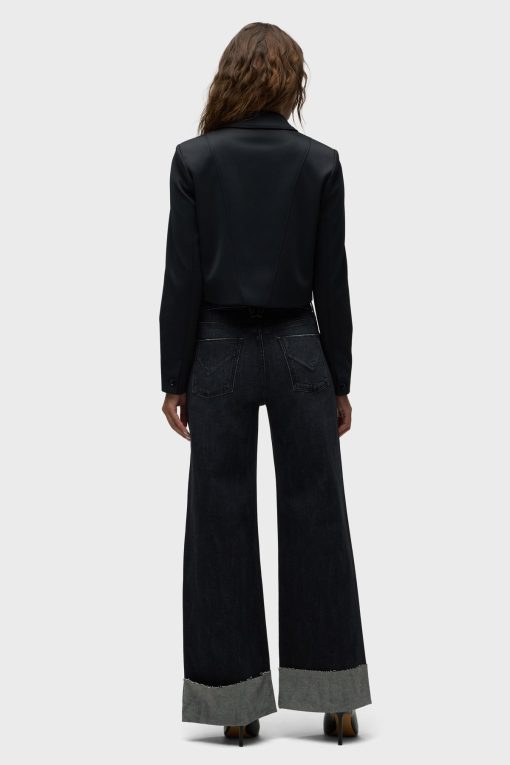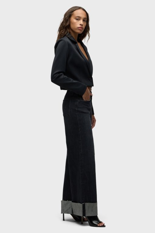 - Our Jodie Wide Leg Petite Jean w/ Cuff in washed black Milano Noir is cut in a must-own, roomy fit with a 28″ inseam and a wide cuff. The pair is made from premium Italian comfort stretch denim and is finished with grinding along the edges.