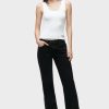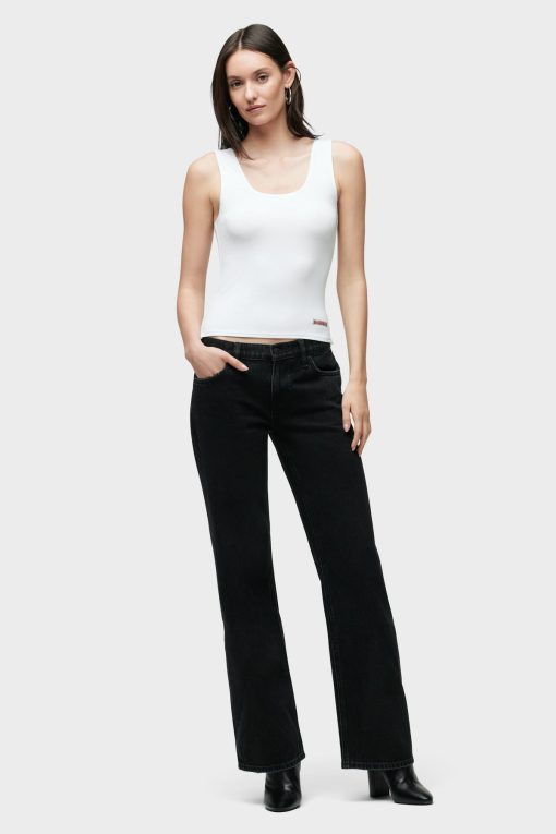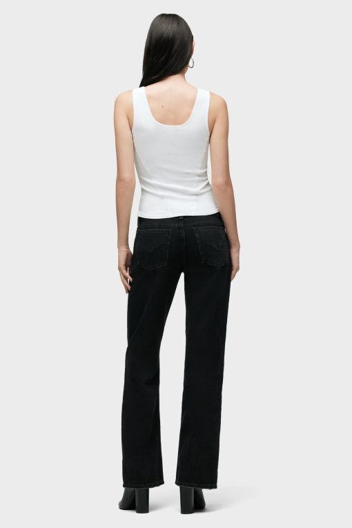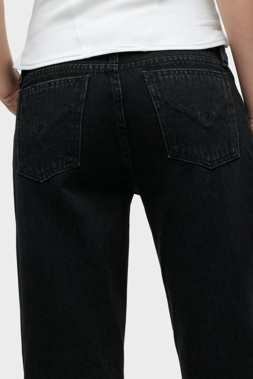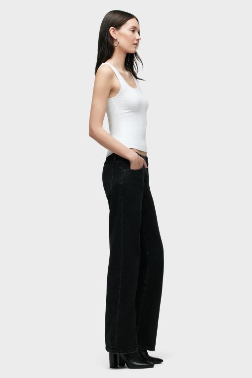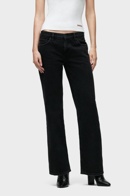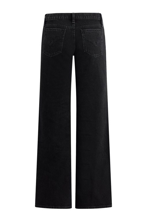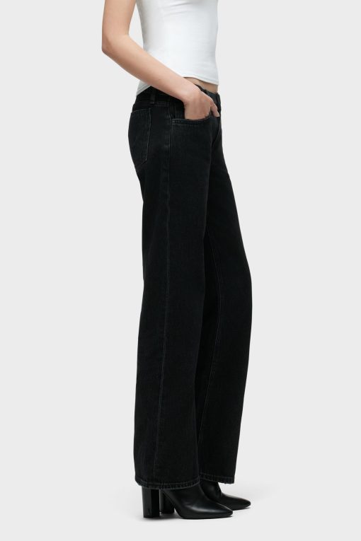 - Our Kelli Low-Rise Loose Straight Jean is cut from premium rigid denim in washed down Stone Black. The fit is cut to hang loose at the hips with a relaxed look through the knees and thighs. Pair with matching Shacket for a complete look.