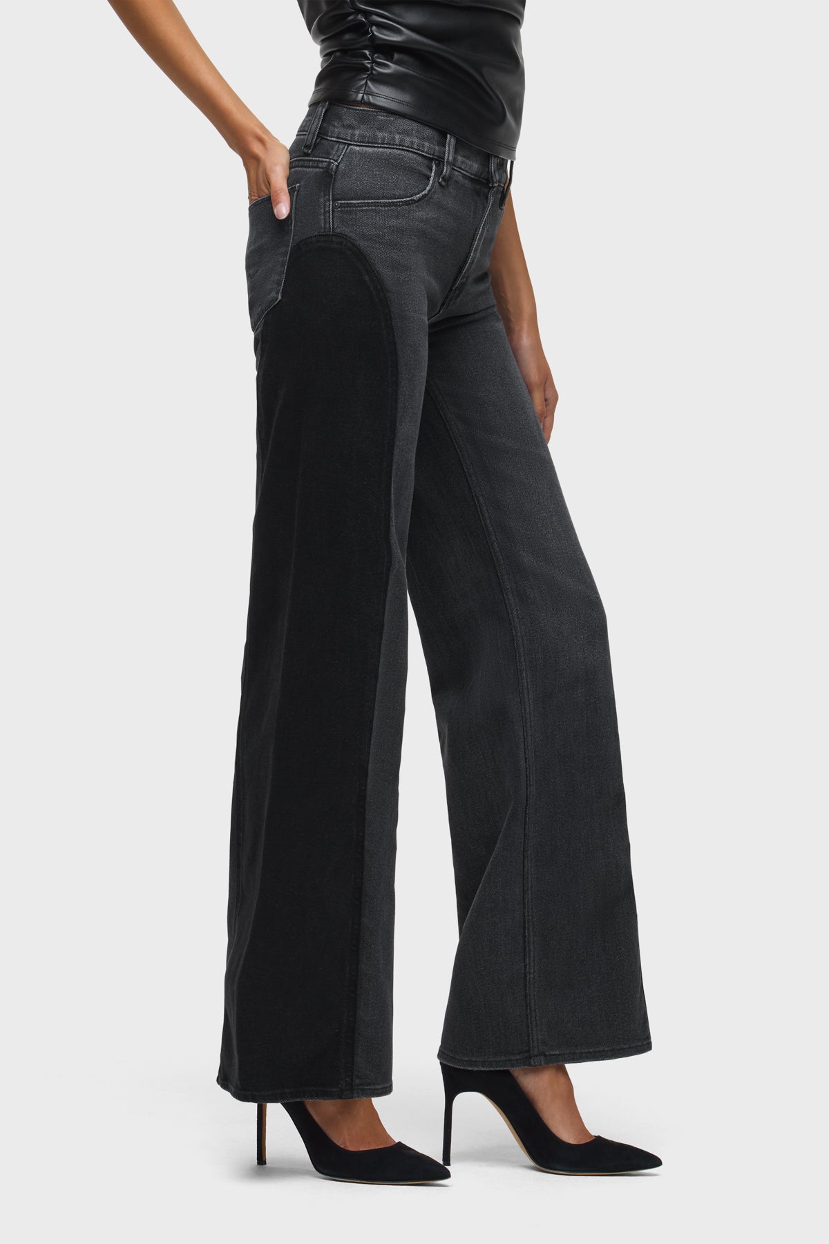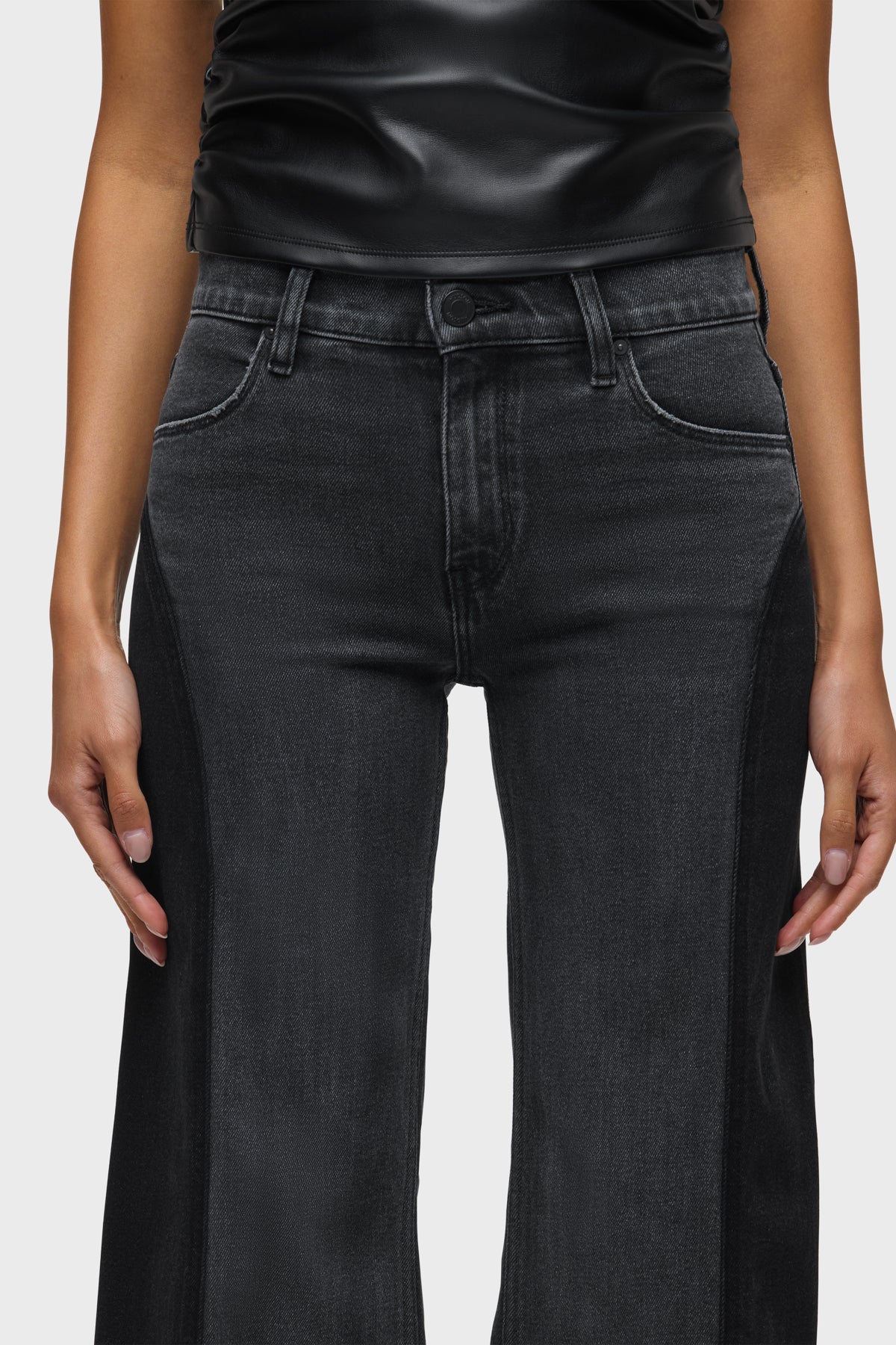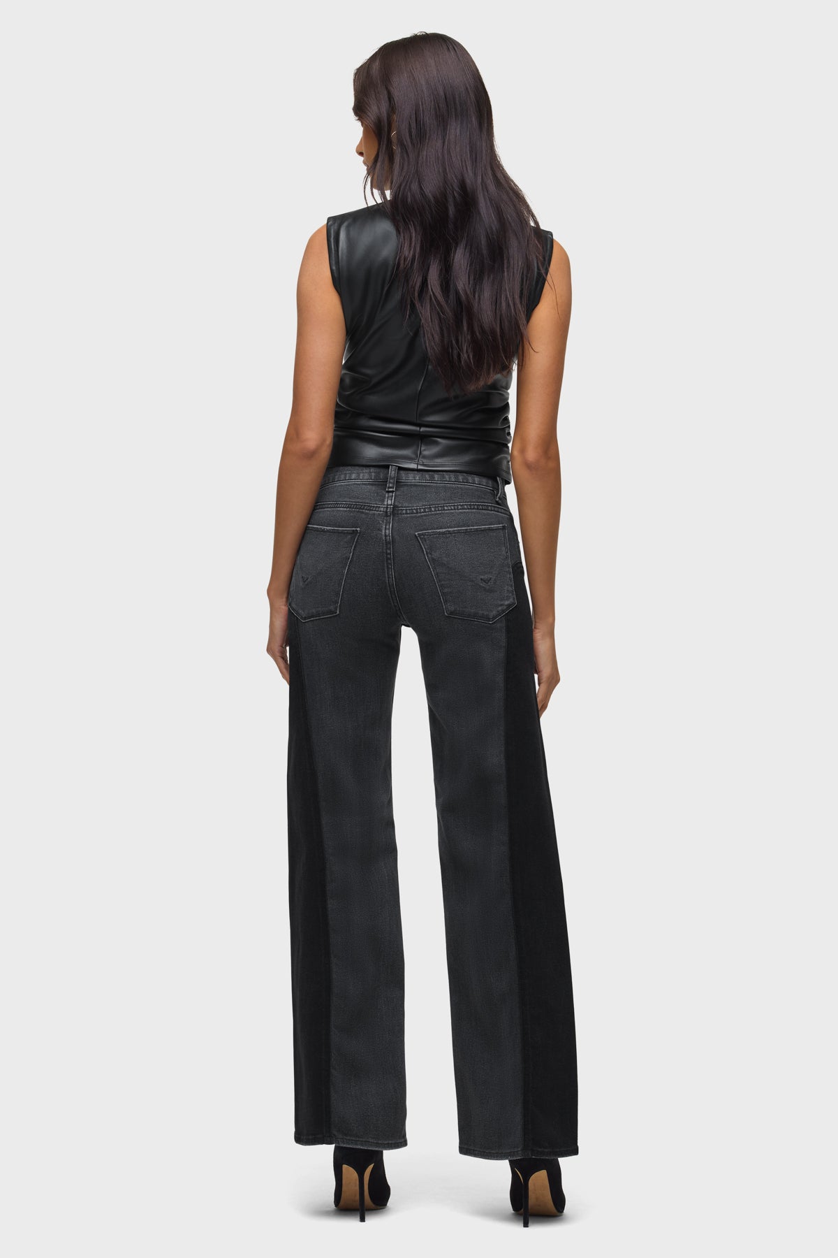 - The Lexi Seamed Wide Leg Jean in Double Side features a washed black body with a contrasting clean black side inset. These jeans are made of comfort stretch black denim with a clean finished hem.