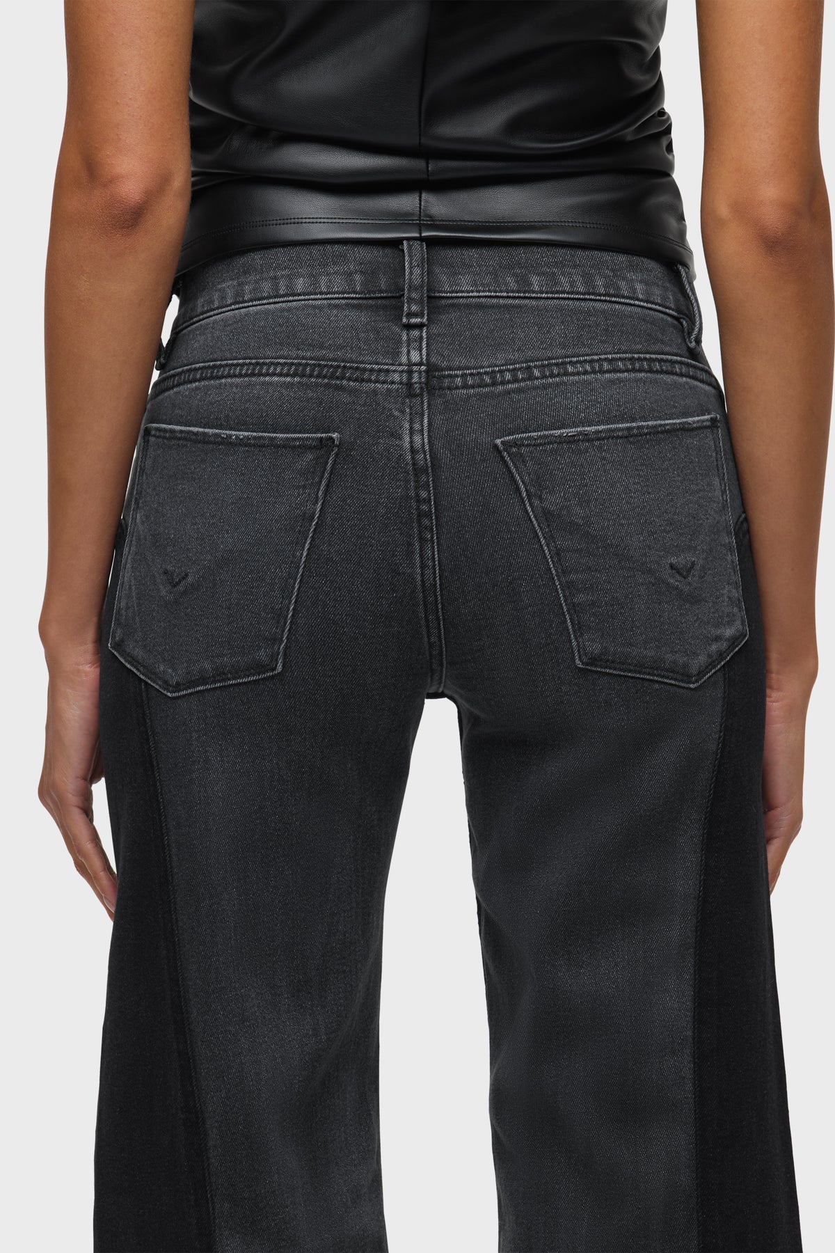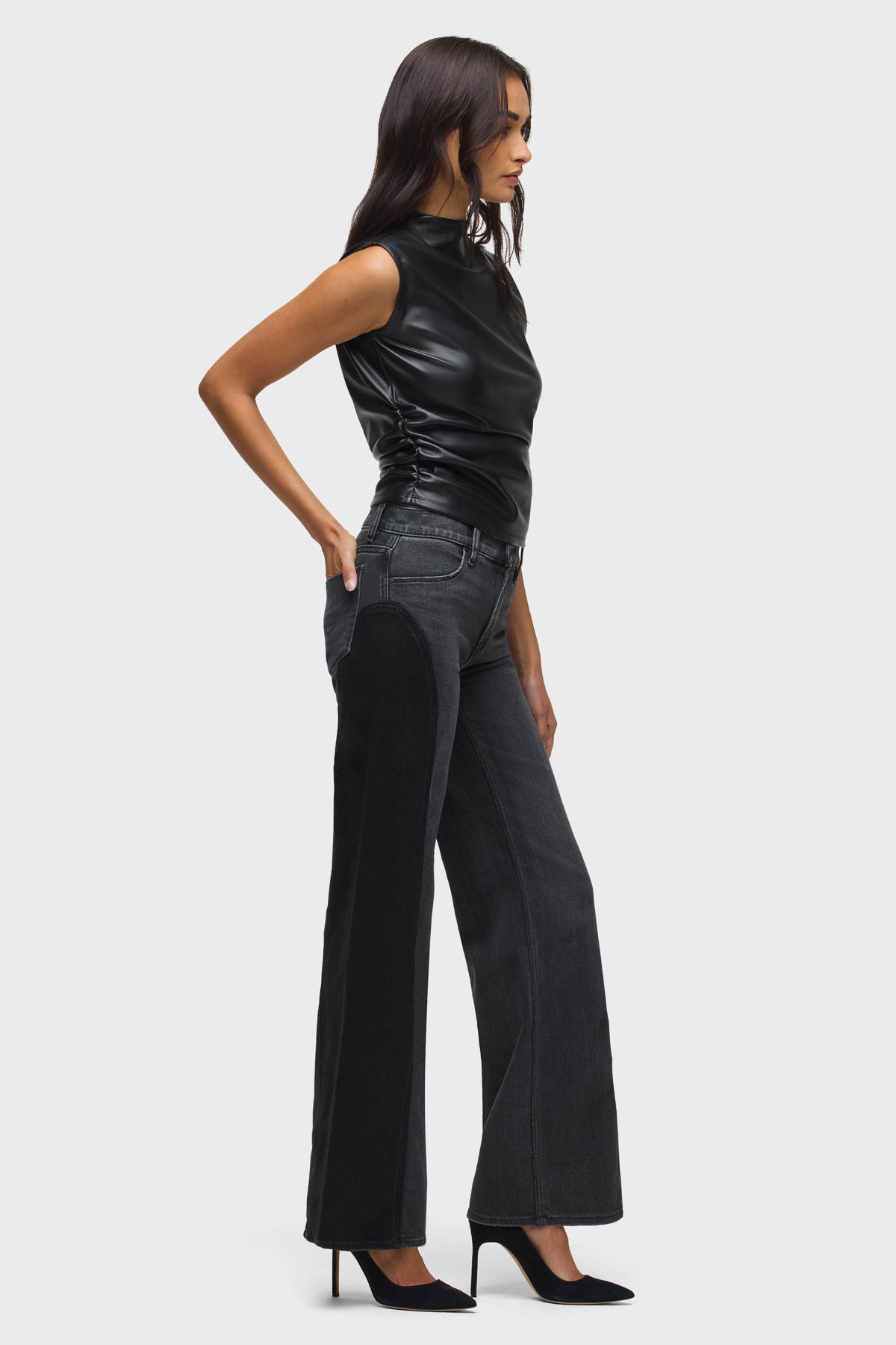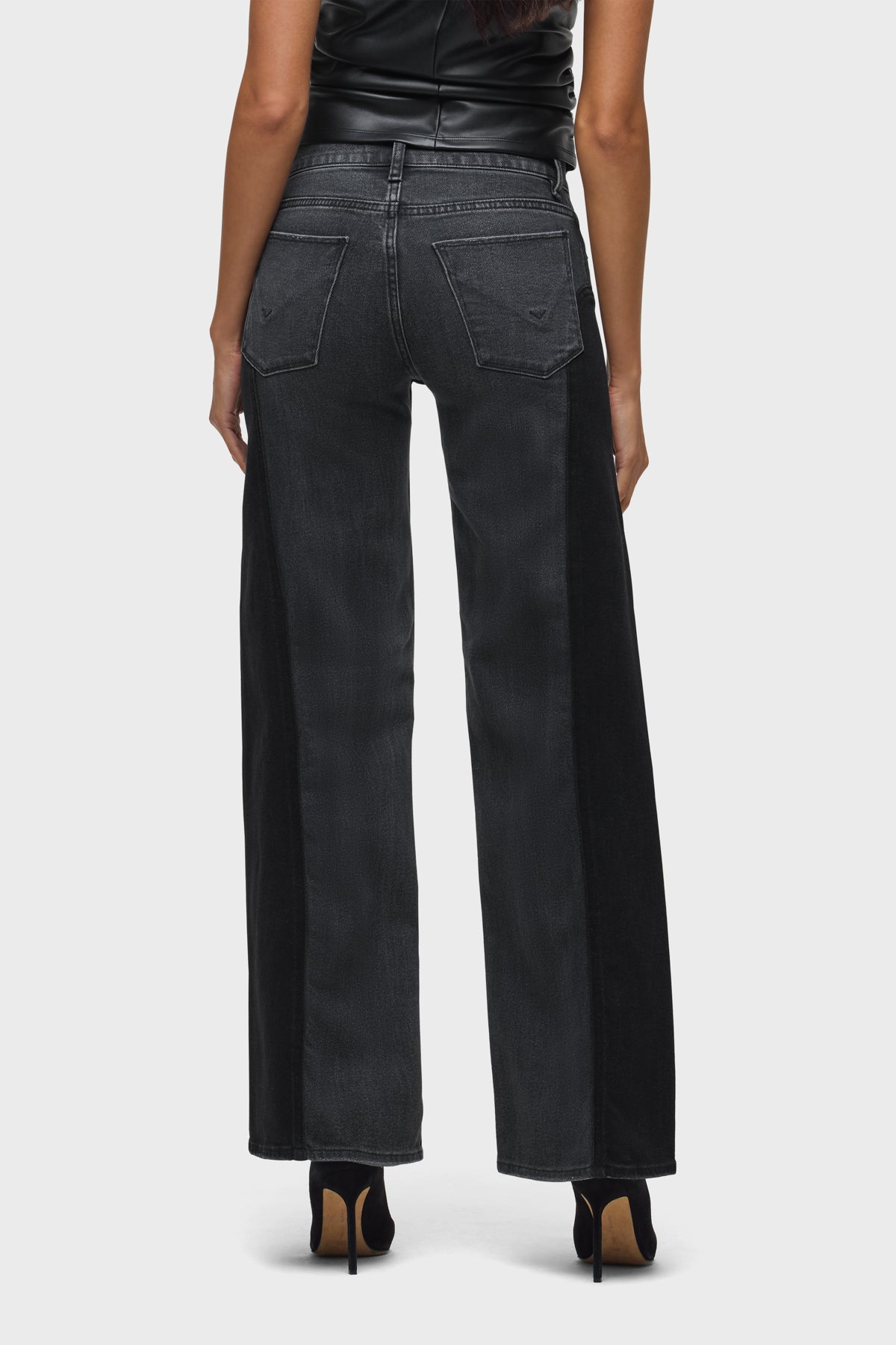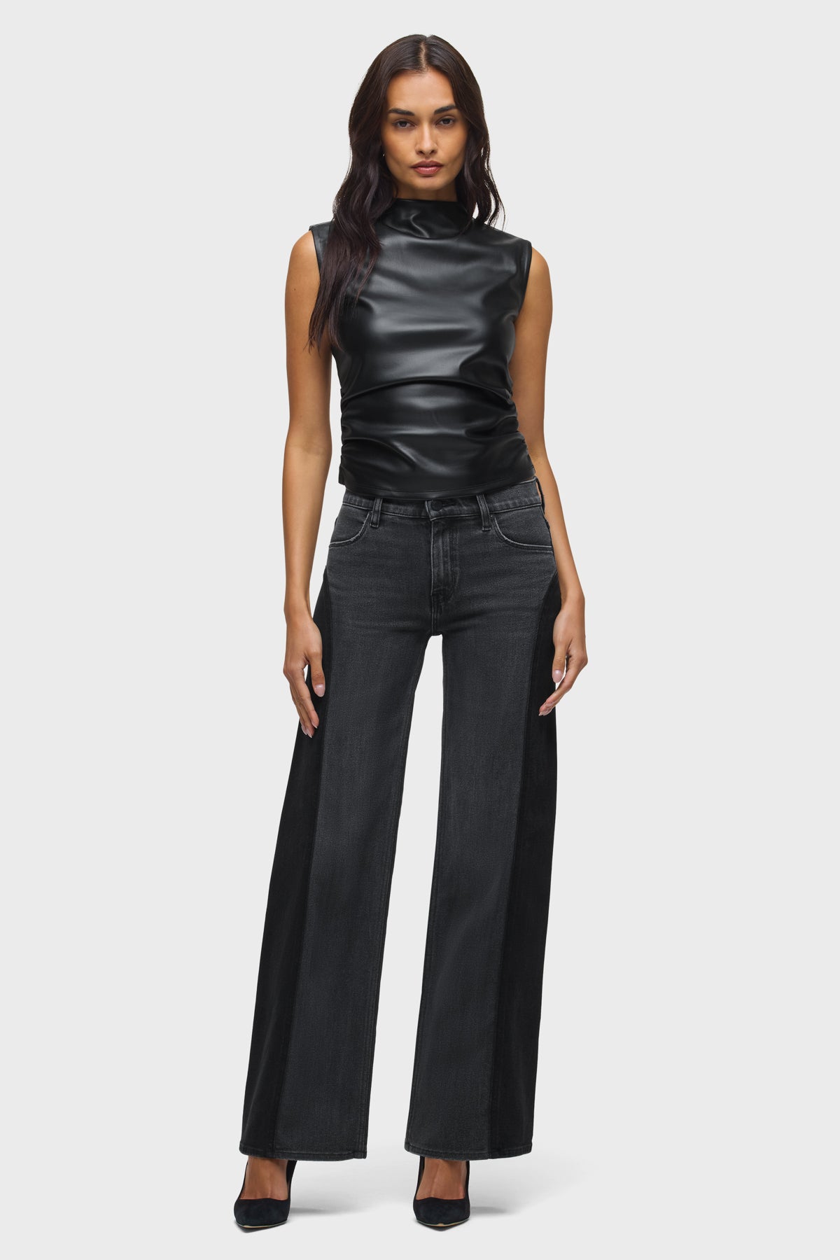 - The Lexi Seamed Wide Leg Jean in Double Side features a washed black body with a contrasting clean black side inset. These jeans are made of comfort stretch black denim with a clean finished hem.