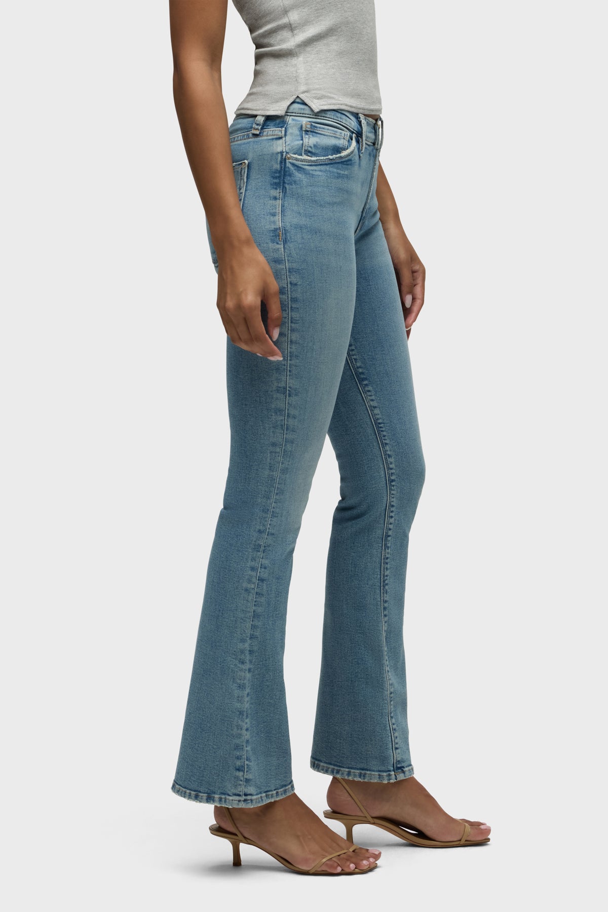 - Our Nico Mid-Rise Bootcut Barefoot Jean in light-blue Butterfly is cut in a universally flattering silhouette from stretch denim. Designed to hit below the ankle bone, it’s finished with whiskering, subtle edge grinding and classic five-pocket details.
