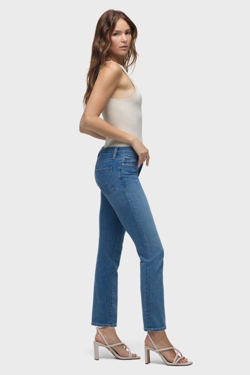 - Our Nico Mid-Rise Straight Ankle Jean in Sun Up is cropped for the ideal ankle length and finished with classic five-pocket styling. Its medium indigo wash features stone washing, bleaching, whiskering, all-over hand-sanding and edge grinding on stretch denim.