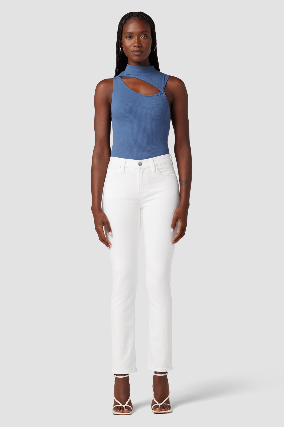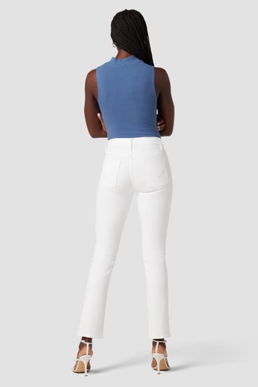 - Our Nico Mid-Rise Straight Ankle Jean in White is cut in a universally flattering silhouette from premium super stretch denim. Cropped for the ideal ankle length, it’s finished with classic five-pocket details, grinding, and a clean hem. As part of our Eco-Forward initiative, this garment is made with eco-friendly materials and innovative technology to soften our impact on Earth.