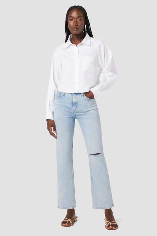 - Our Remi High-Rise Straight Ankle Jean is cut with a flattering high rise, relaxed leg and 28″ inseam. The light blue Star Dust wash has a clean hem, edge grinding and knee slit. It’s made from a premium stretch denim for an authentic look with added softness and flexibility.
