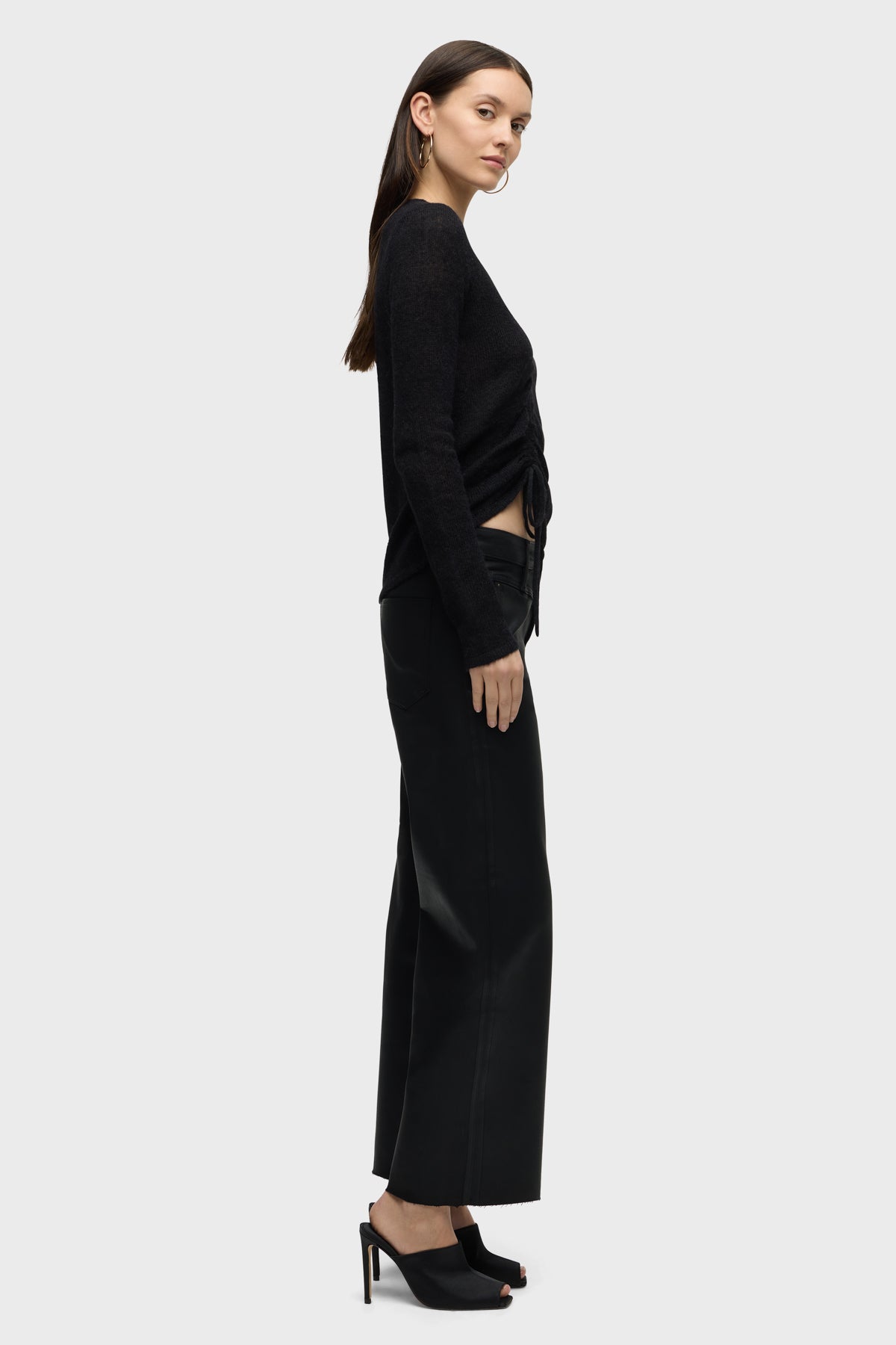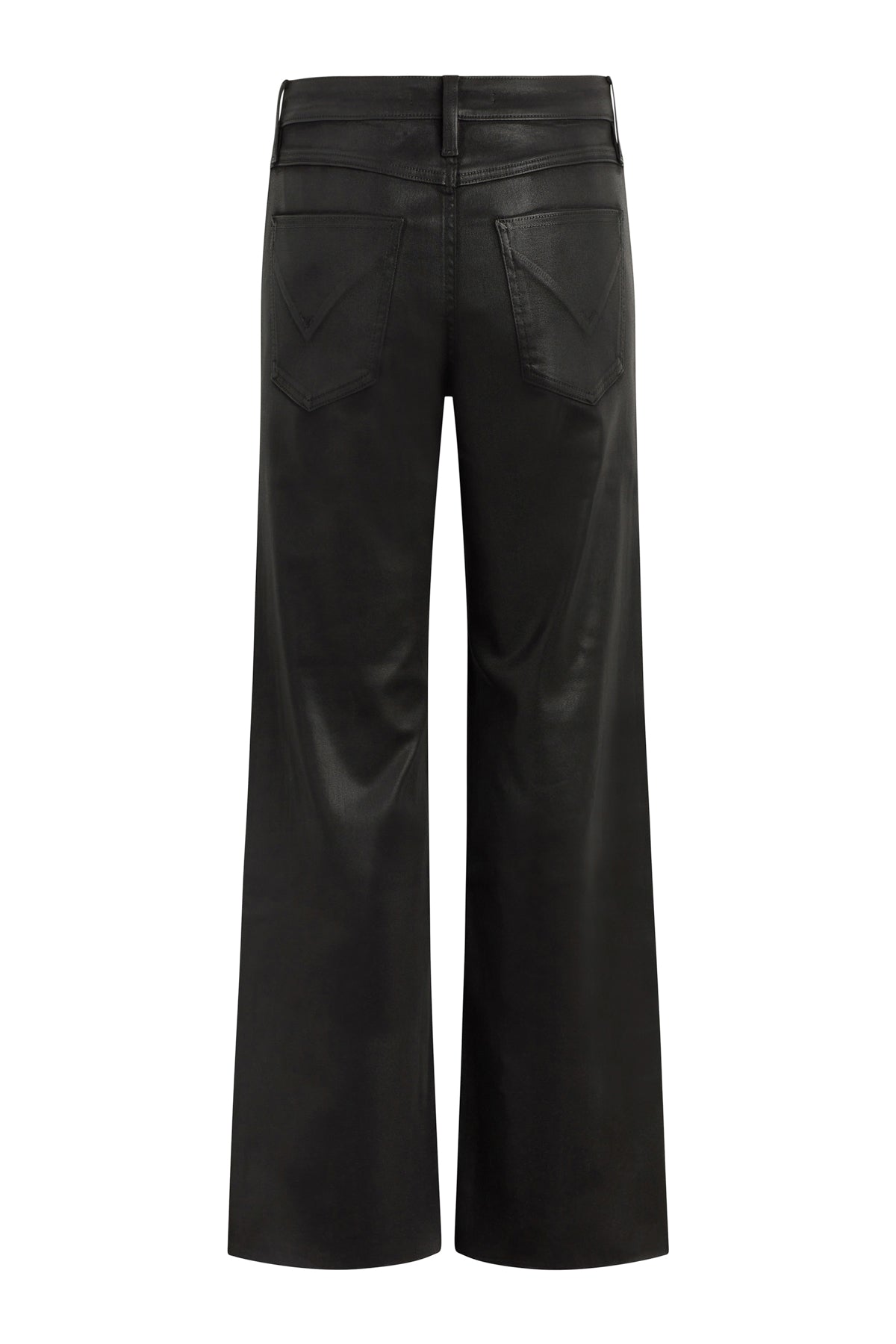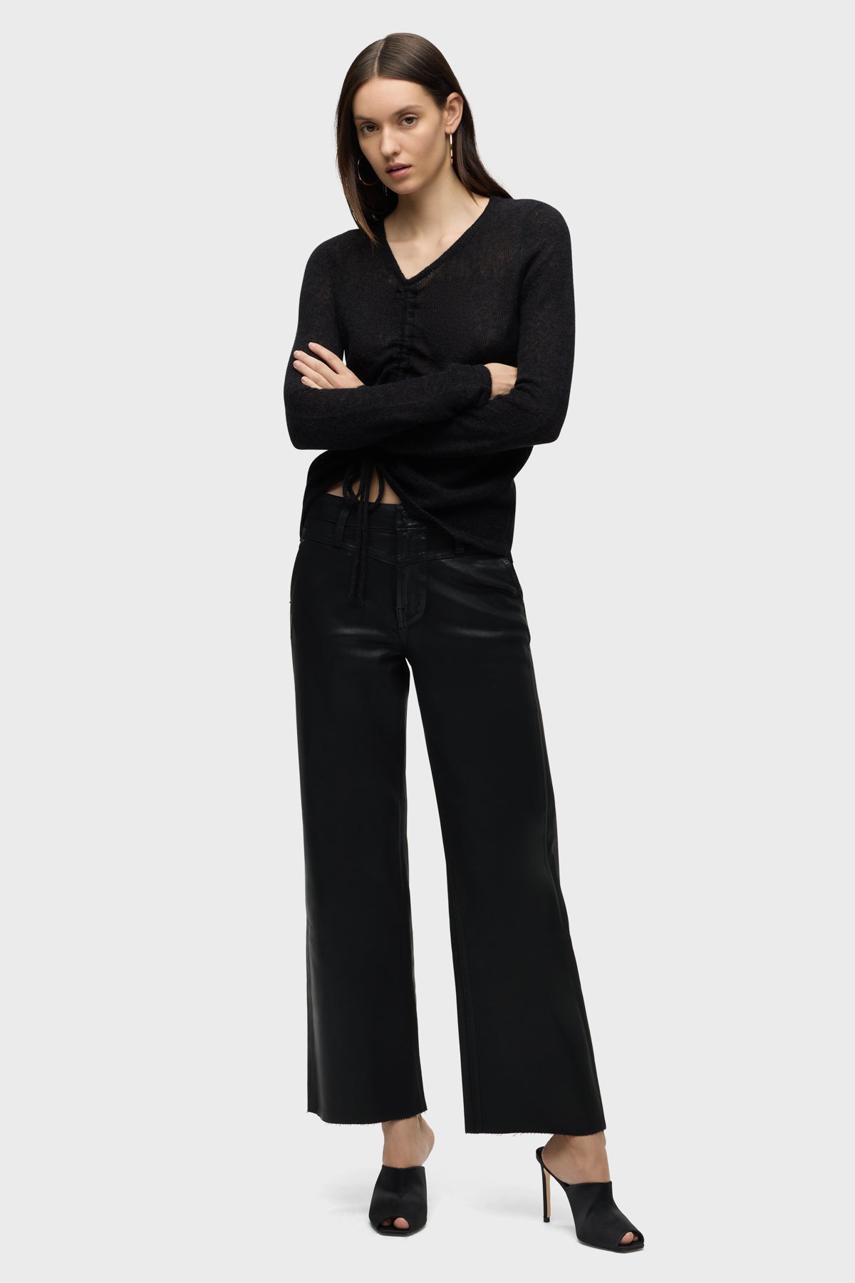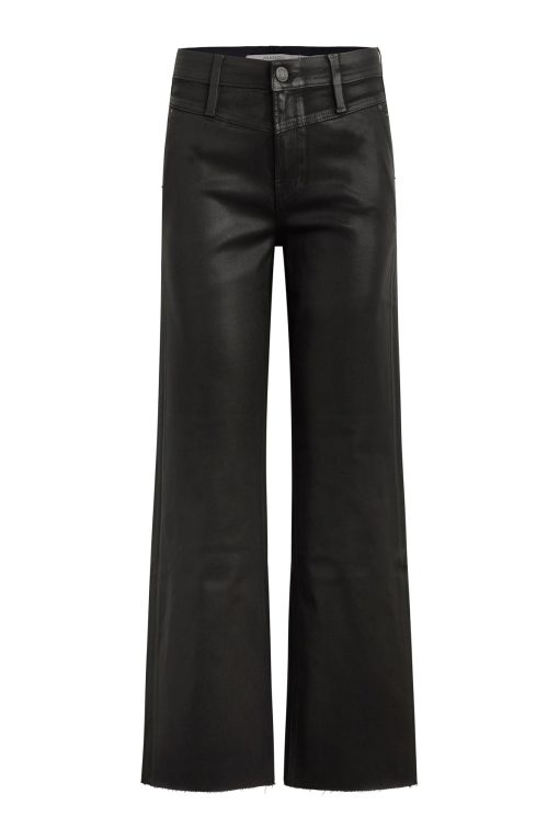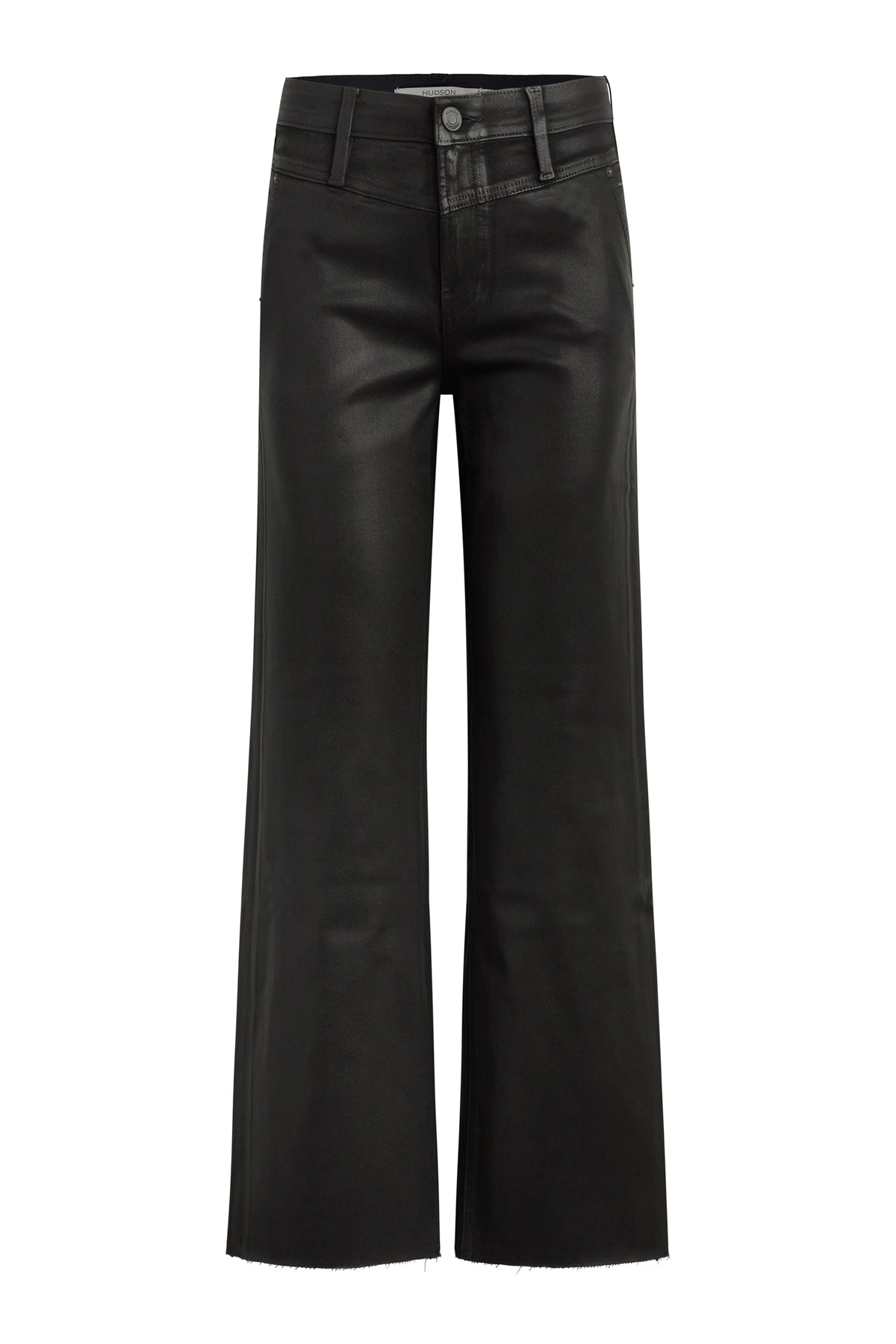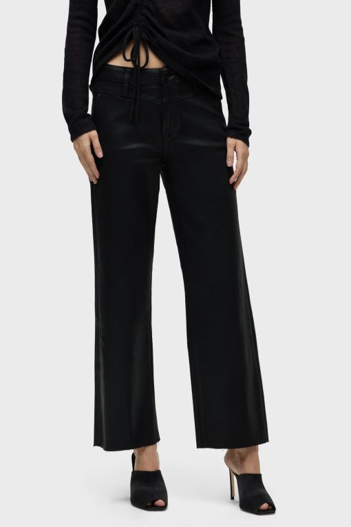 - Re-up with our Rosie High-Rise Front Yoke Wide Leg Ankle Jean, cut with an elevated waistline and ankle-length, roomy leg. Crafted from premium stretch denim with front yoke detailing, it’s finished in black with a coating for luxe sheen.