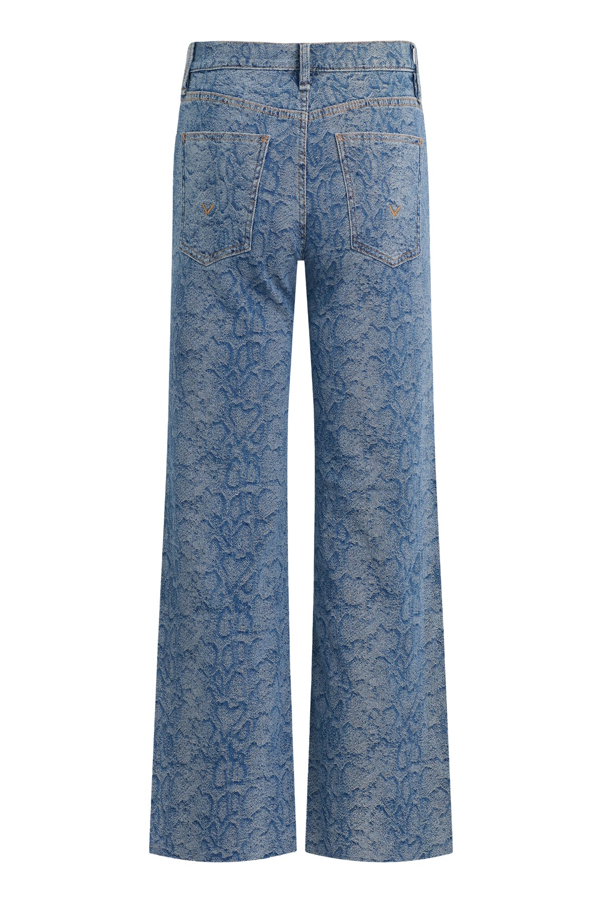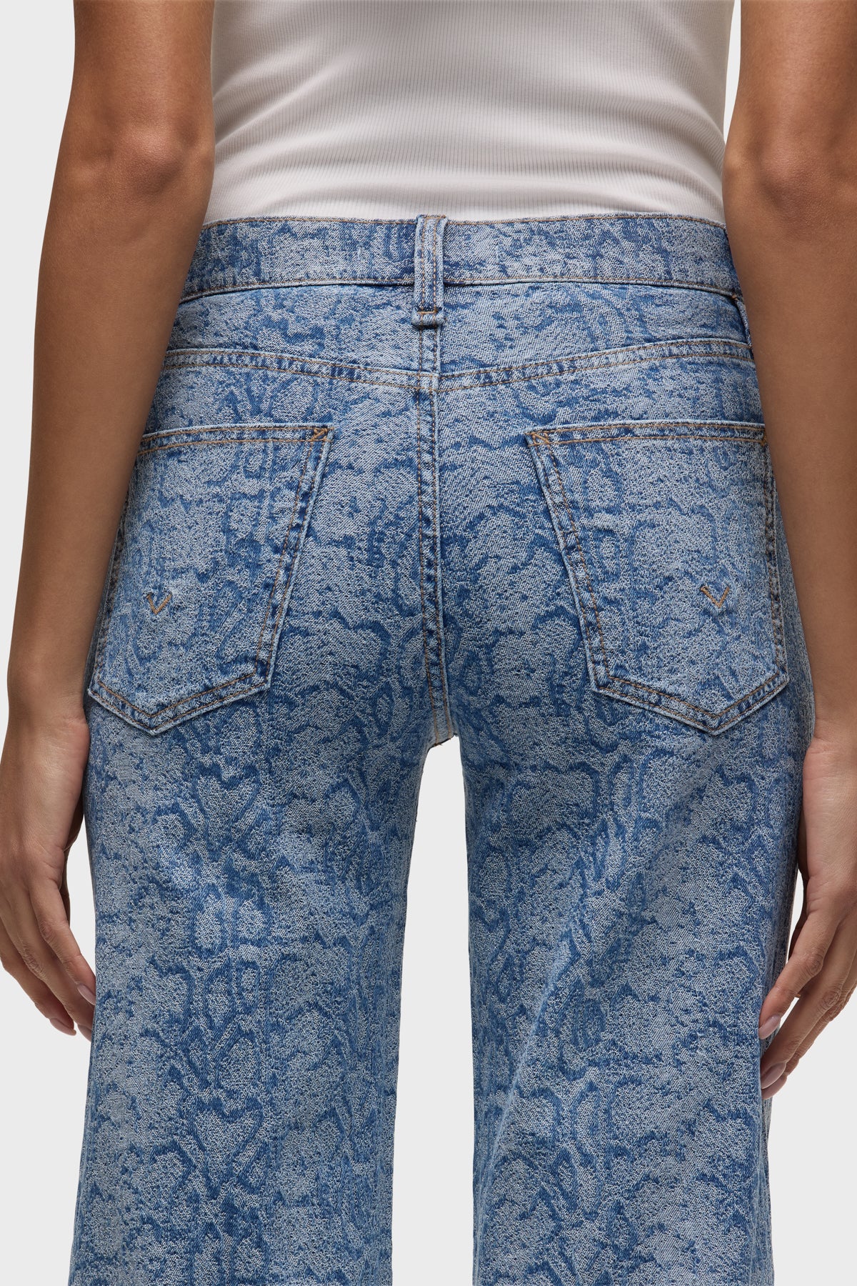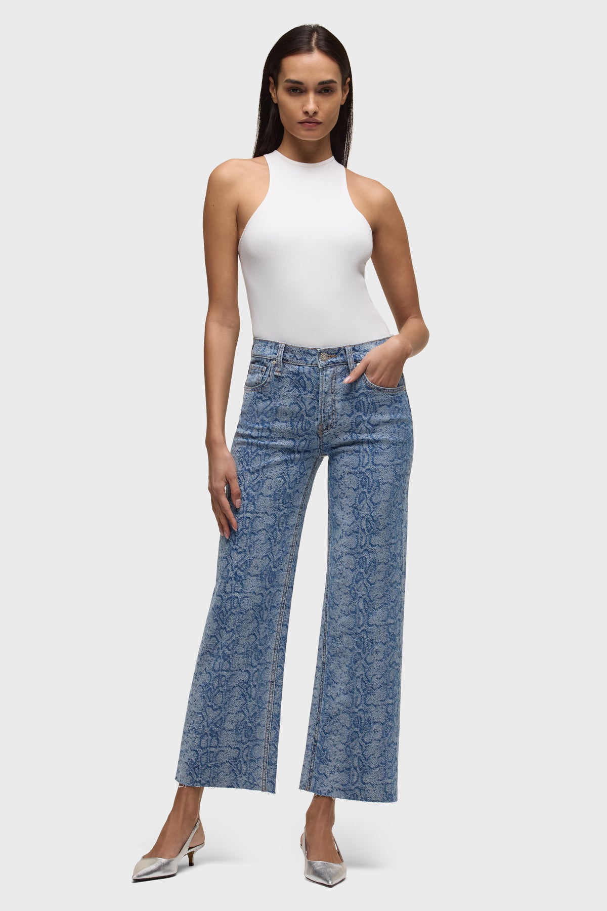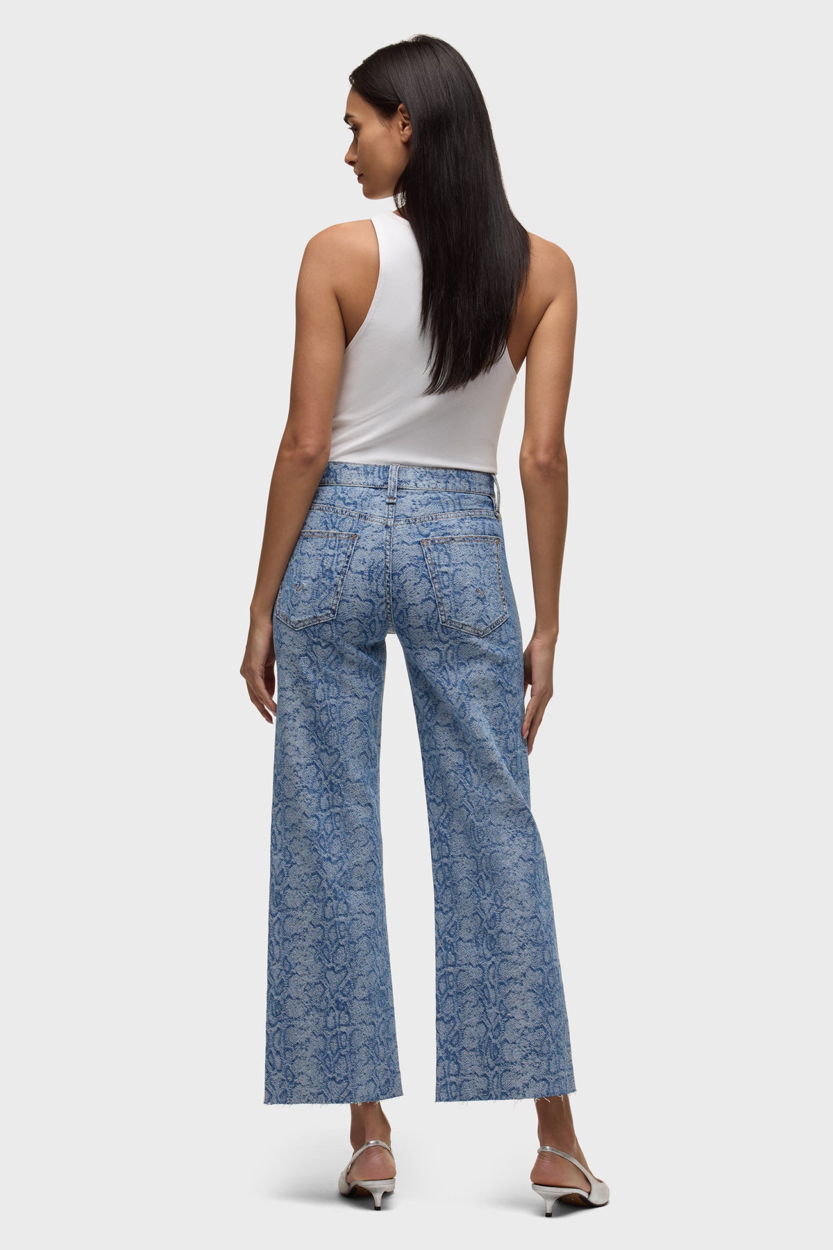 - Our Rosie High-Rise Wide Leg Ankle Jean in Venom is cut with an elevated waistline and a roomy leg. The star of this style is the snake jacquard in a medium indigo wash on slightly stretchy denim. The jeans are finished with an ankle-length 28″ inseam, raw hem and covered button fly.
