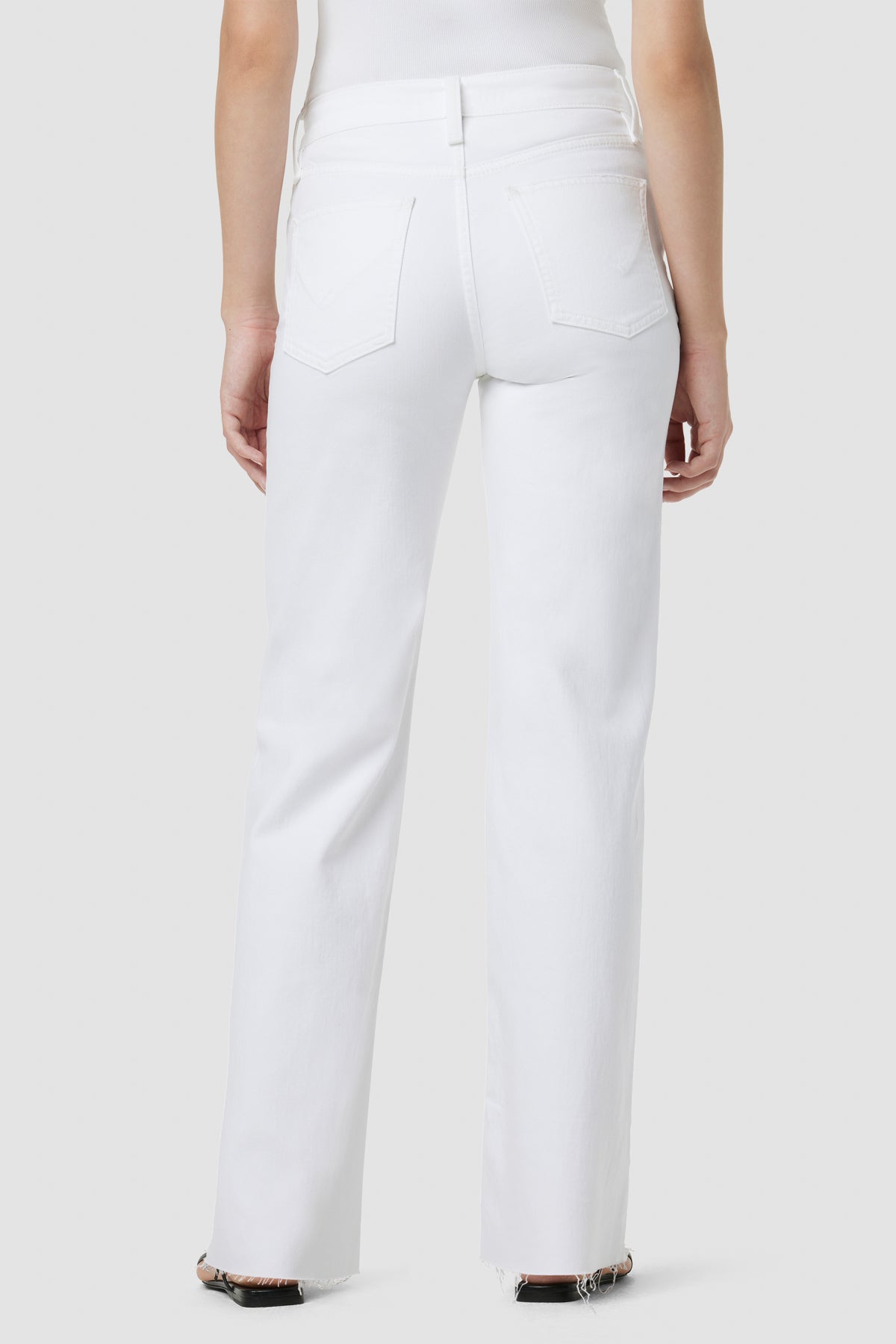- Re-up with our Rosie High-Rise Wide Leg Jean, cut with an elevated waistline and roomy leg. Crafted from premium comfort stretch denim, the White Lily wash features a covered button fly, raw hems and five-pocket details.