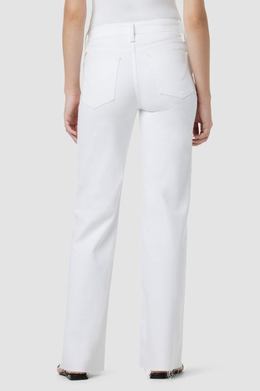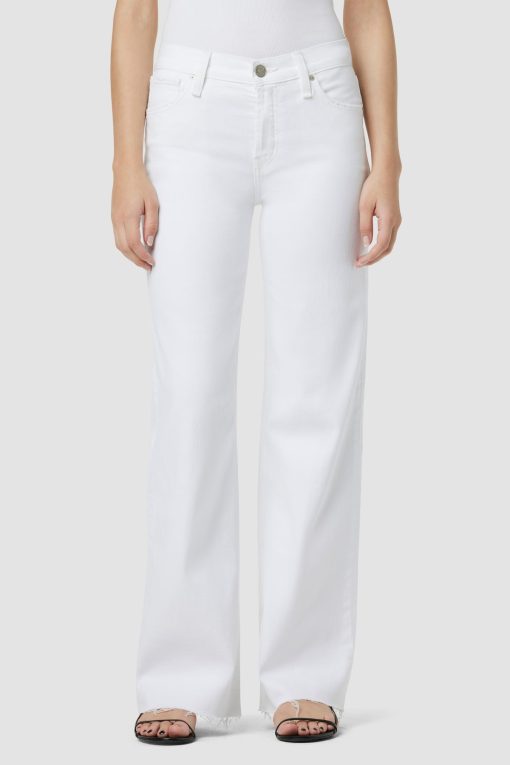 - Re-up with our Rosie High-Rise Wide Leg Jean, cut with an elevated waistline and roomy leg. Crafted from premium comfort stretch denim, the White Lily wash features a covered button fly, raw hems and five-pocket details.