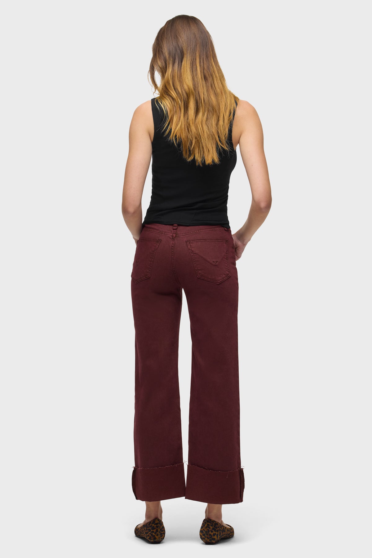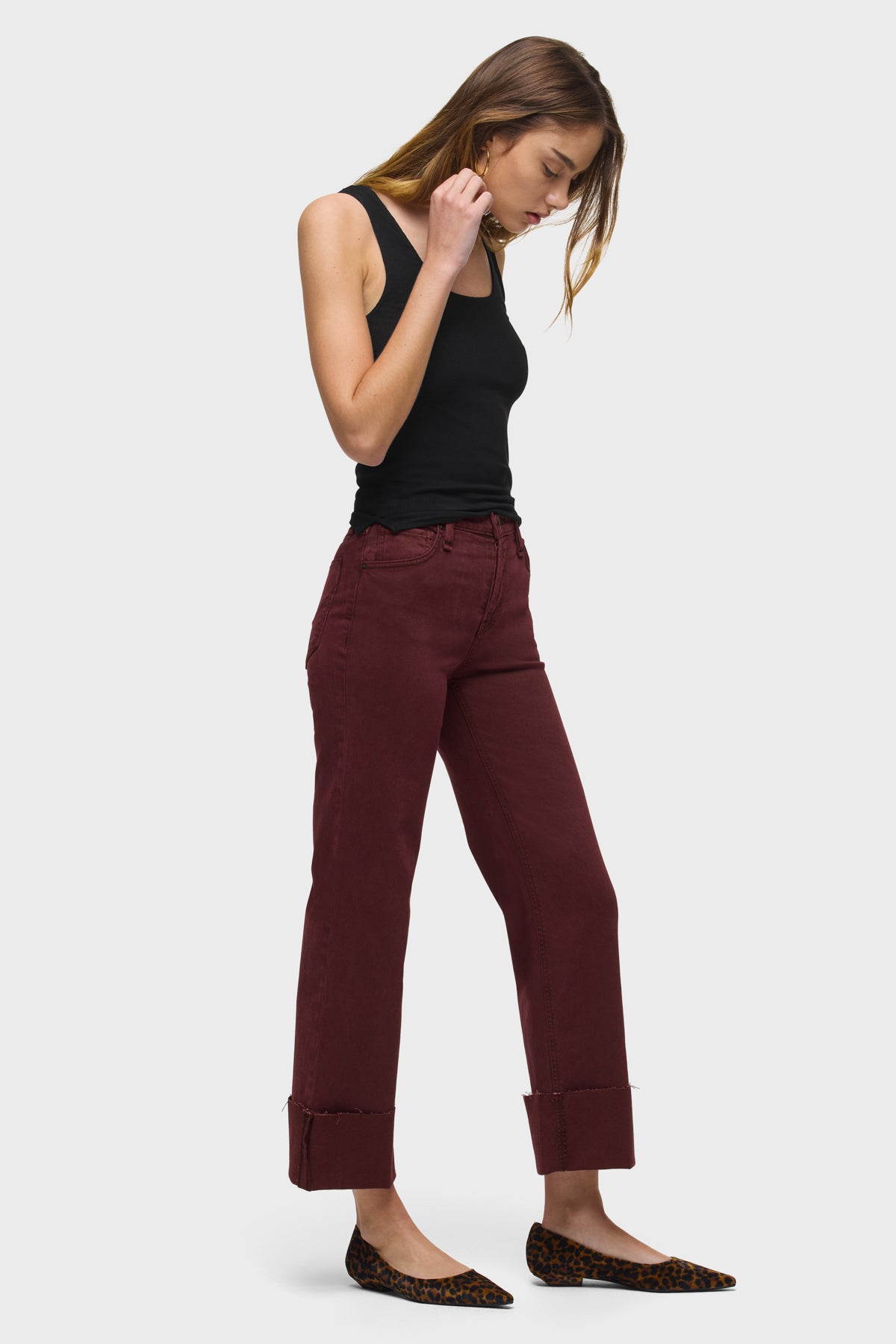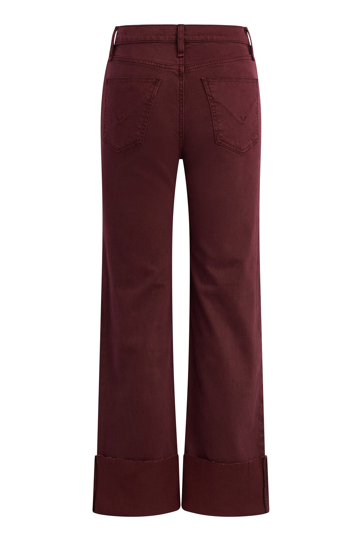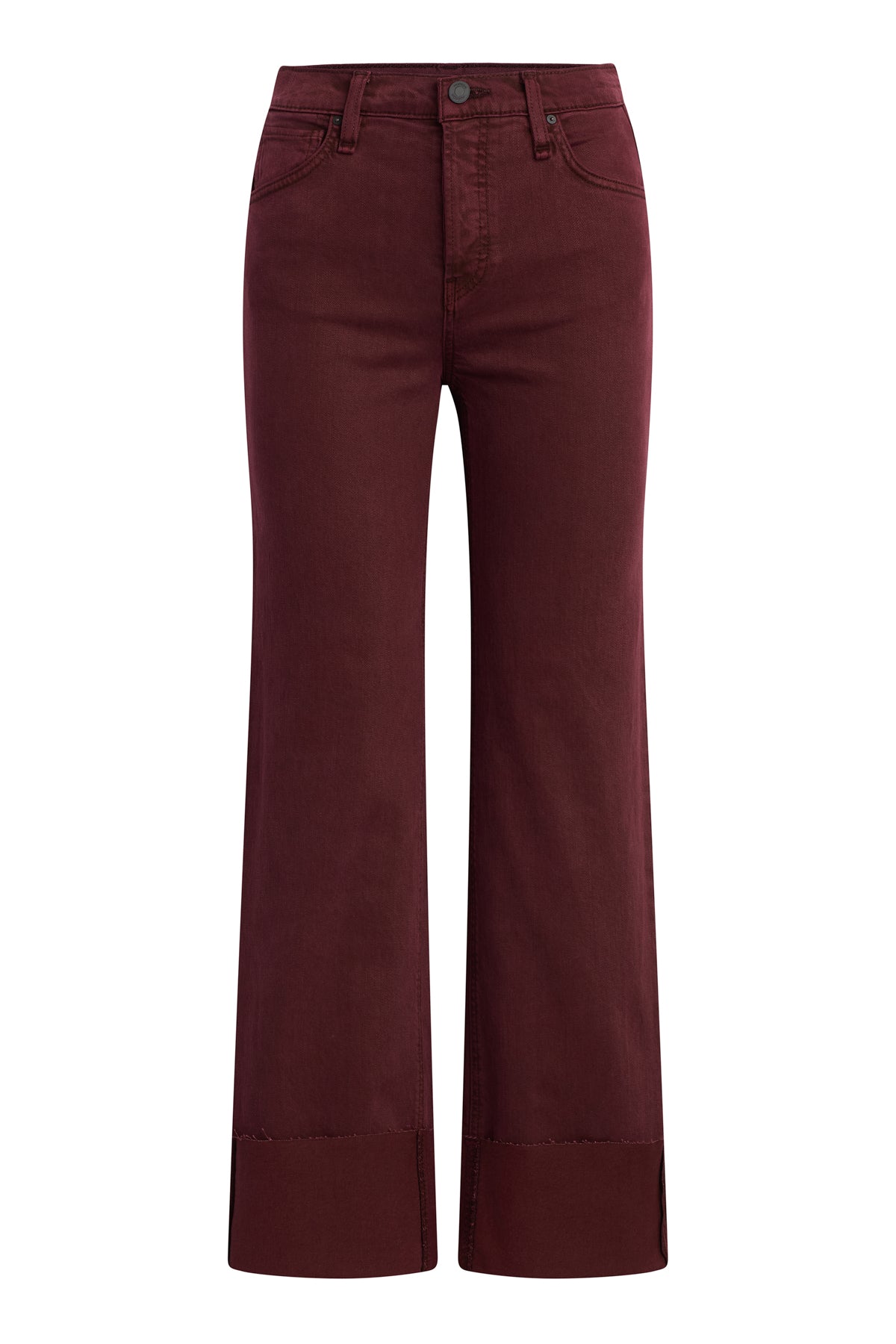 - Our Rosie High-Rise Wide Leg with Cuff in Port Royal has a classic fit with an elevated waistline and a roomy leg. Crafted in overdyed deep burgundy stretch fabric, this full-length 32″ pair is finished with a 5″ cuff, raw hem and covered button fly.