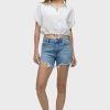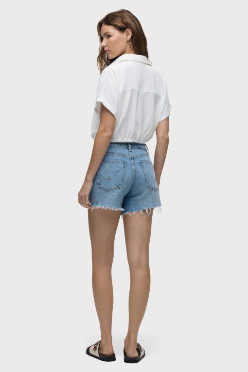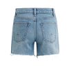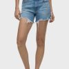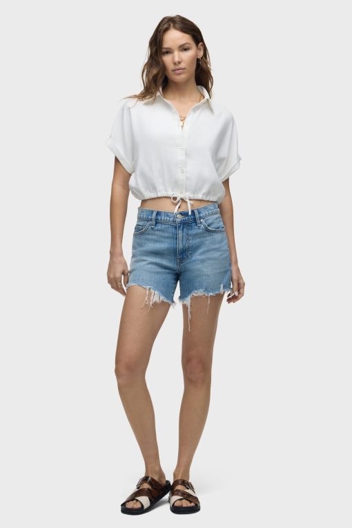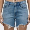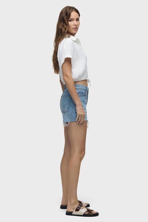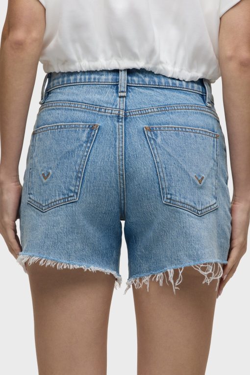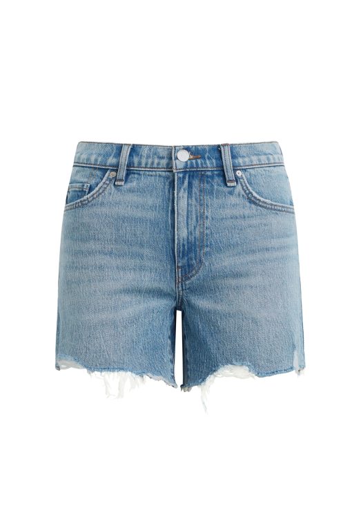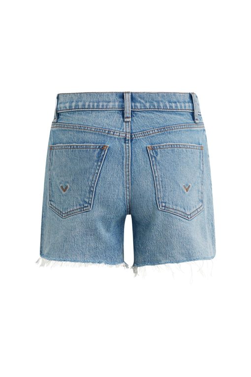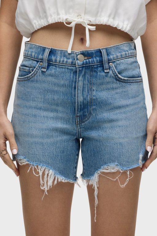 - The Devon Boyfriend Short in Anthem has a relaxed boyfriend fit with a cool destructed hem. This pair is made of a premium comfort stretch denim in a vintage-inspired medium indigo wash with heavy stone washing, bleaching and edge grinding.