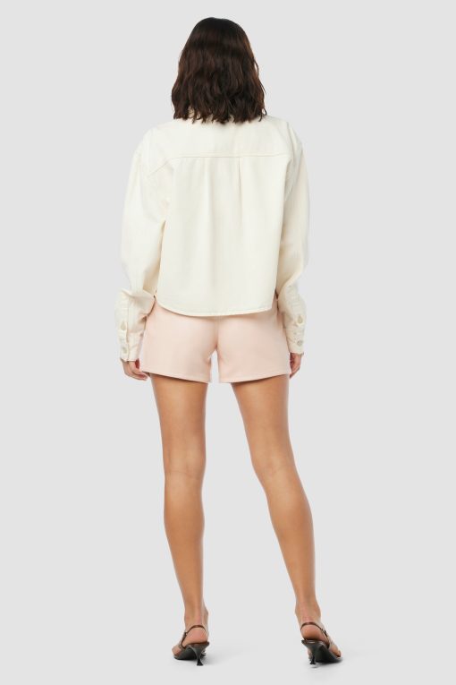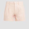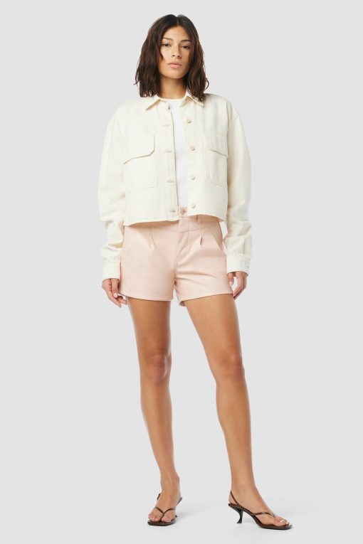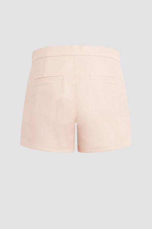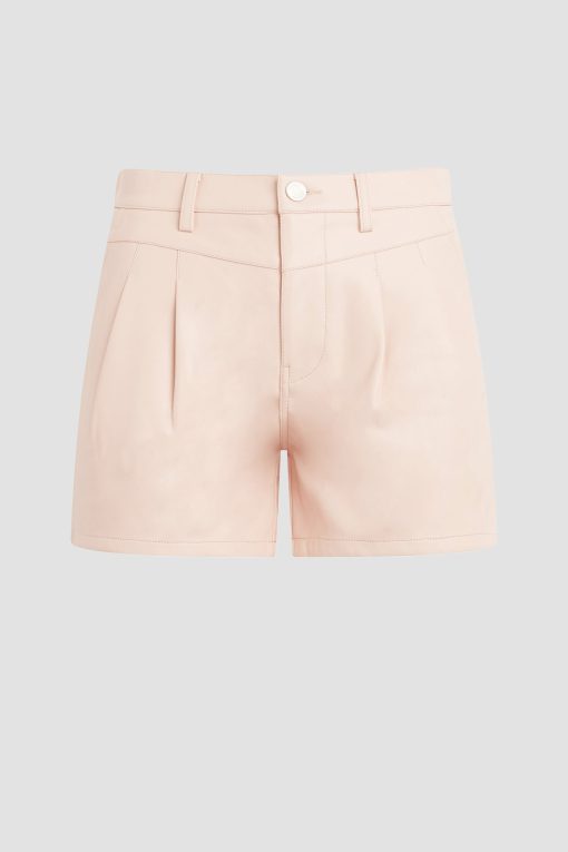 - The Front Yoke Pleated Short in Cameo Rose is cut from luxe Illusion vegan leather. Features front pleats and trouser pockets for an elevated look. Makes a matching set paired with Sleeveless Camp Shirt.