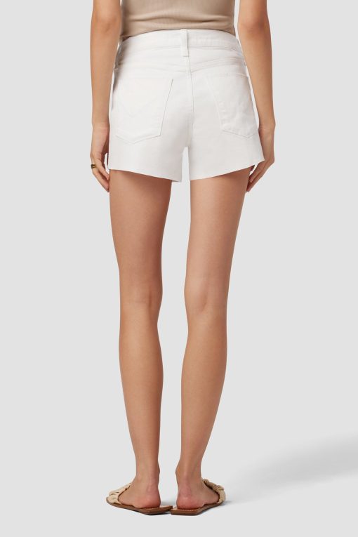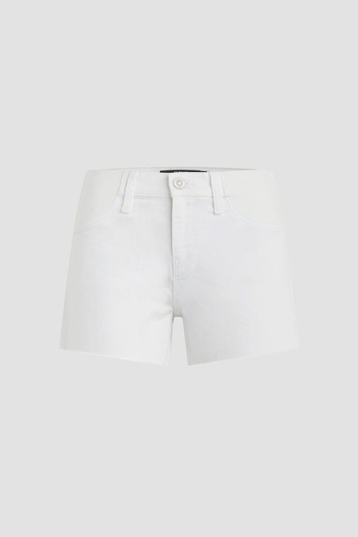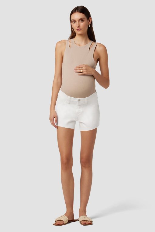 - Designed with elastic panels for added comfort and support, our Gemma Maternity Short in White is a mid-rise, relaxed-fit pair crafted from premium comfort stretch denim with classic five-pocket details.