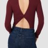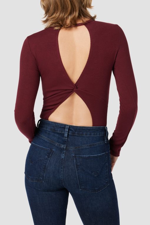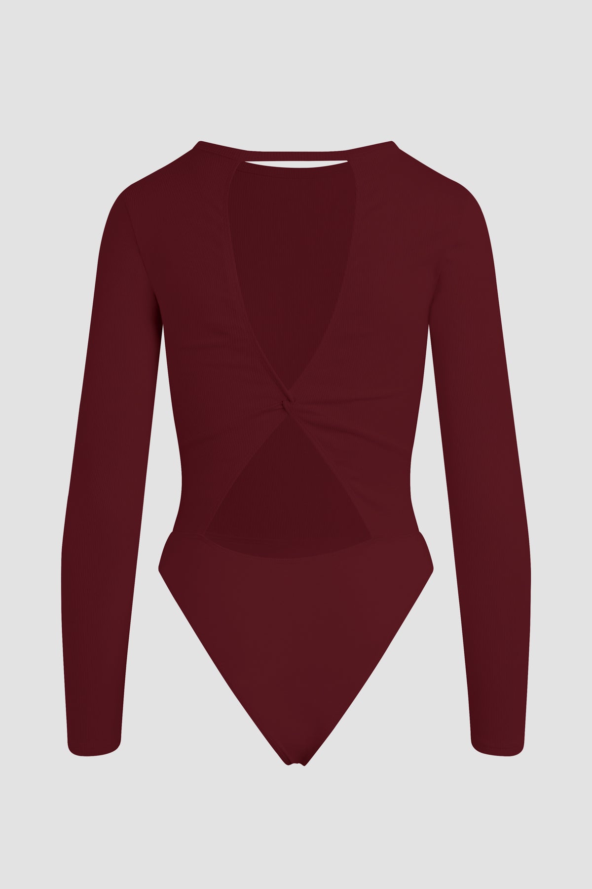 - The Knot Back Bodysuit is part of our new Night Owl, The After Dark Collection. The long sleeve crewneck in Bordeaux has a bra-friendly back cutout with a comfortably-stretchy bodysuit styling.