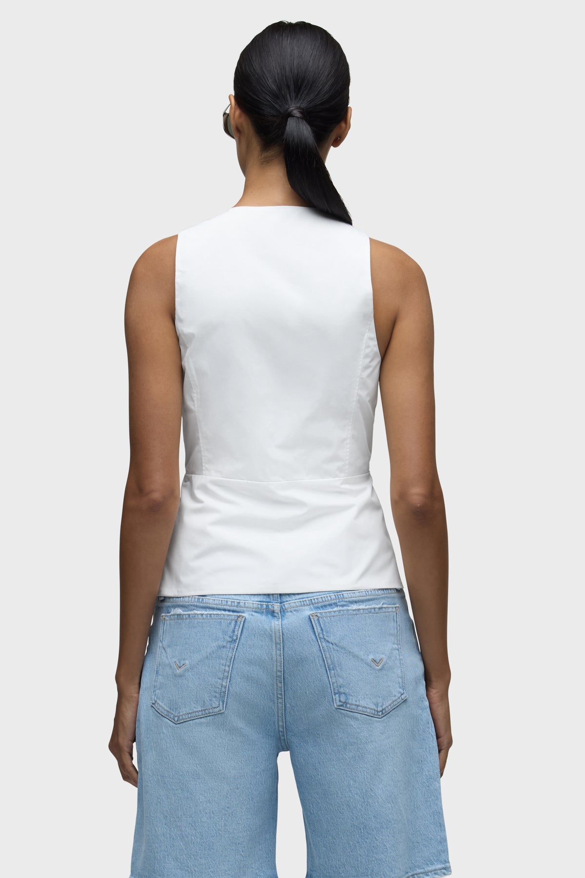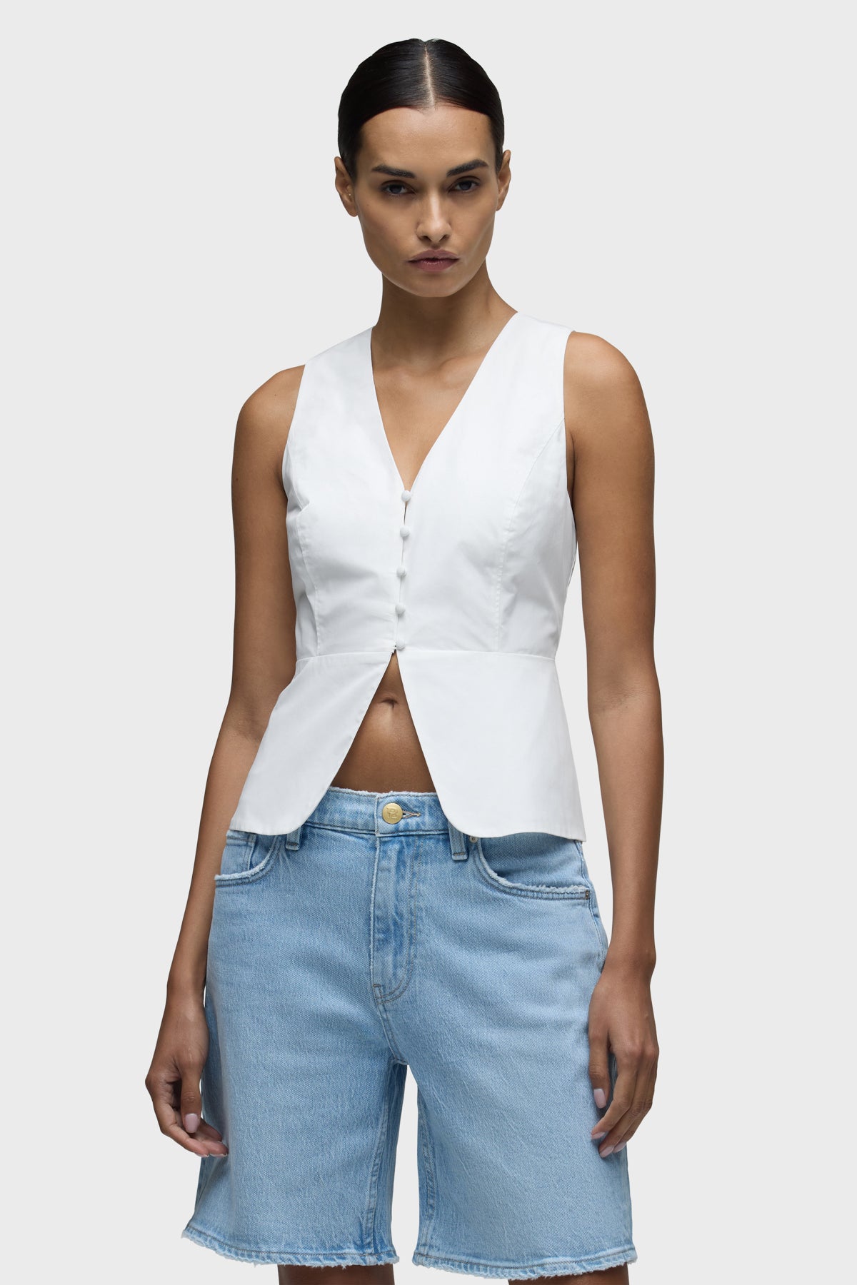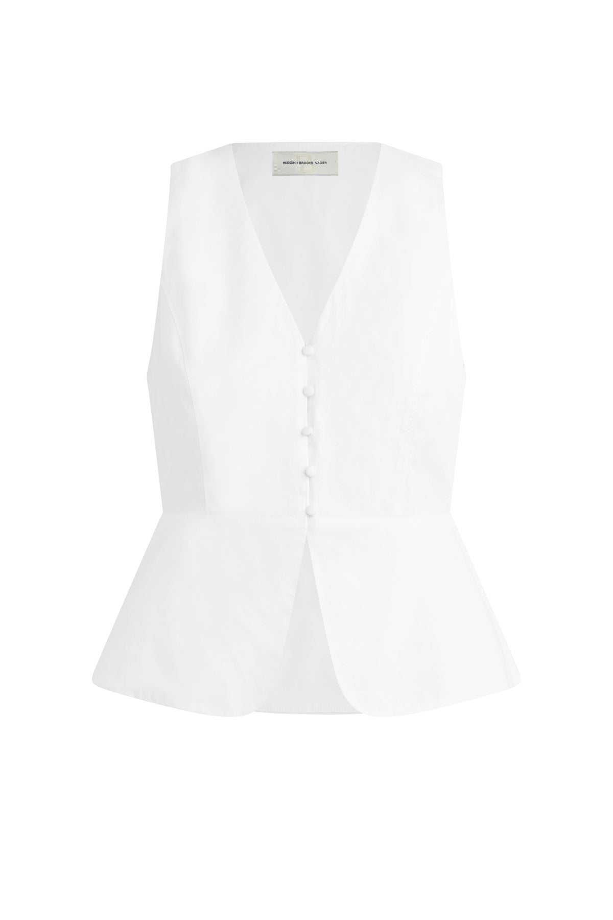 - Part of our Brooks Nader collab capsule, the Laissez Vest in White is a button-down vest made of crisp white poplin fabric with covered buttons and a peplum to accentuate the body. This capsule was curated by model Brooks Nader and features her personal closet must-haves.