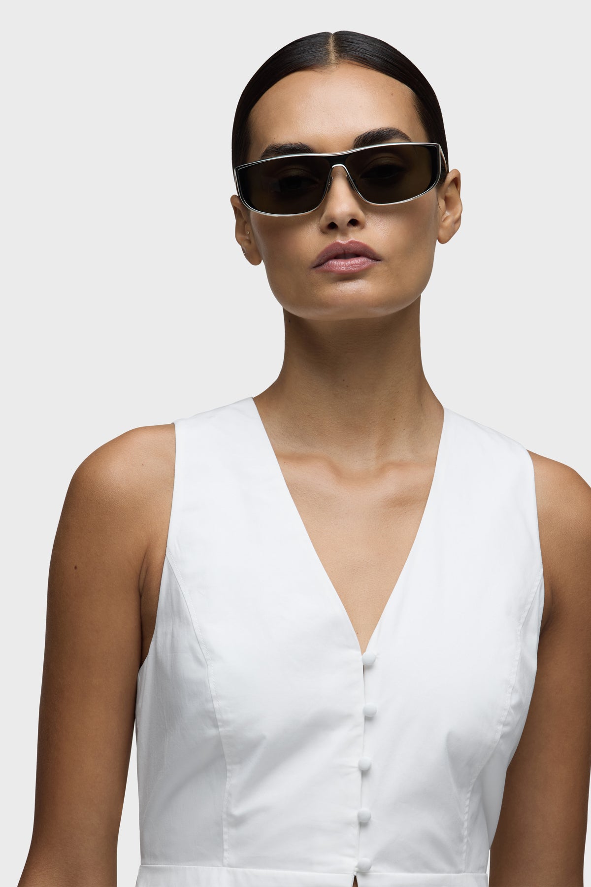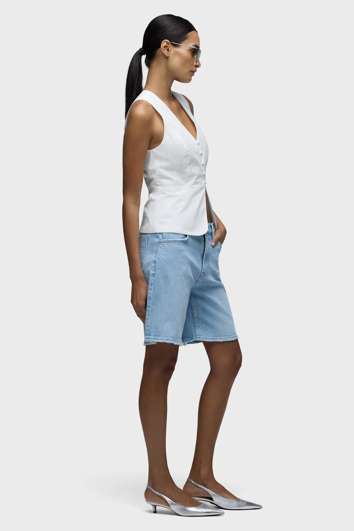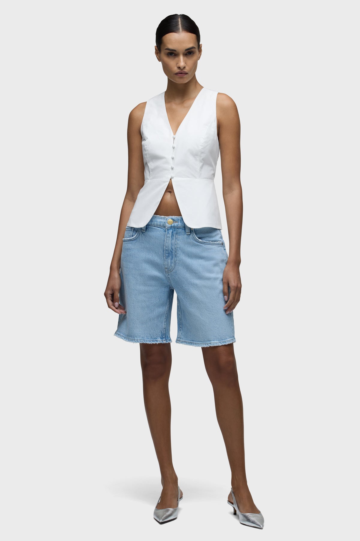 - Part of our Brooks Nader collab capsule, the Laissez Vest in White is a button-down vest made of crisp white poplin fabric with covered buttons and a peplum to accentuate the body. This capsule was curated by model Brooks Nader and features her personal closet must-haves.