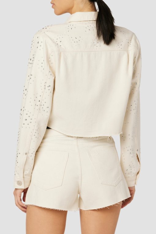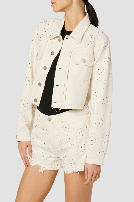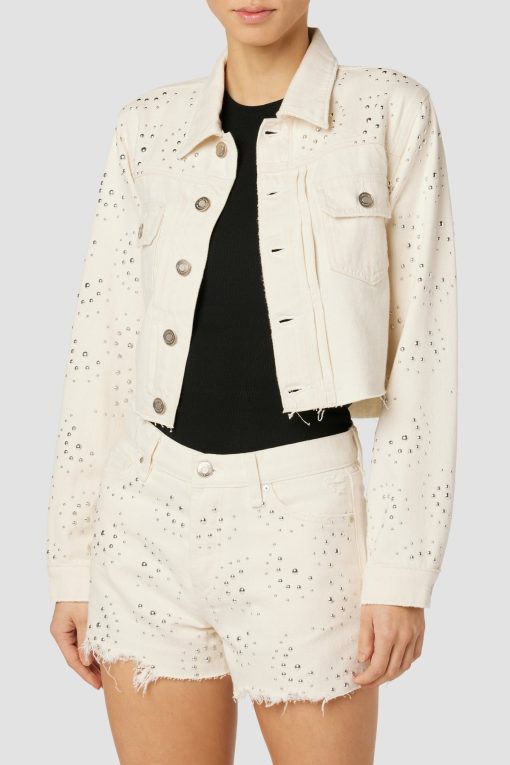 - Our Lola Shrunken Jacket in Star Studded is crafted from rigid denim in a natural wash. It’s finished with grinding along the edges, a raw hem and stud embellishments.