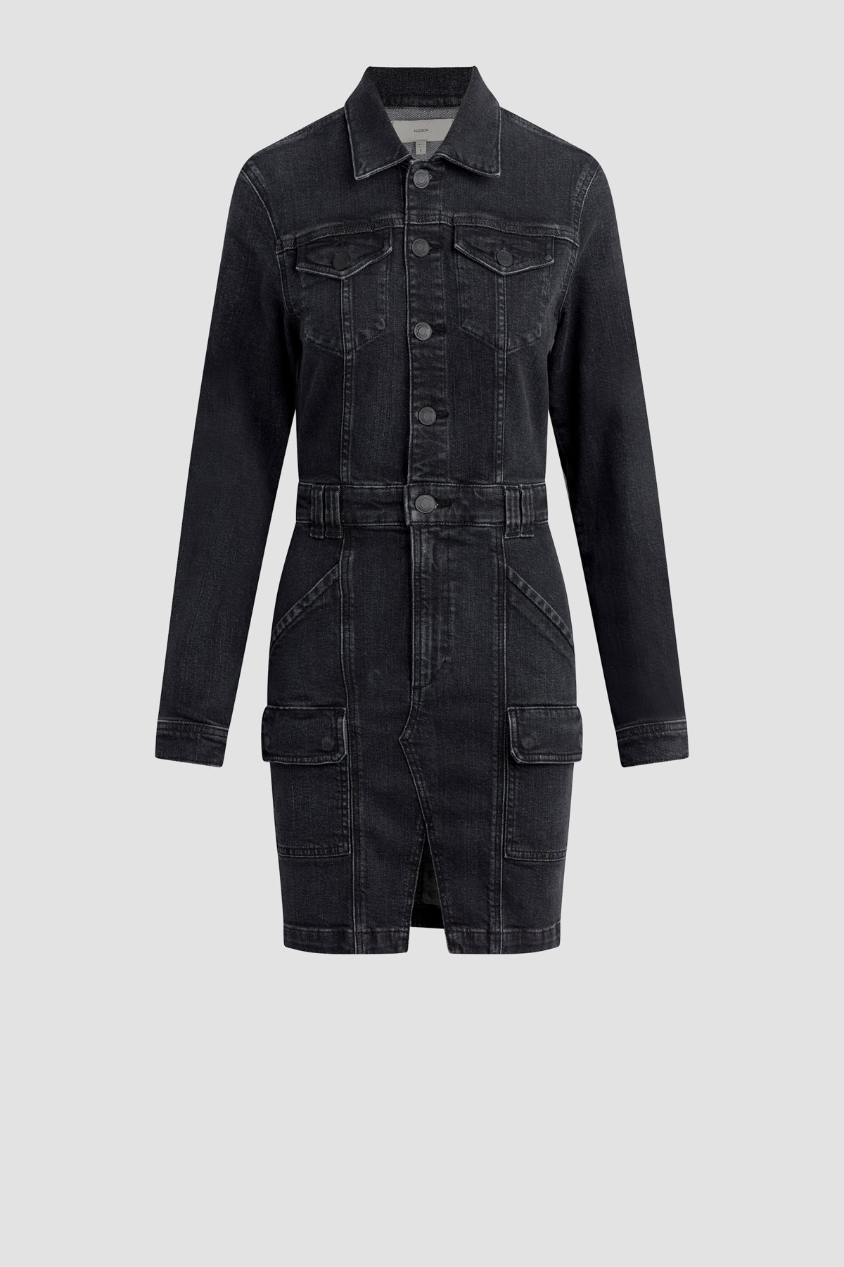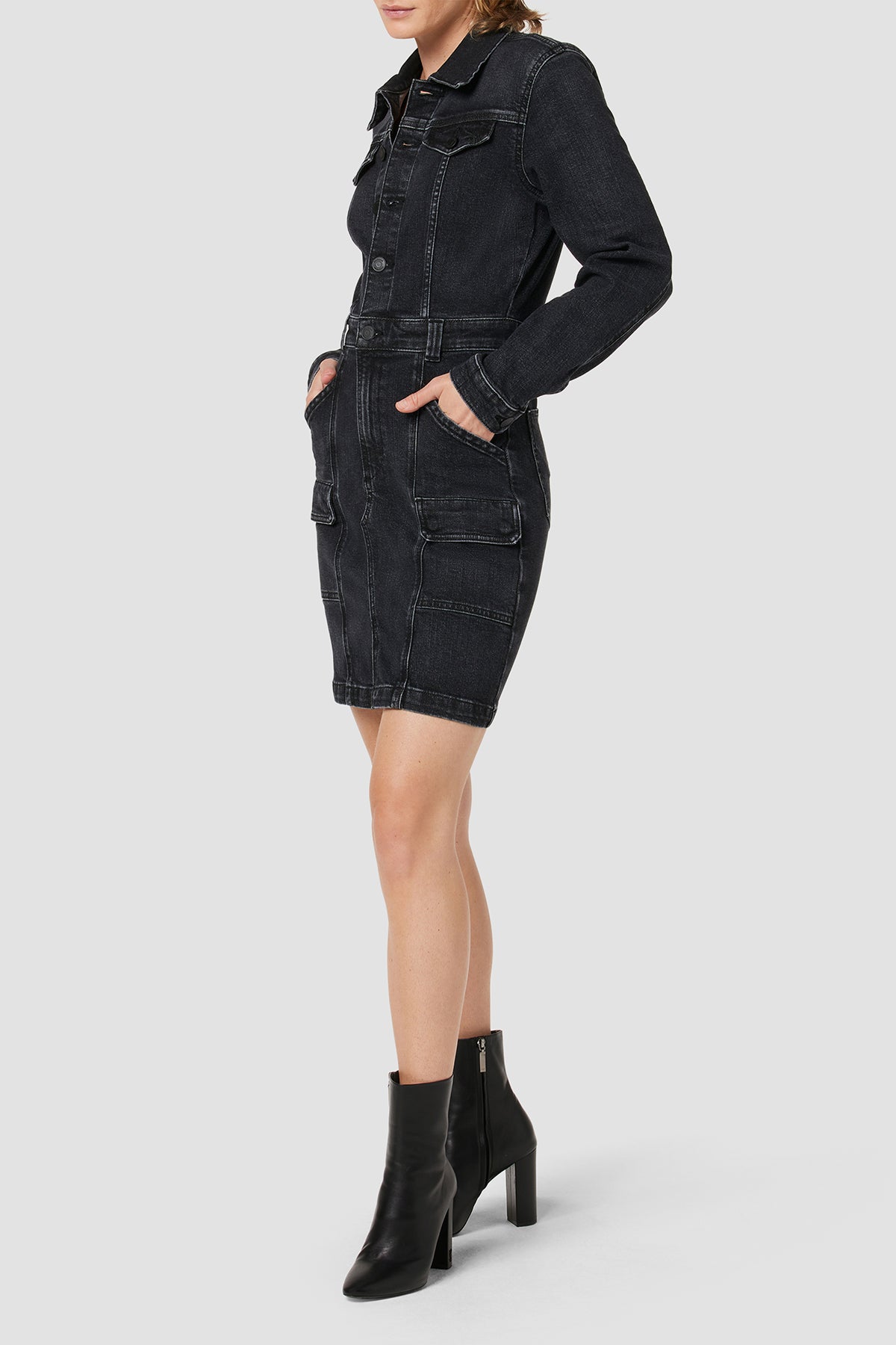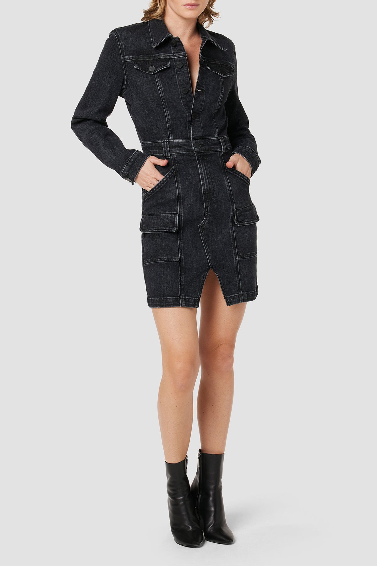 - Our Long Sleeve Reconstructed Dress in Black Ink is cut from a comfortable stretch denim that’s been washed down. It’s finished with side cargo pockets.