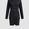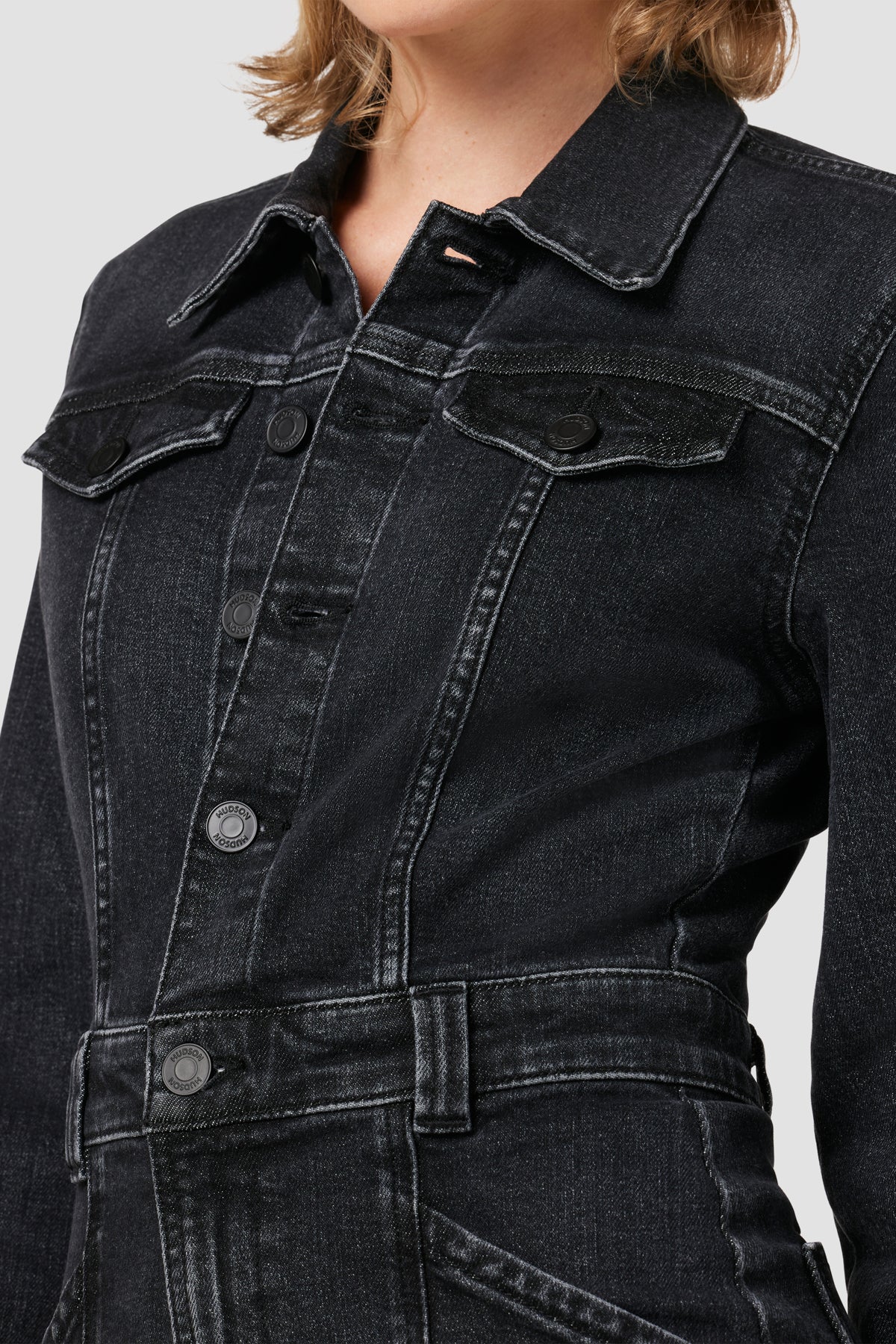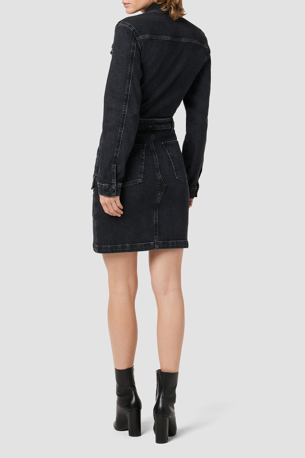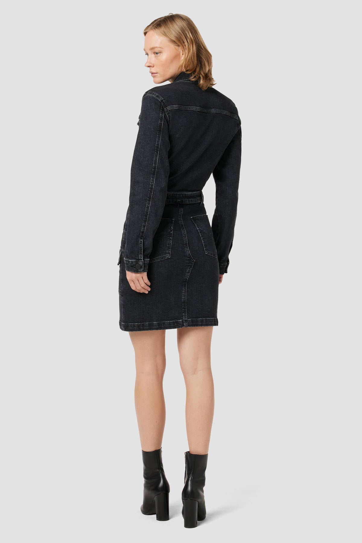 - Our Long Sleeve Reconstructed Dress in Black Ink is cut from a comfortable stretch denim that’s been washed down. It’s finished with side cargo pockets.