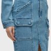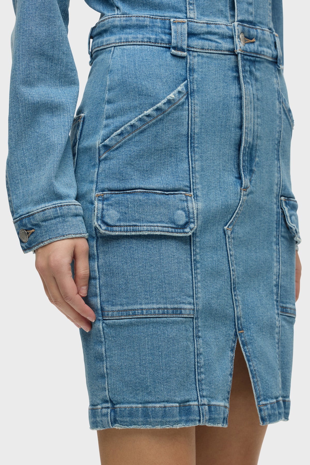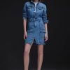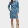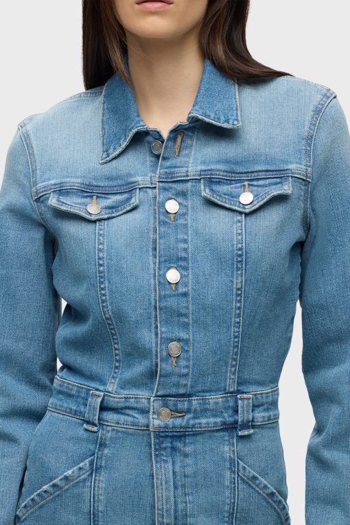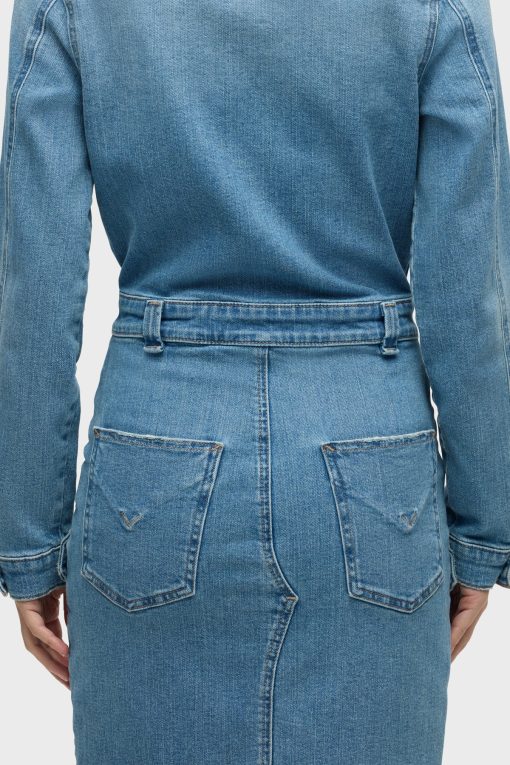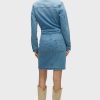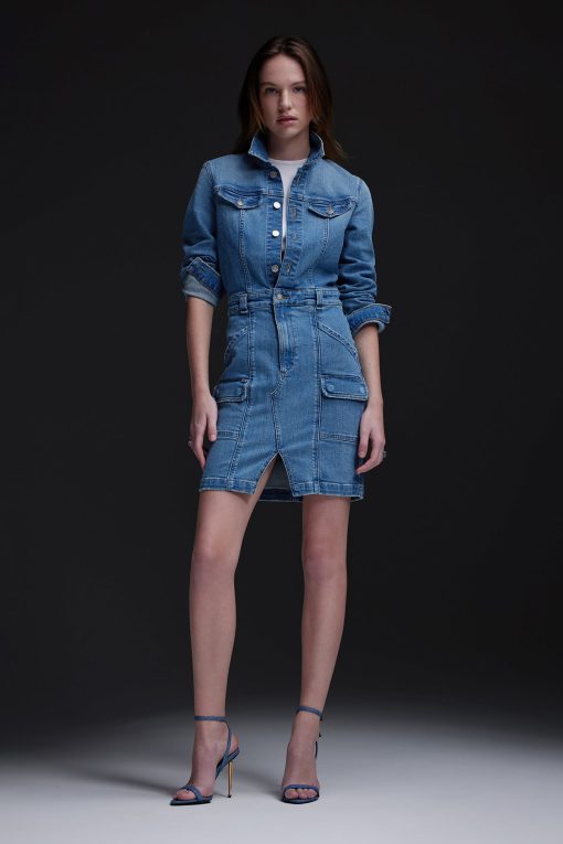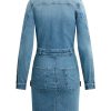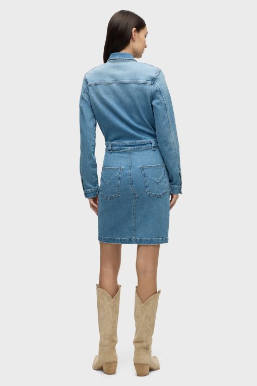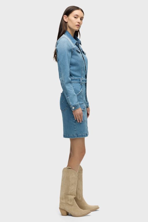 - The Long Sleeve Reconstructed Dress in light blue Maize is cut from premium comfort stretch denim. Hitting above the knee, the dress features a pointed collar, long sleeves and cargo pockets.