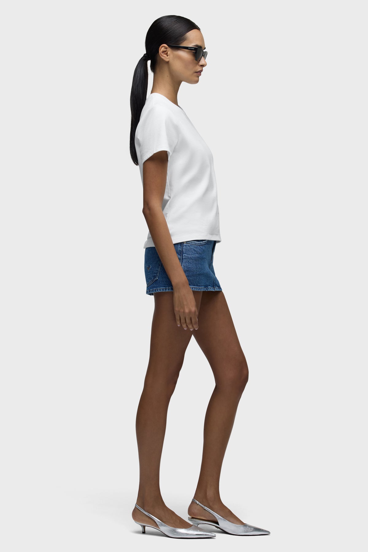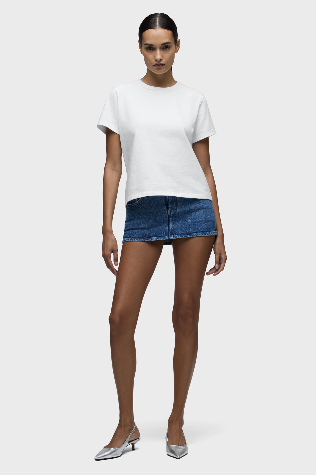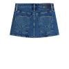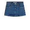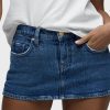 - Part of our Brooks Nader collab capsule, the Mignon Mini Skirt in Headturner has a super short length with built-in spandex shorties underneath. To elevate the look, we added gold branded buttons and a branded leather patch to the back waistband. This skirt is made of comfort stretch denim in a medium dark indigo wash with heavy stone washing and edge grinding. This capsule was curated by model Brooks Nader and features her personal closet must-haves.