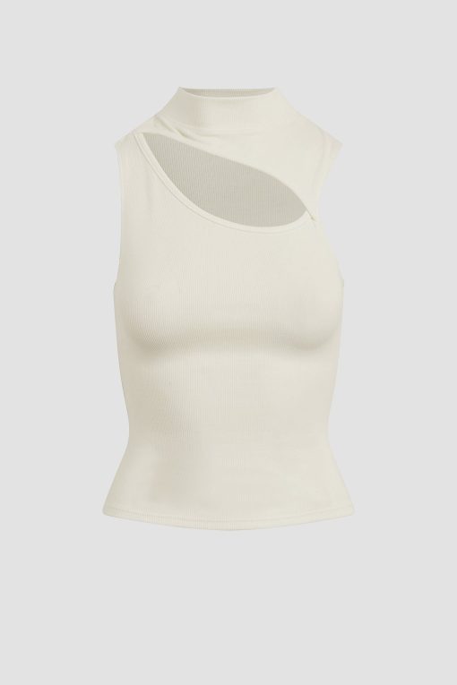 Hudson Jeans Women’s Mock Neck Cut Out Tank | Ecru