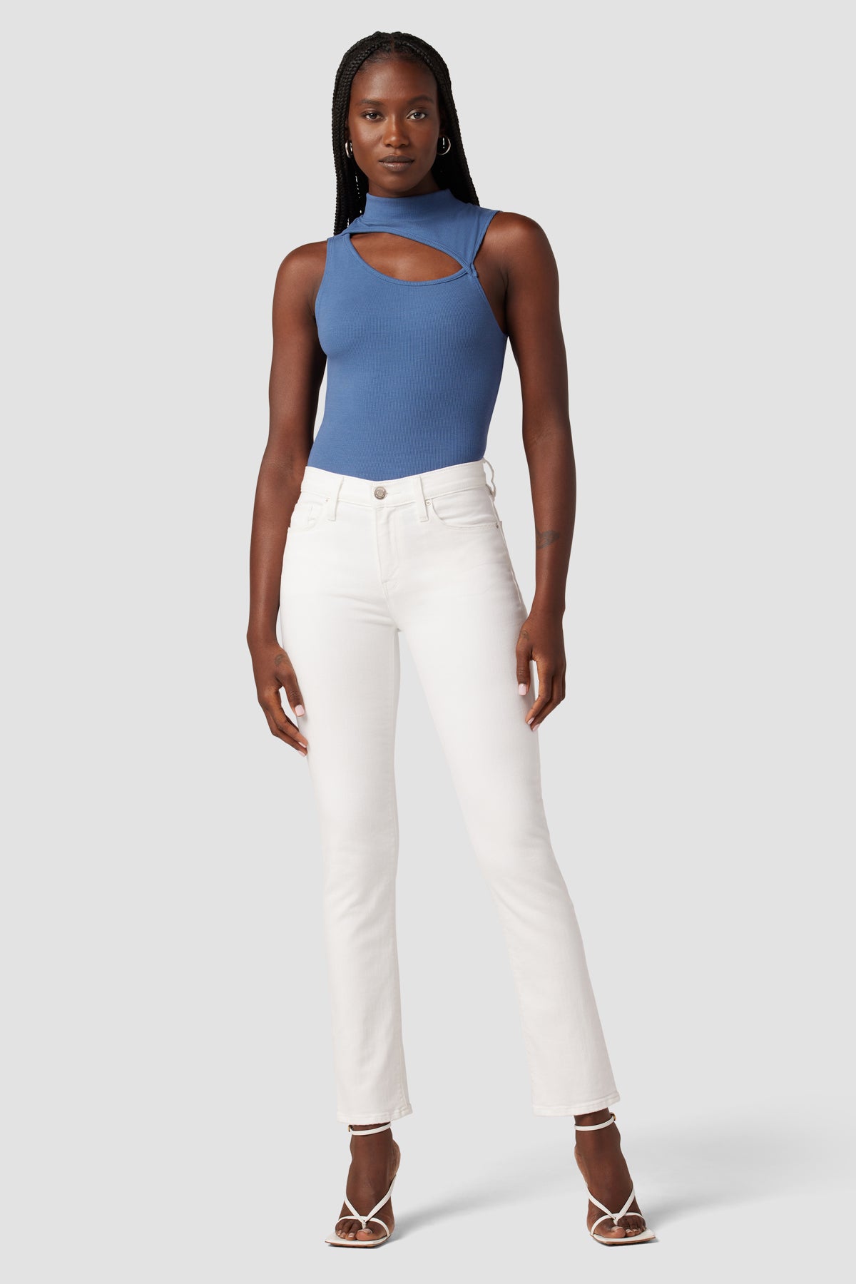 - Our Mock Neck Cut Out Tank is the perfect base layer staple, made from premium rib knit fabric in Moonlight Blue.