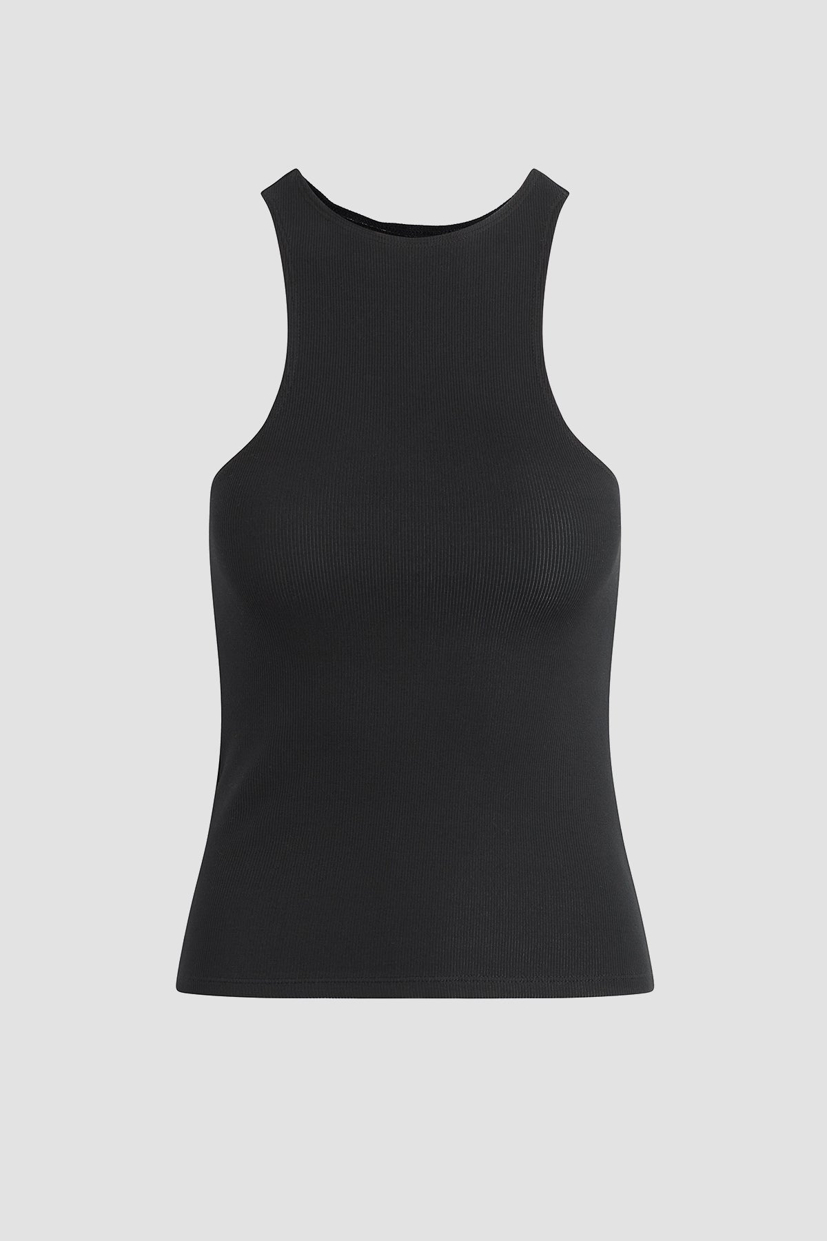 - The must-have Racer Tank in Black is made from our classic and comfortable rib knit, complete with a racerback cut and full-length hem.