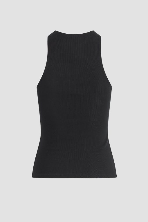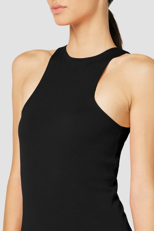 - The must-have Racer Tank in Black is made from our classic and comfortable rib knit, complete with a racerback cut and full-length hem.