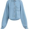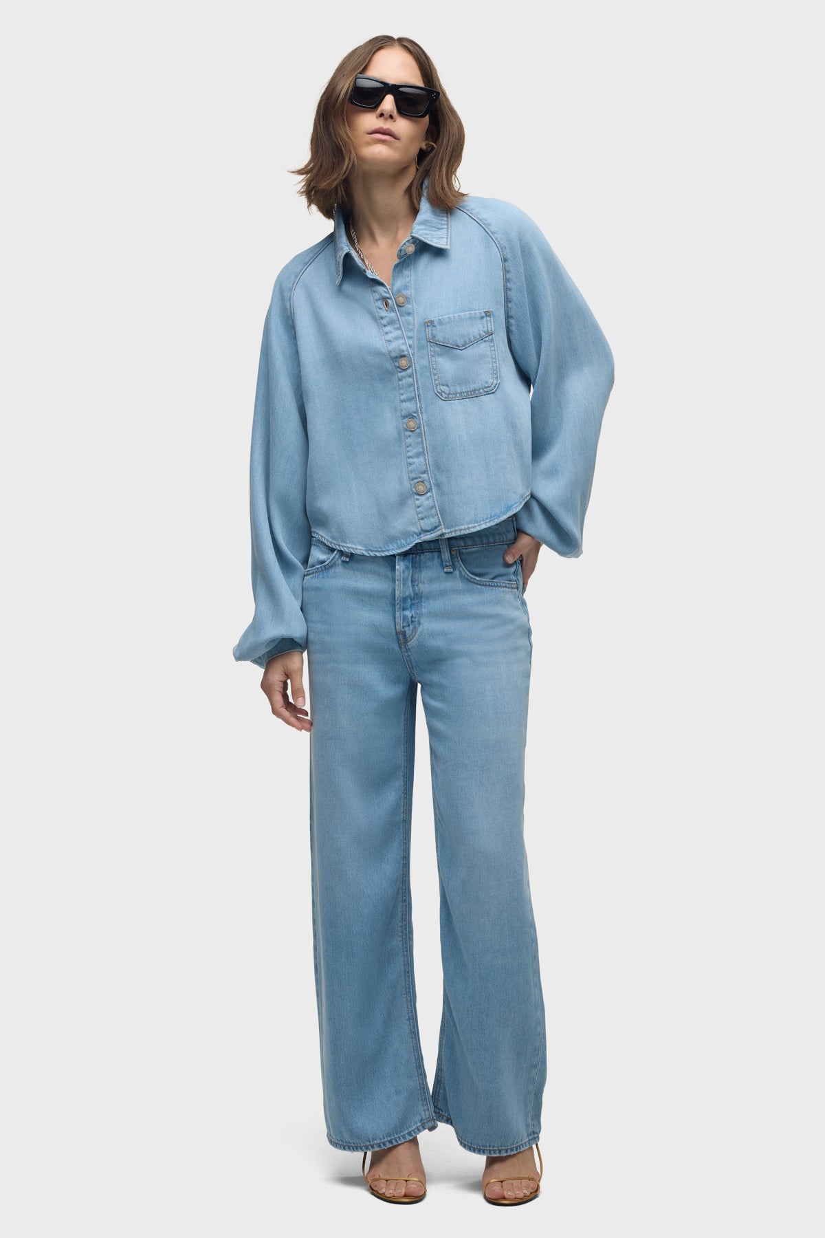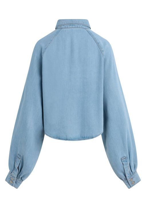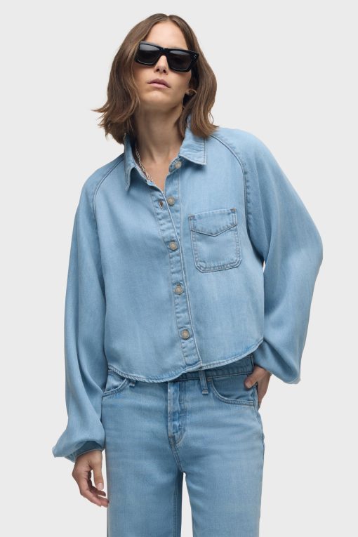 - Our Raglan Balloon Sleeve Button Down in Sprout is a classic shirt with the added twist of balloon sleeves. This shirt is made of a lightweight drapey denim fabric in a clean light blue indigo wash with heavy stone washing and bleaching.