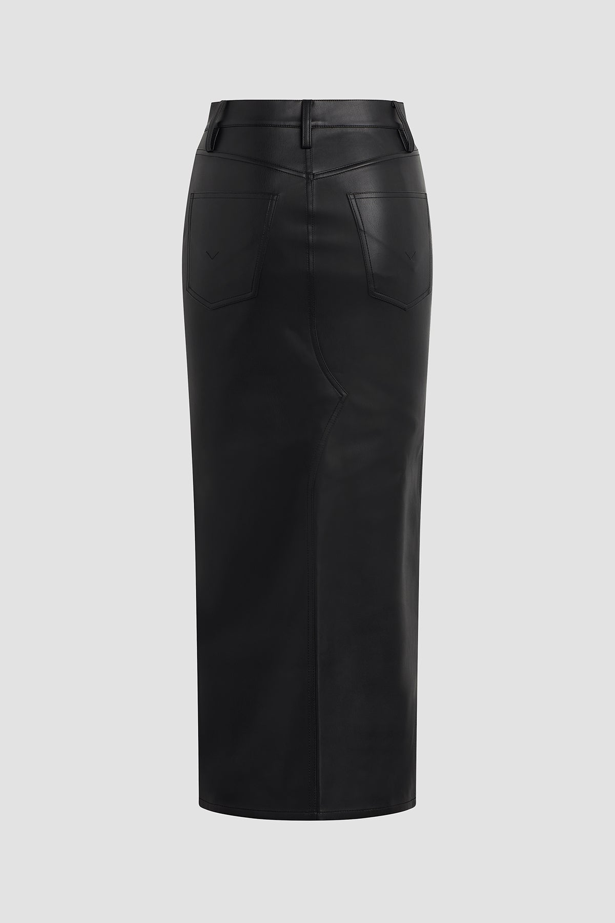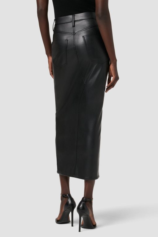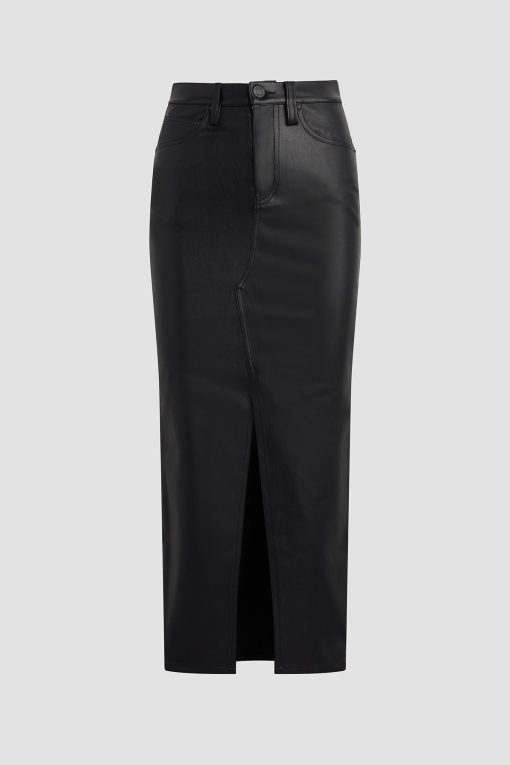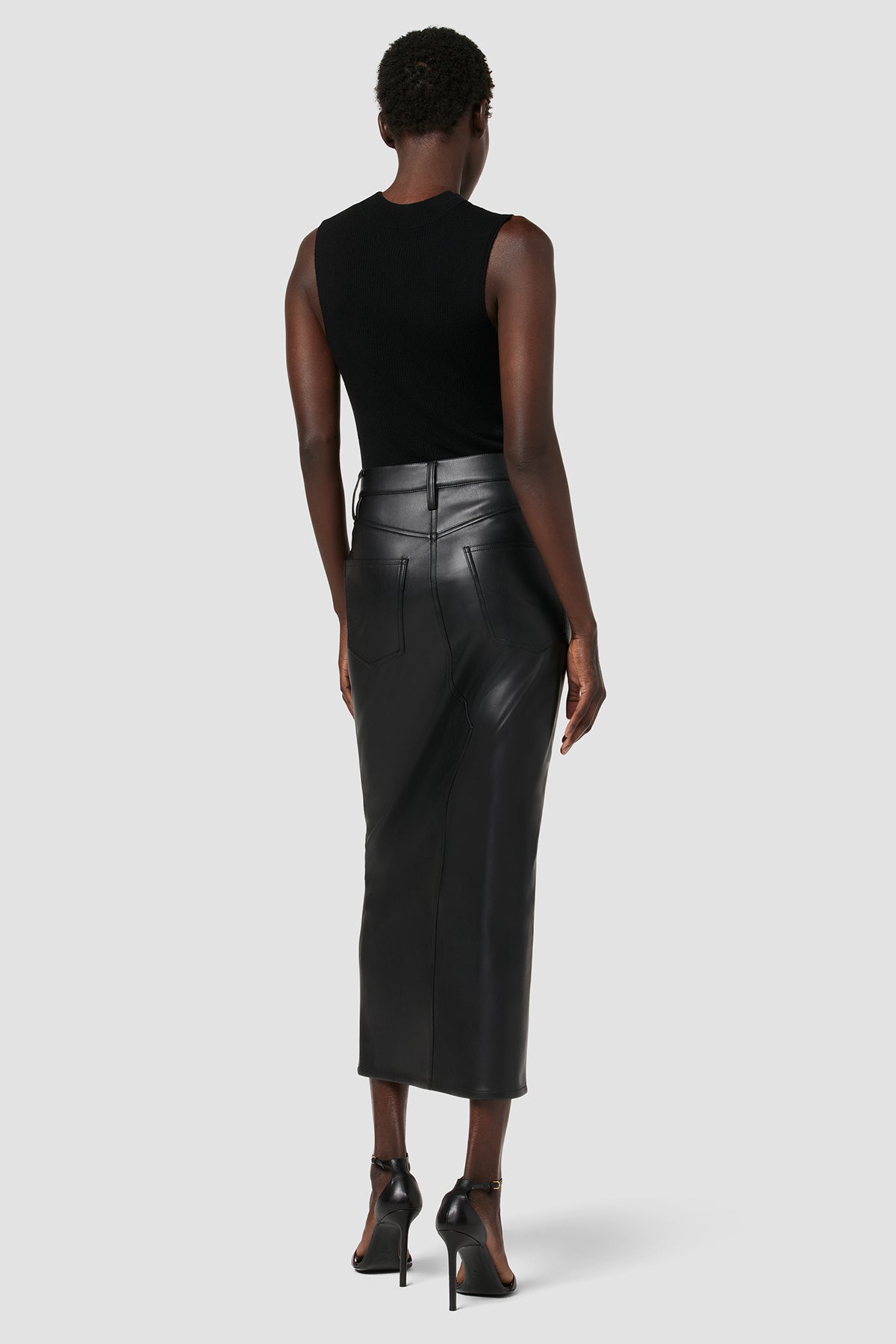 - Long and sleek, our Reconstructed Skirt in Black is made with our Illusion Leather, a luxe vegan leather with a high center slit and finished hem.
