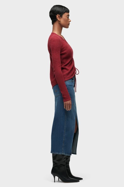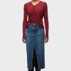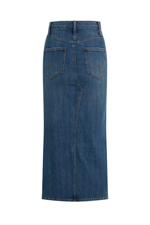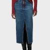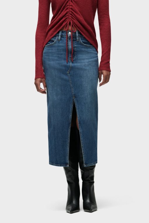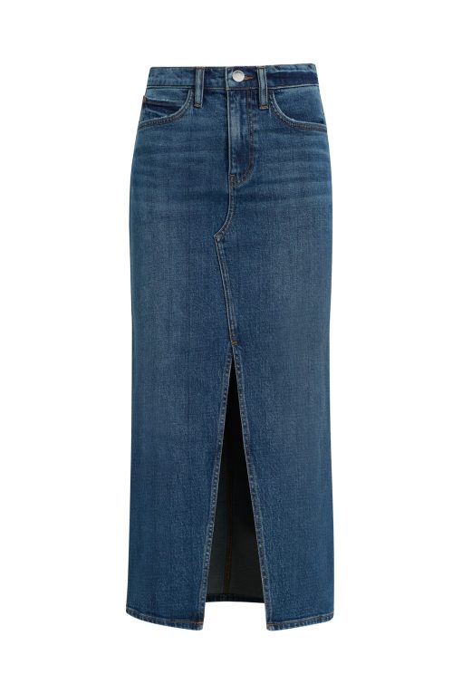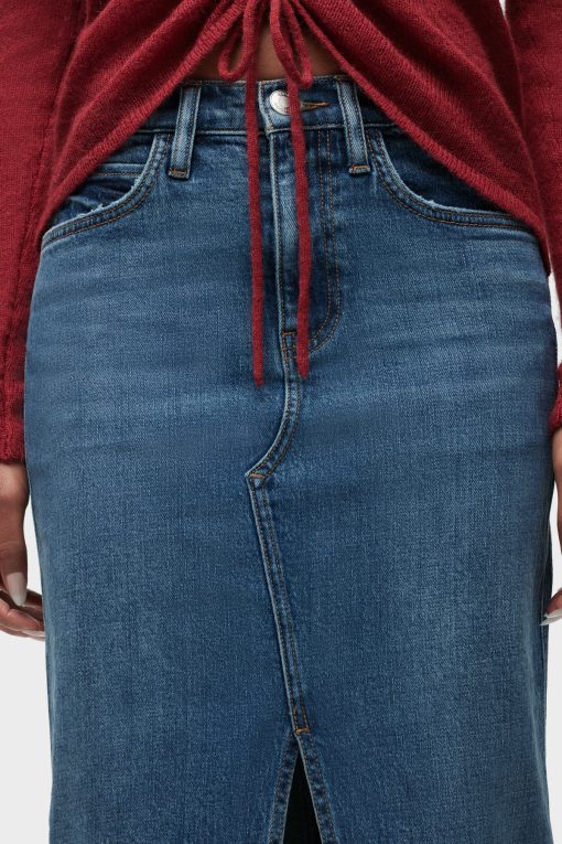 - Our Reconstructed Skirt in medium-dark Zion hits below the knee with a midi length. With the front slit and versatile styling, it’s a year-round must.