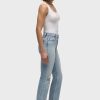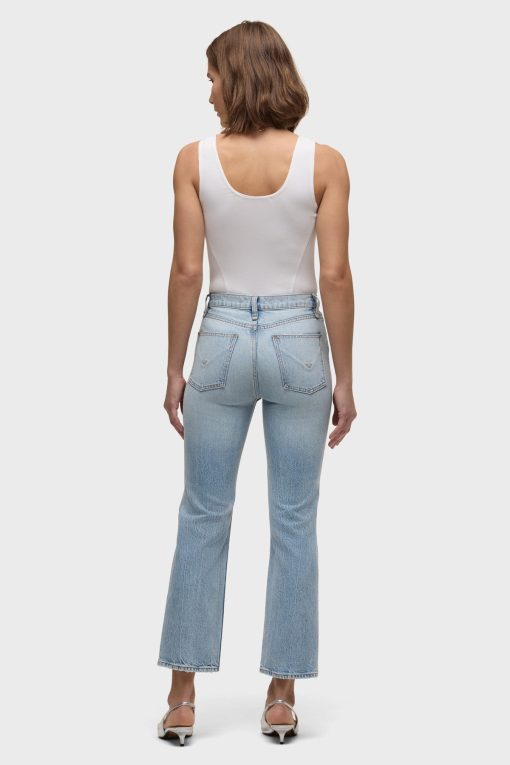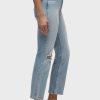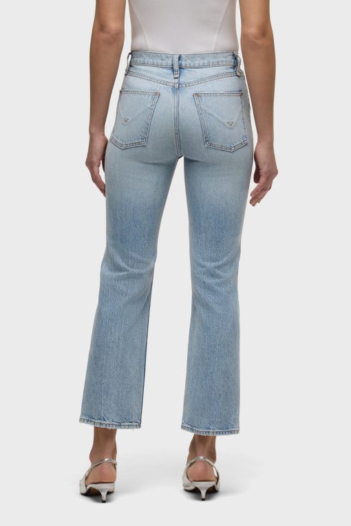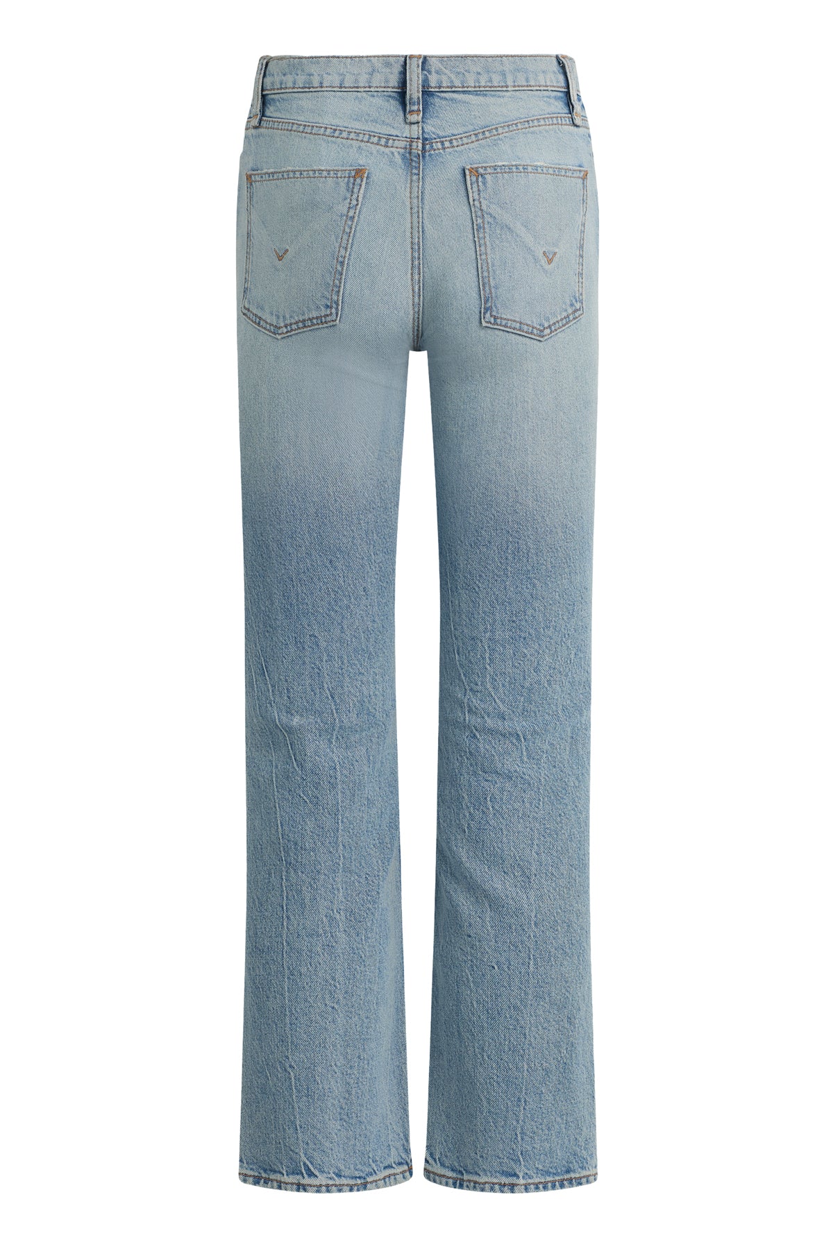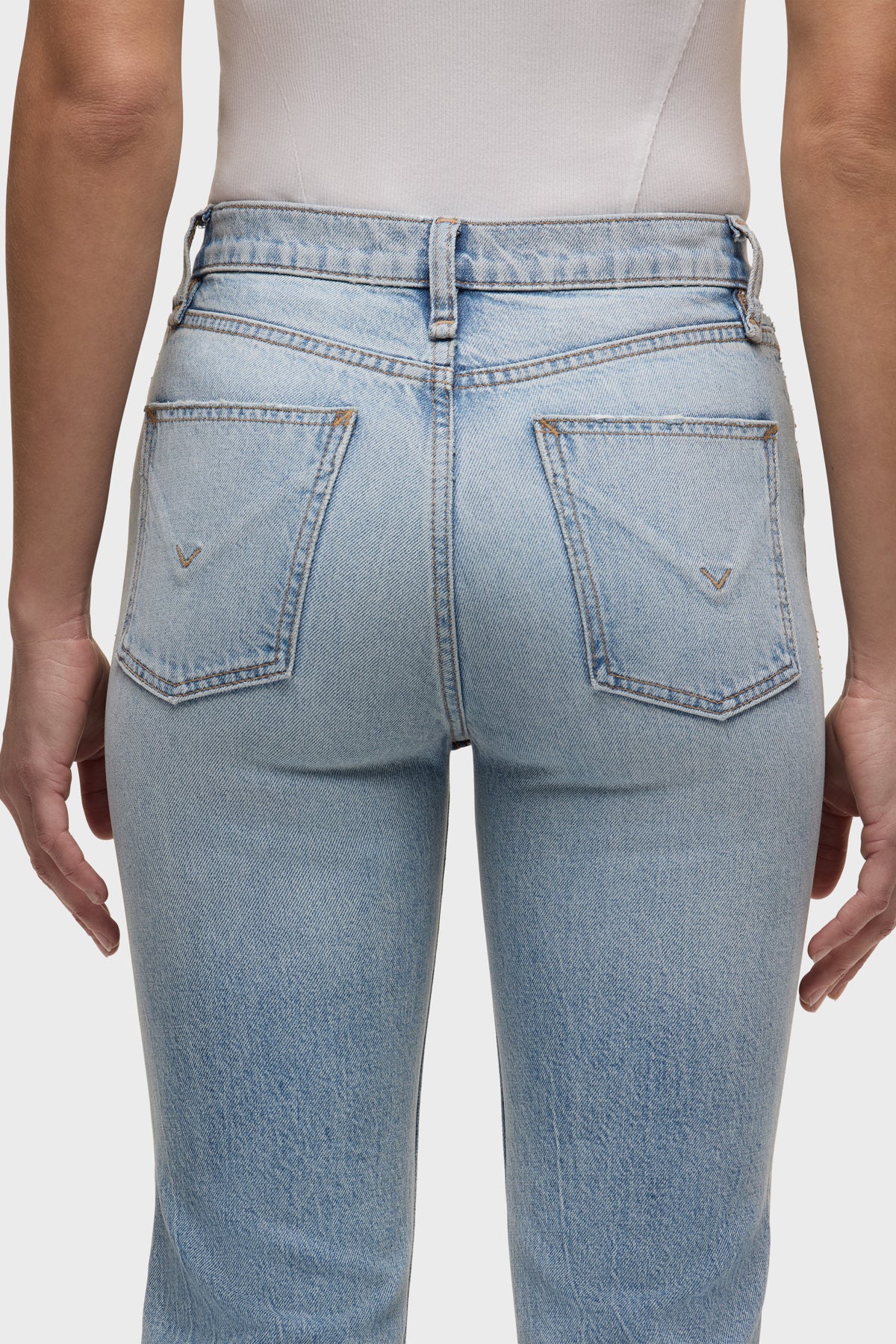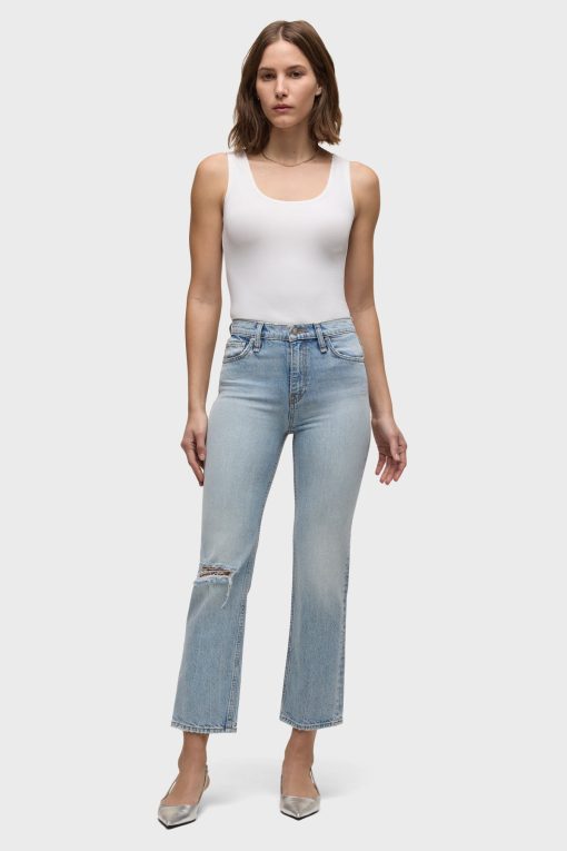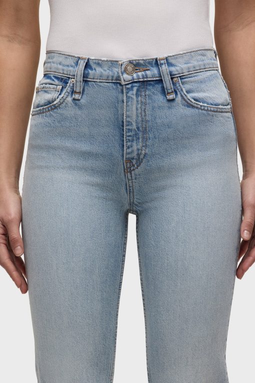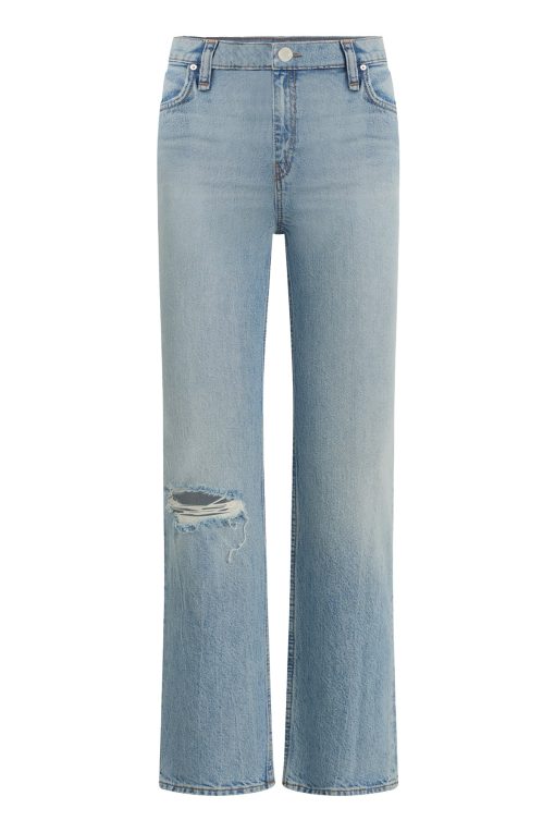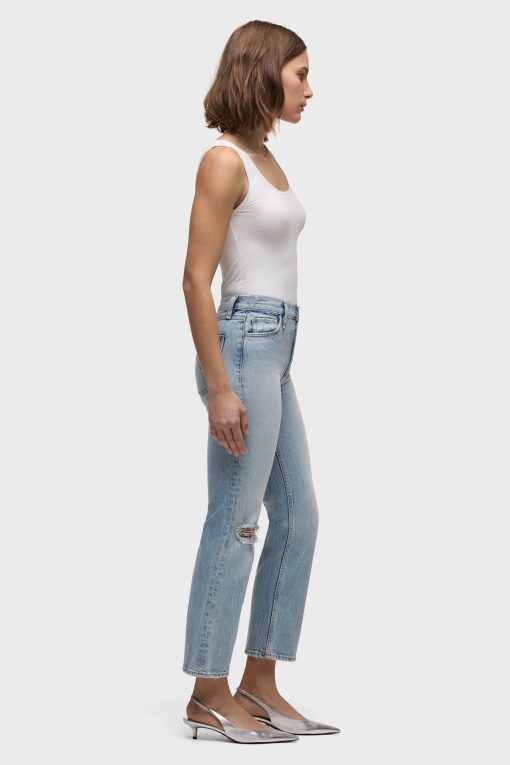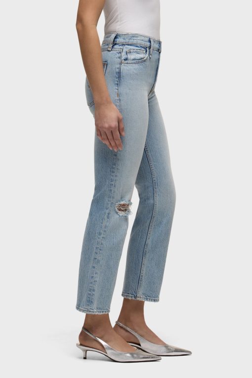 - Our Remi High-Rise Straight Ankle Jean in Sprinkle Destructed is cut with a flattering high rise and relaxed leg. Made of comfort stretch denim in a light indigo wash, this pair is finished with an ankle-length 28″ inseam, clean hem and knee destruction on the wearer’s right.