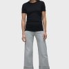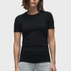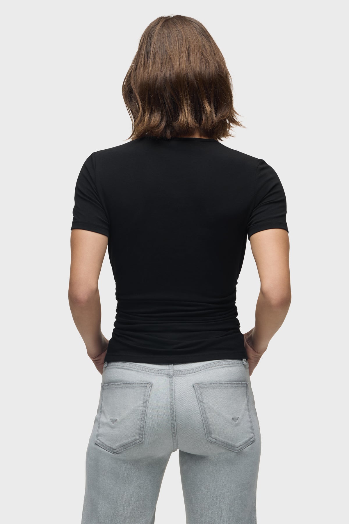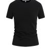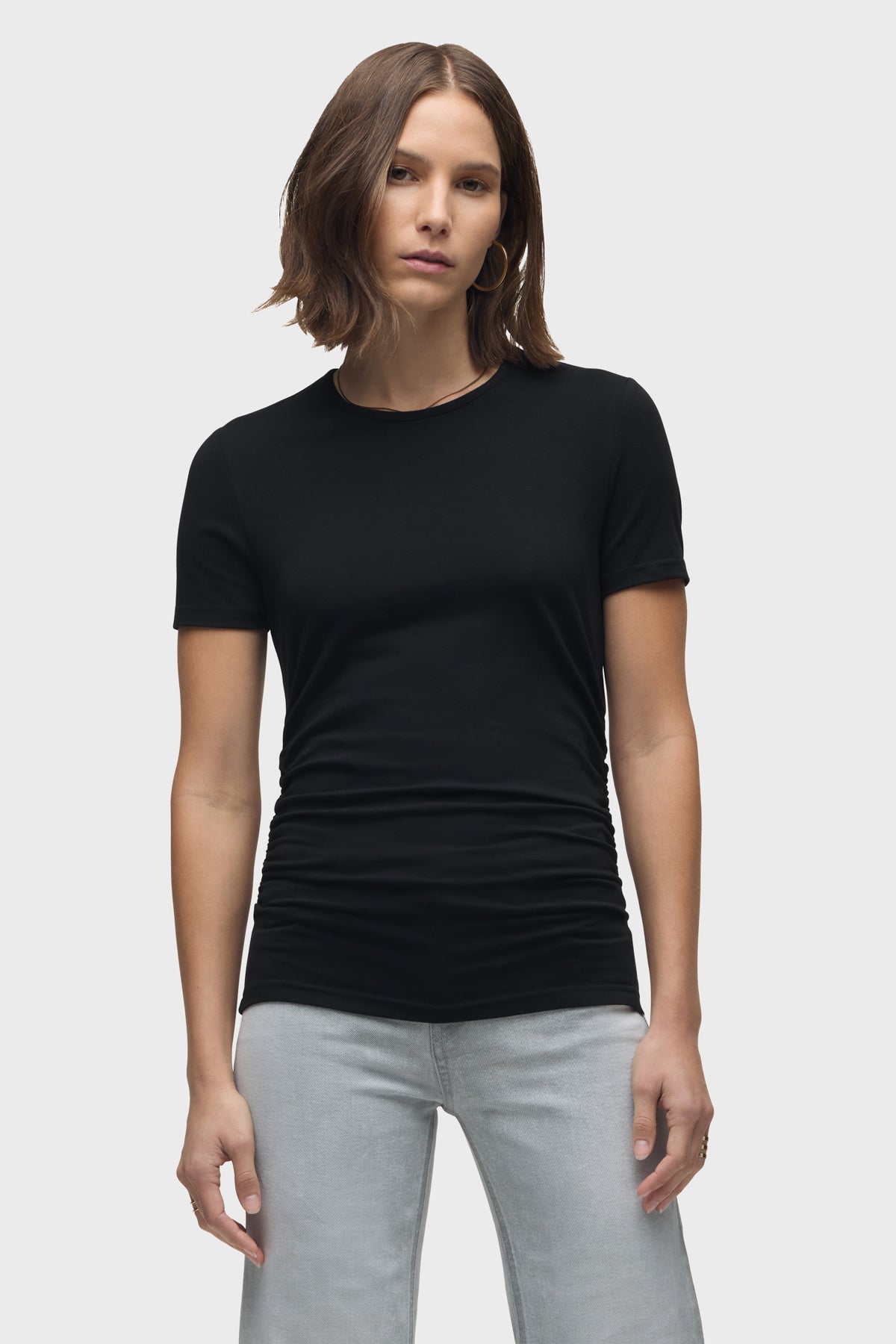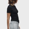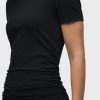 - Our Ruched Crew Neck Top in Black is a short sleeve top made of overdyed black soft jersey with a crew neckline and ruching at the side seams for a snug fit.