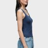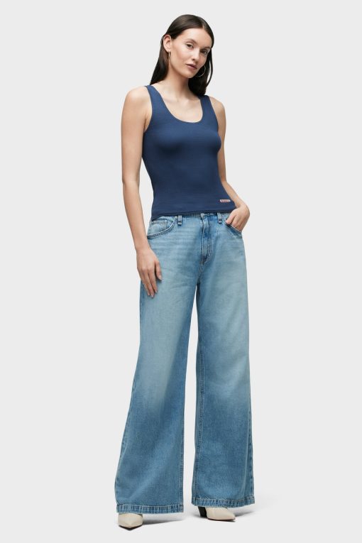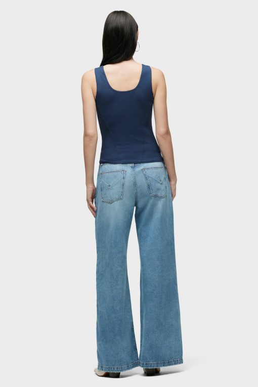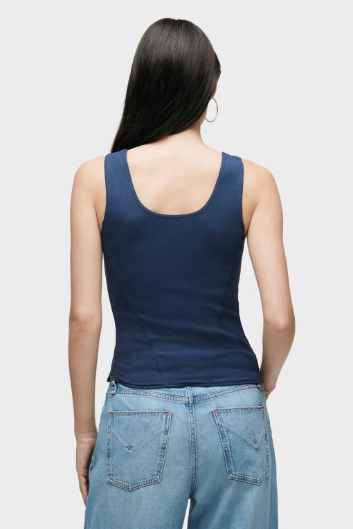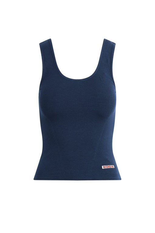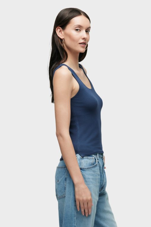- Our Scoop Neck Tank in Mood Indigo is made from a soft, lightweight rib-knit with side slits. Features our signature Union Jack label.