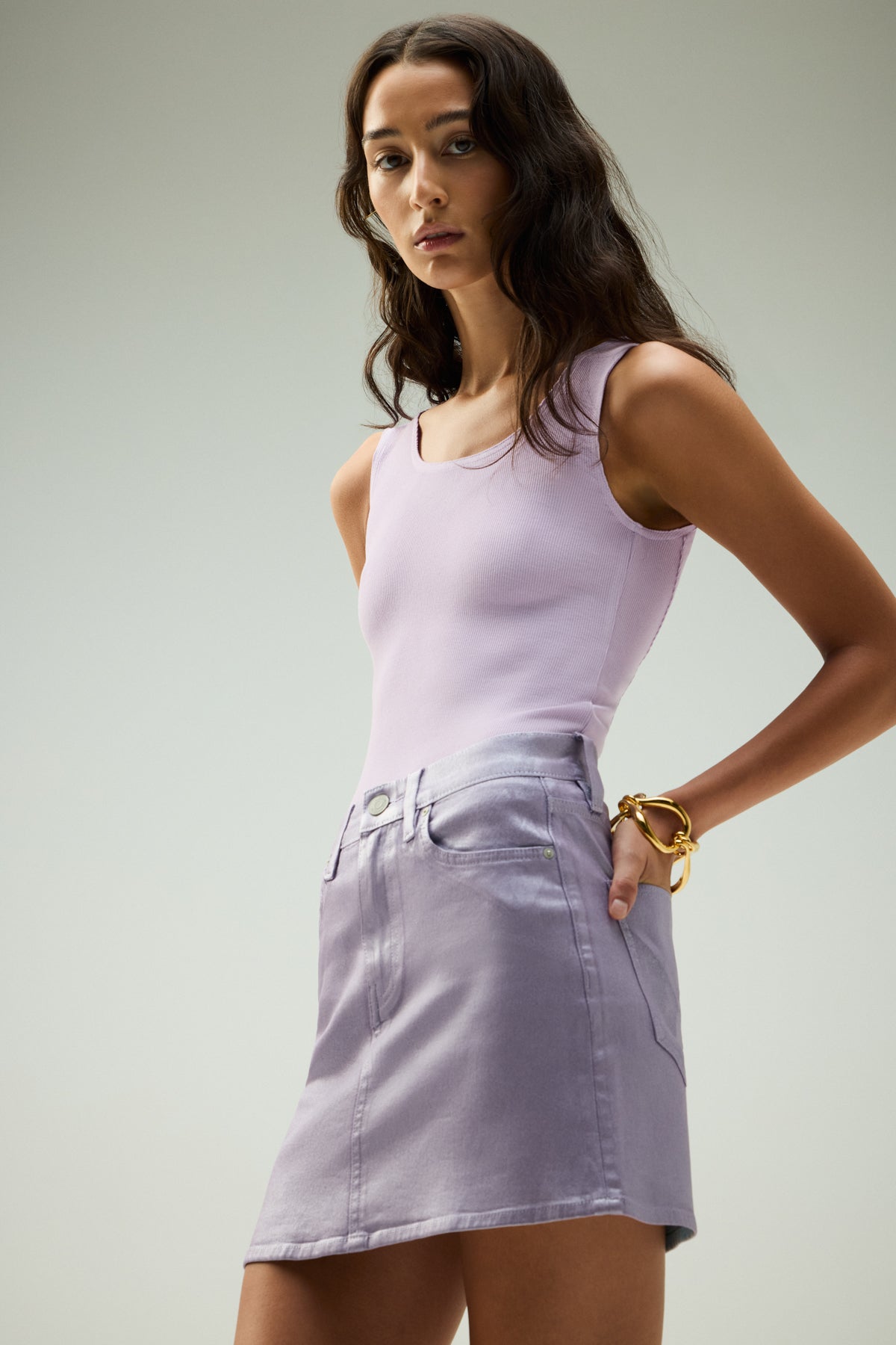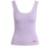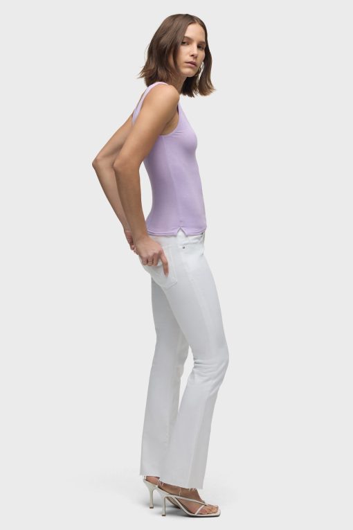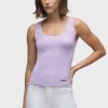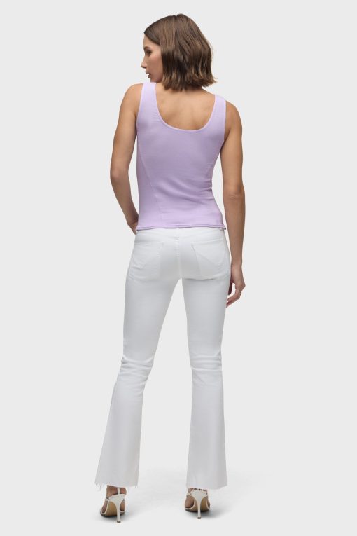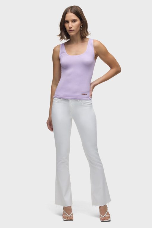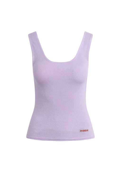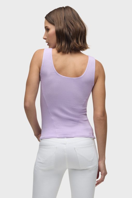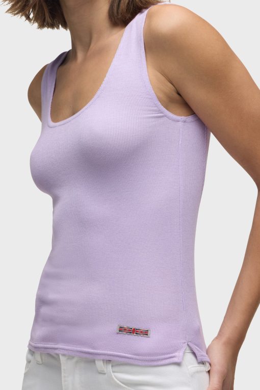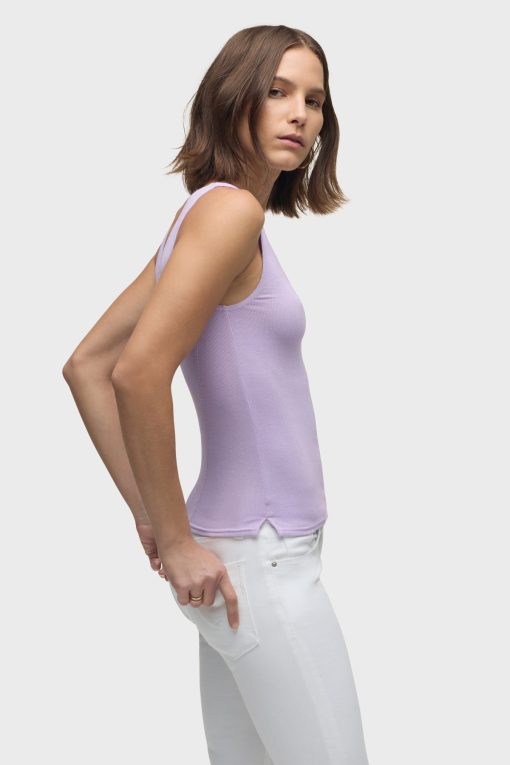 - Our Scoop Neck Tank in Orchid Bloom is made from a soft, lightweight rib knit in a light purple shade. This top is finished with side slits and our signature Union Jack label.