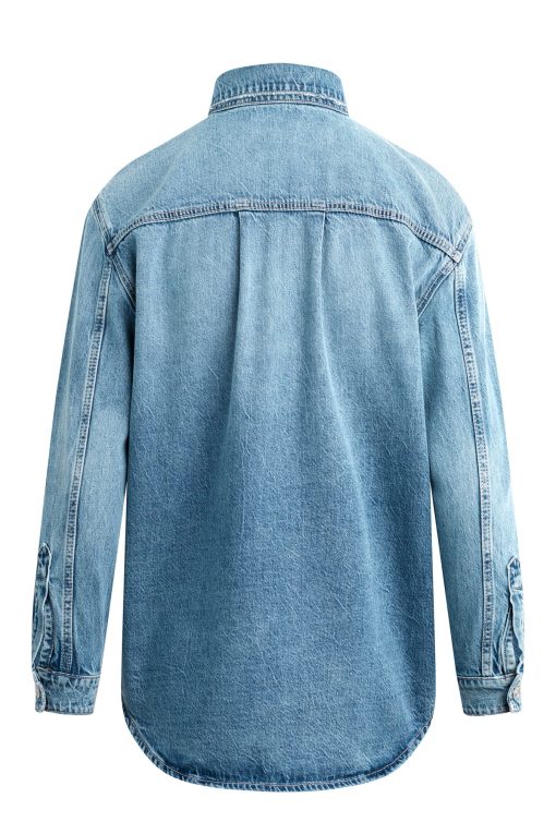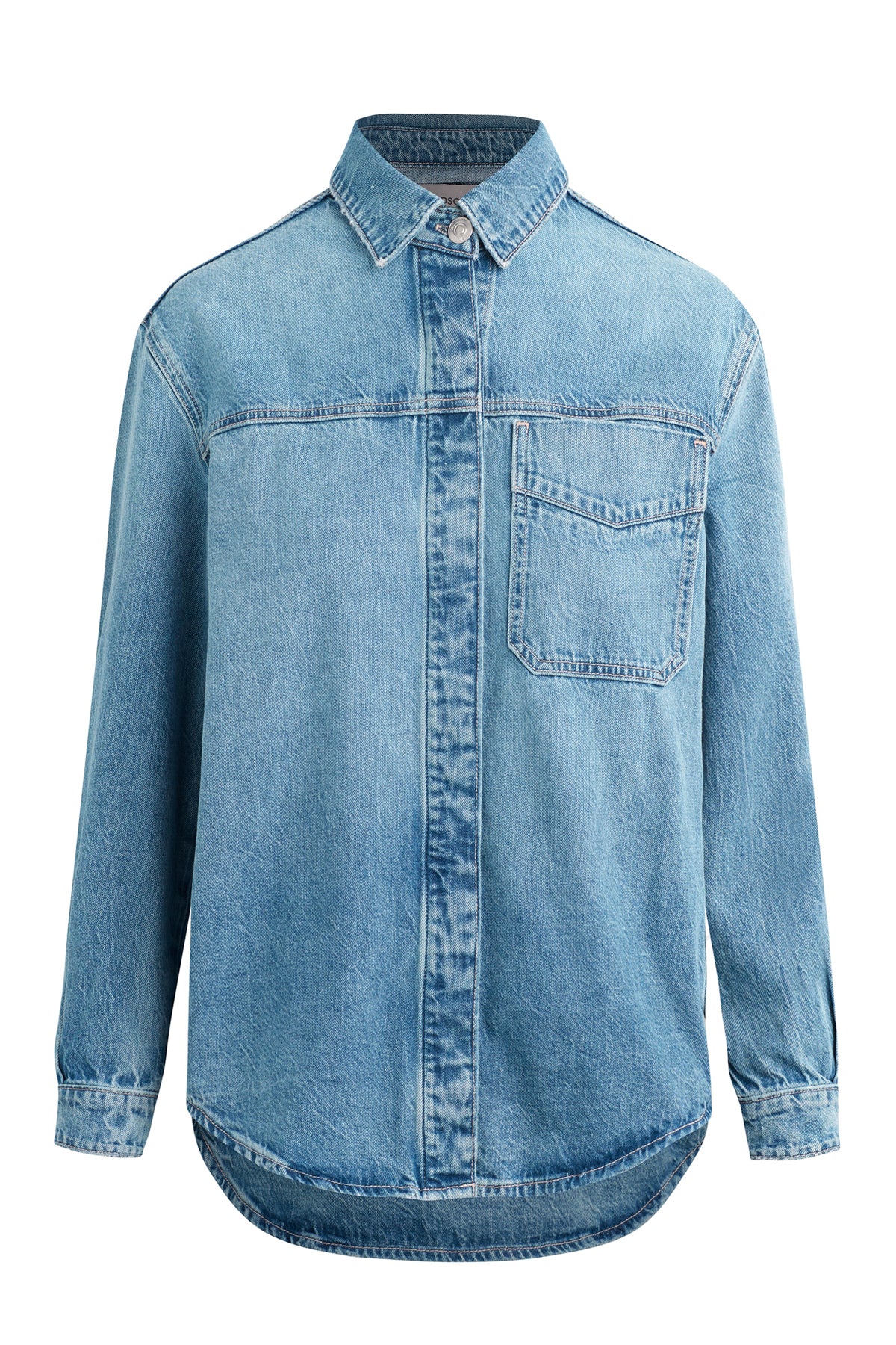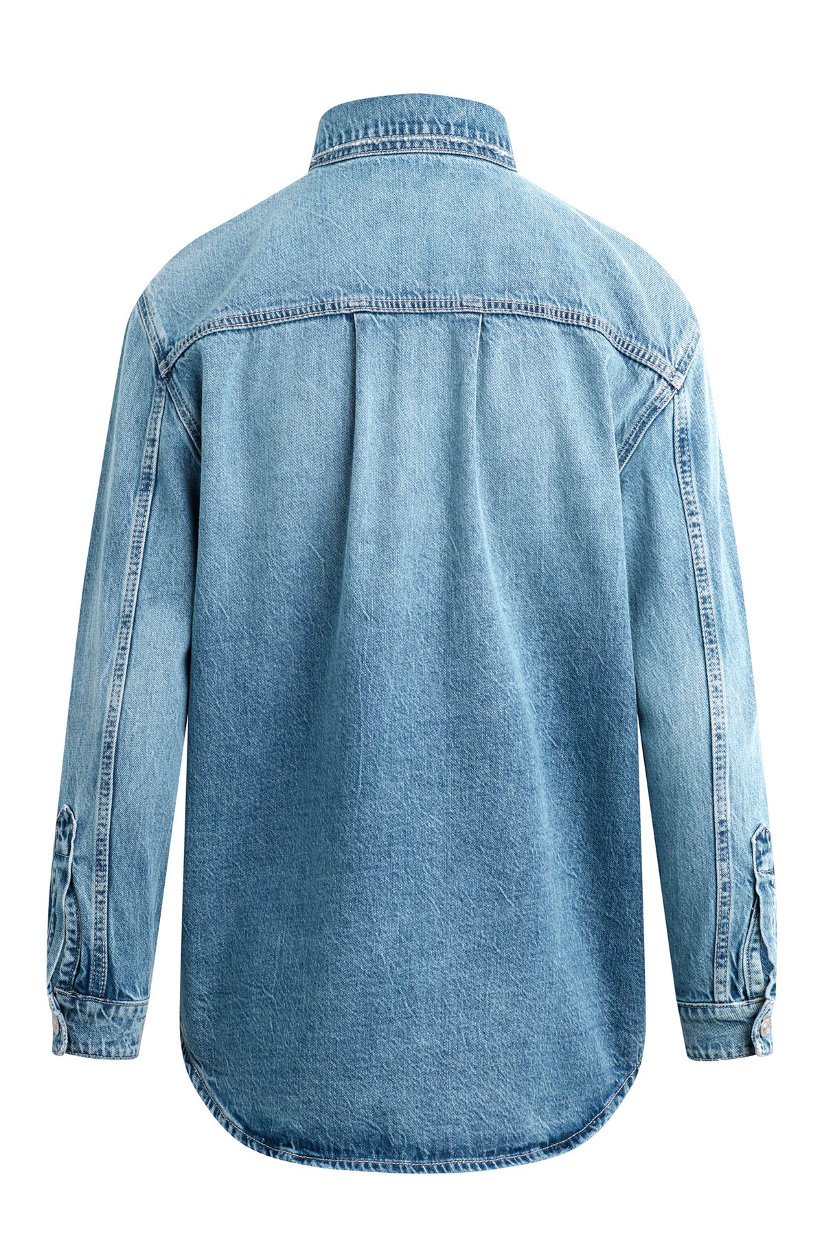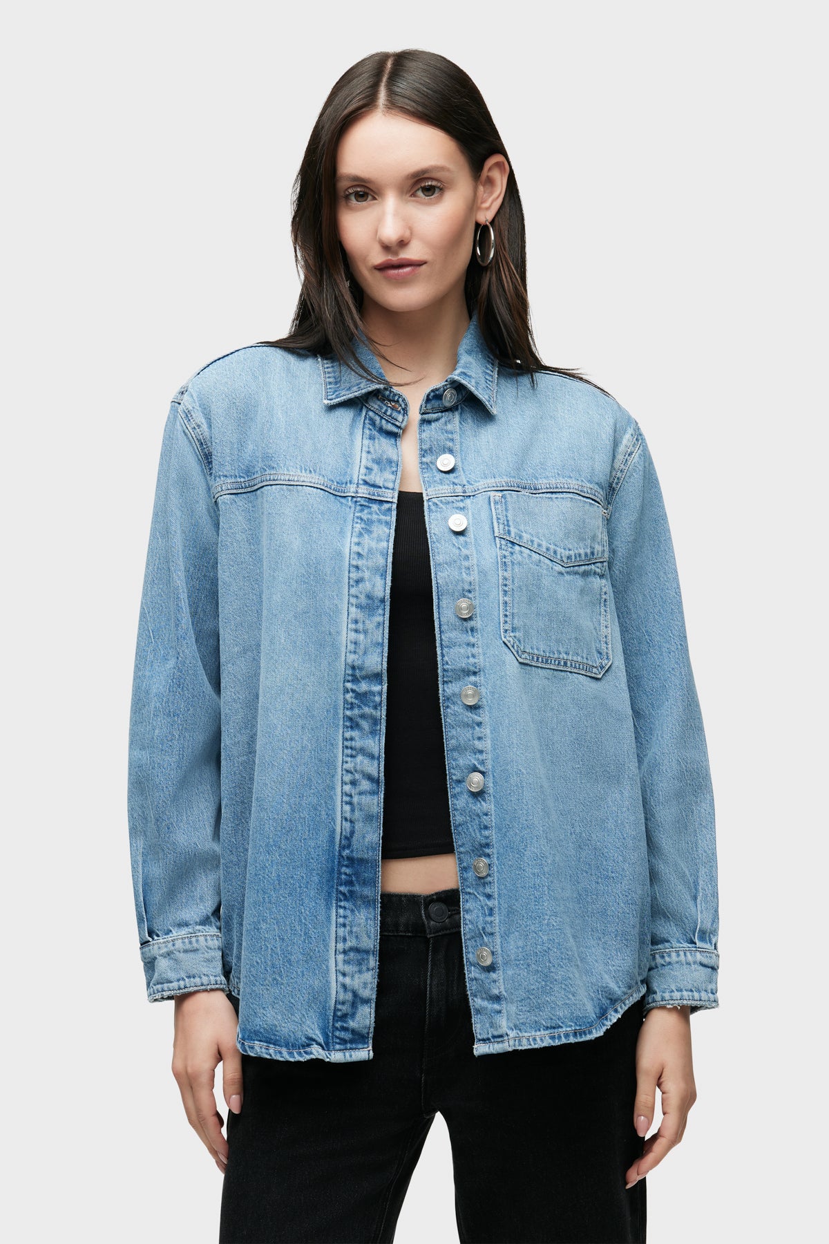 - Our Shacket in the light wash, Dubai, is cut from a lightweight, drapey rigid denim. The relaxed fit features long sleeves, pointed collar, side pockets and grinding along the edge.