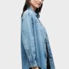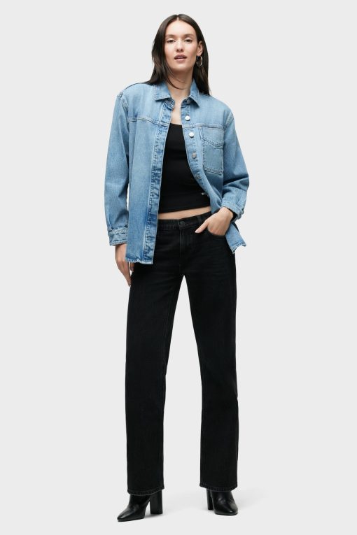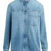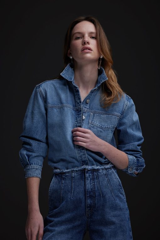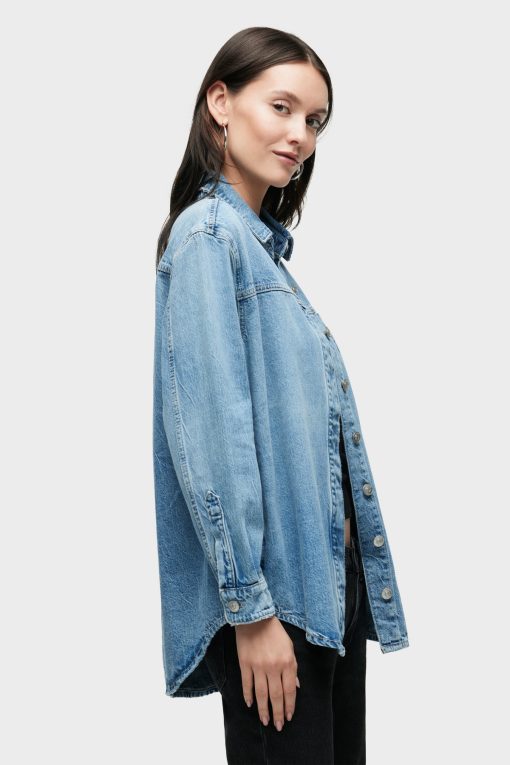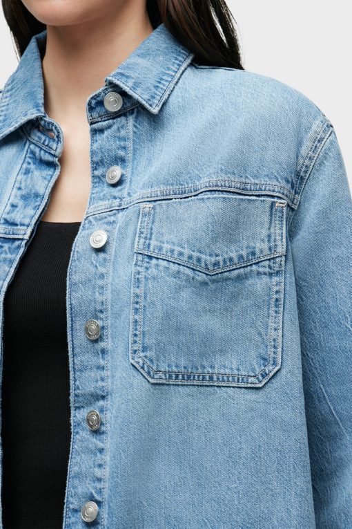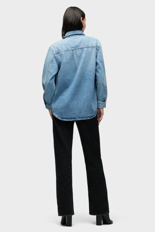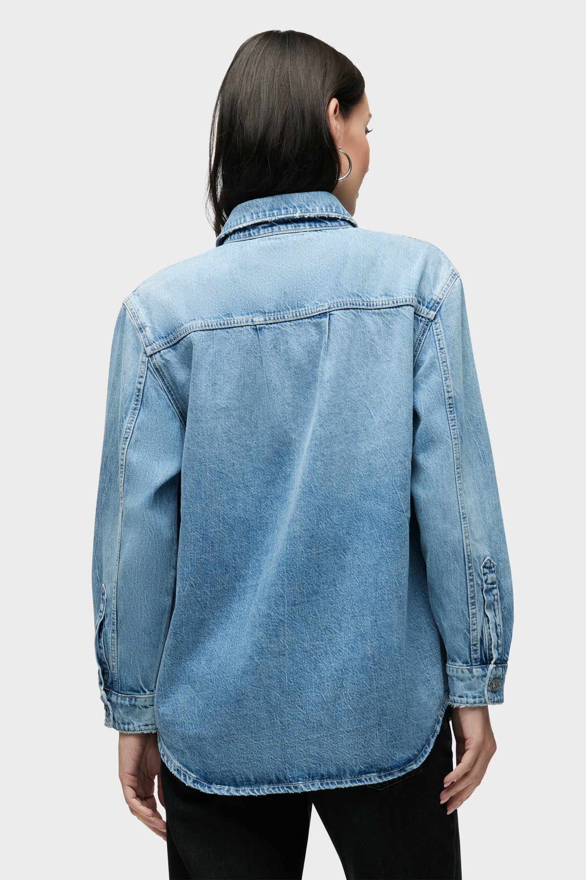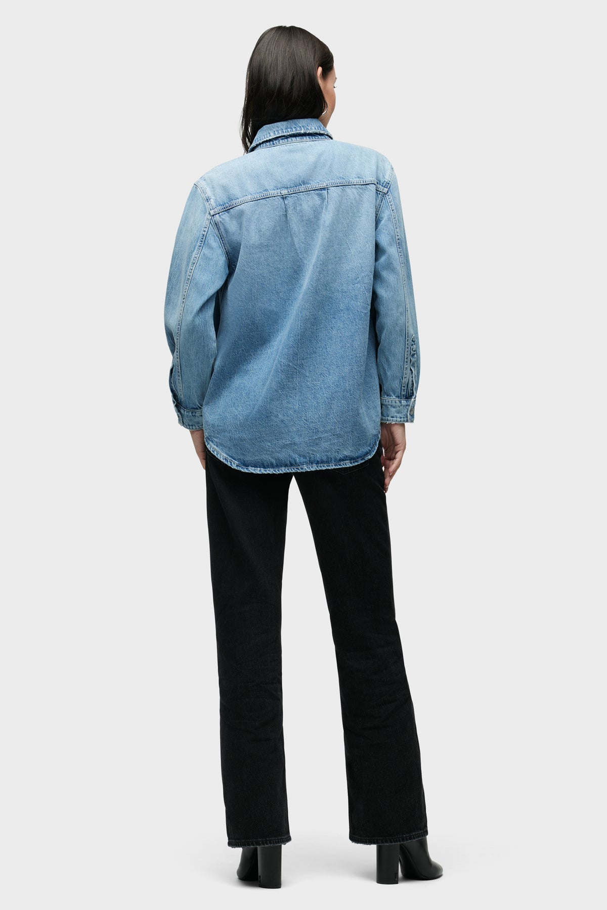 - Our Shacket in the light wash, Dubai, is cut from a lightweight, drapey rigid denim. The relaxed fit features long sleeves, pointed collar, side pockets and grinding along the edge.