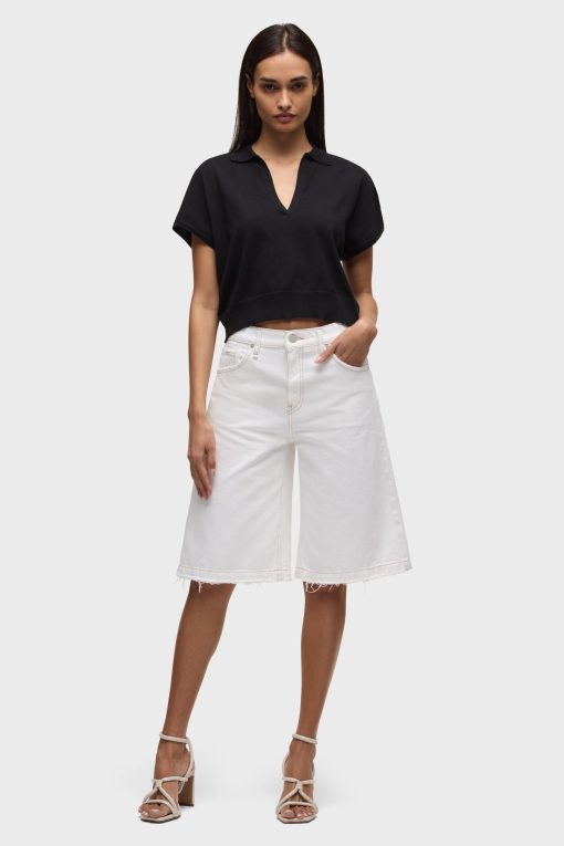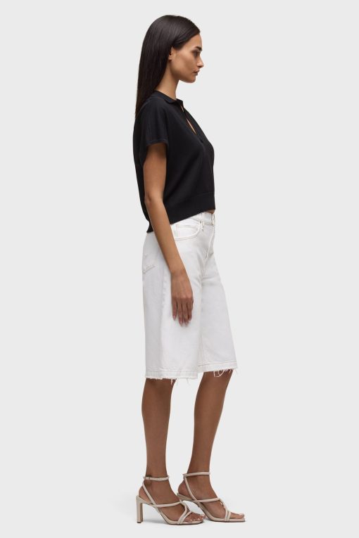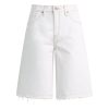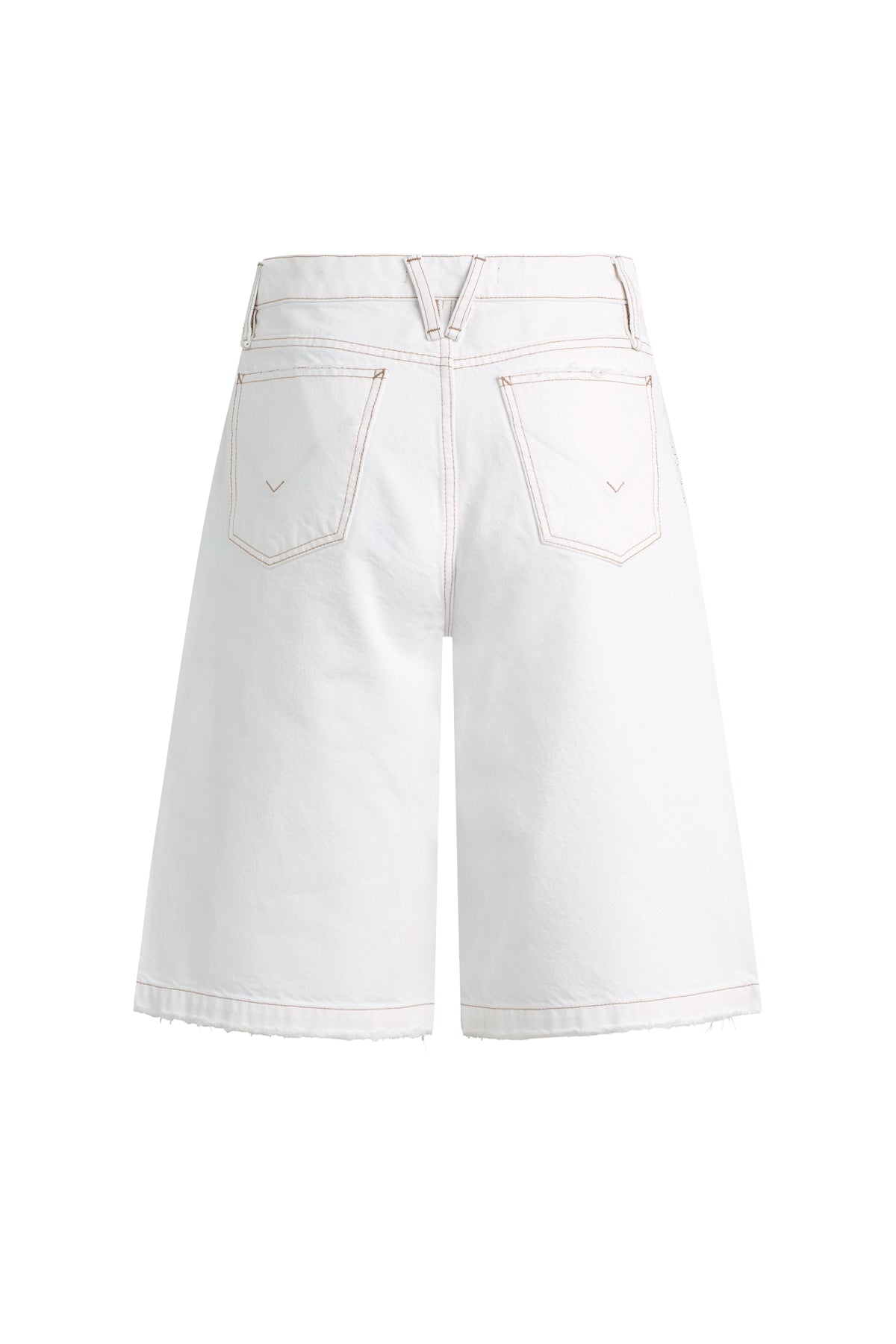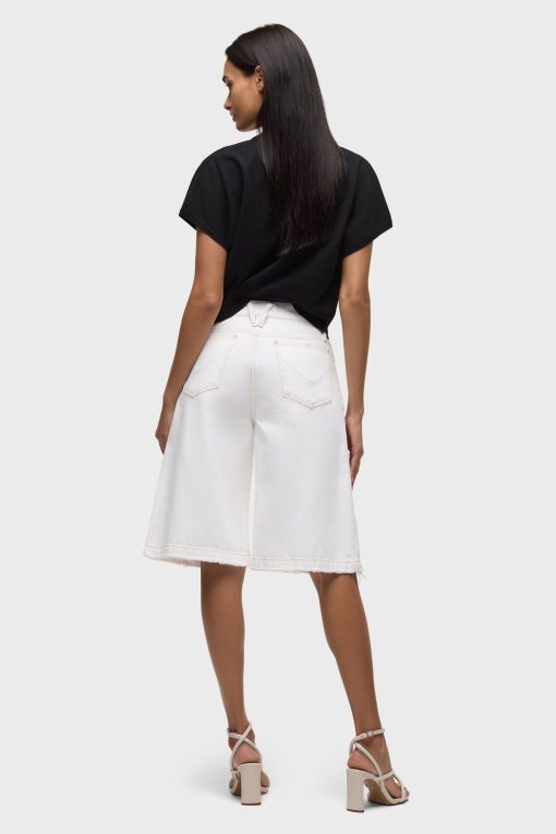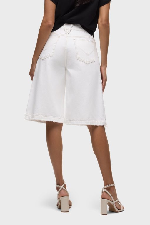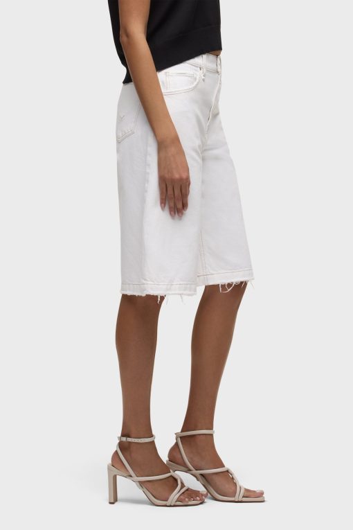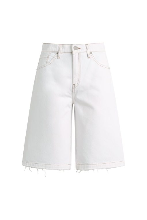 - The Skylar Dropped Long Short in White is a five-pocket short inspired by skate menswear. Designed to be worn relaxed, this long short has a 13″ inseam with a raw hem. It is made of rigid denim in an optic white shade.