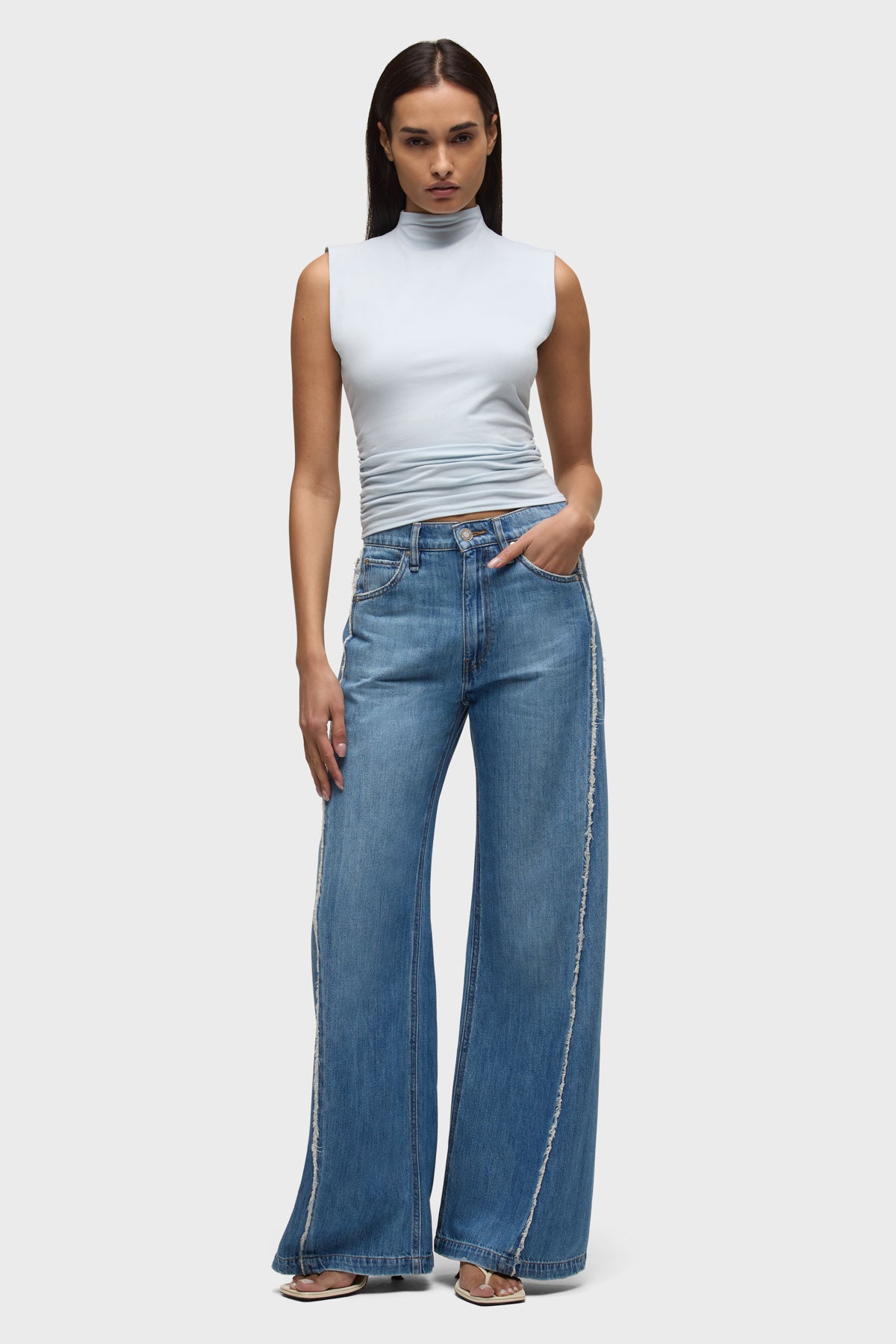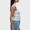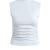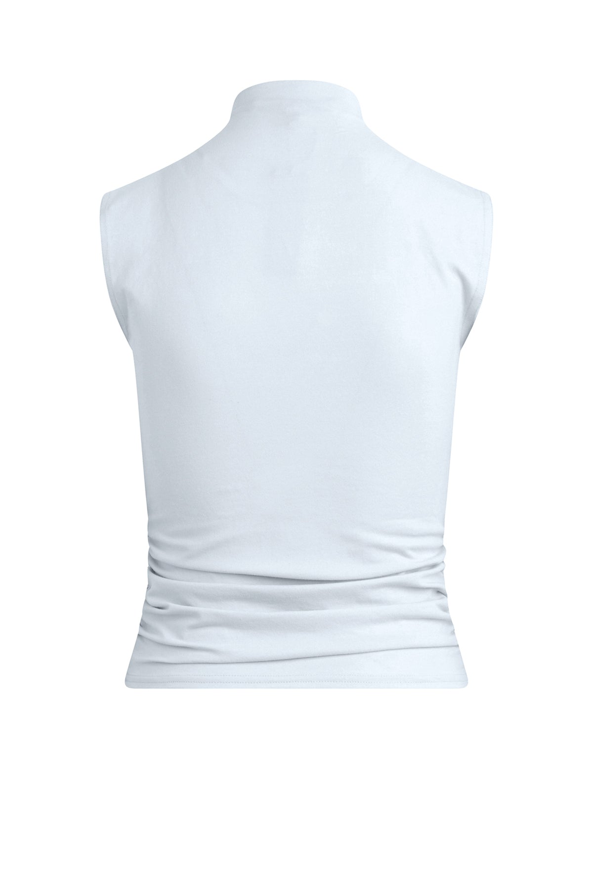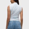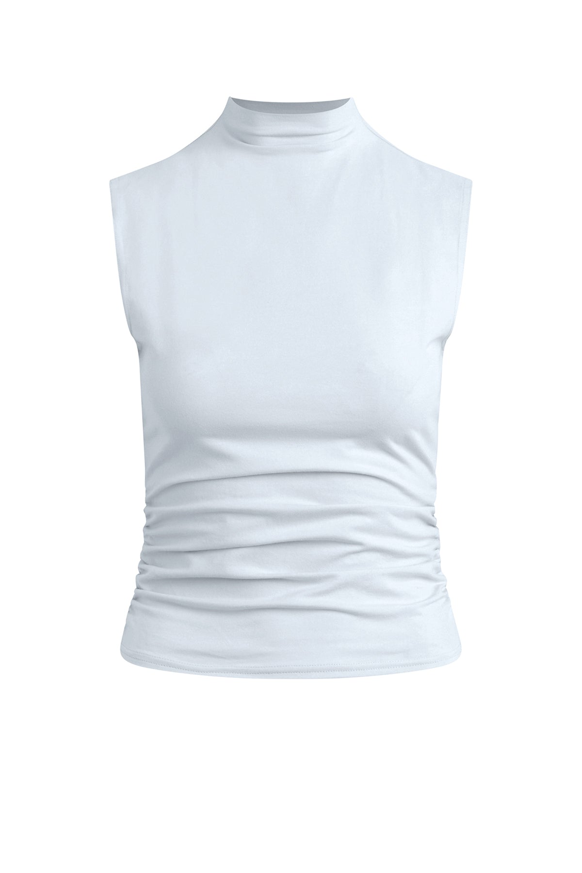 - Our Tank with Side Seam Ruching in Ballad Blue features mock neck styling and elastic at the sides for a ruching effect. This soft essential is made of jersey knit in a baby blue color.