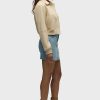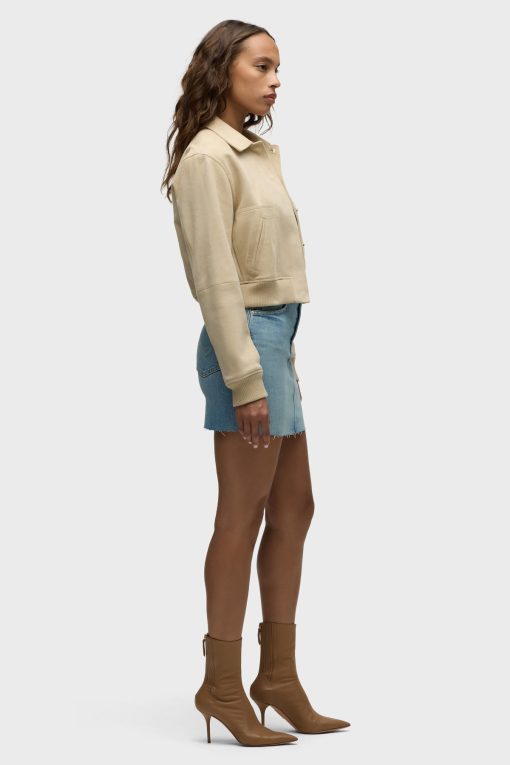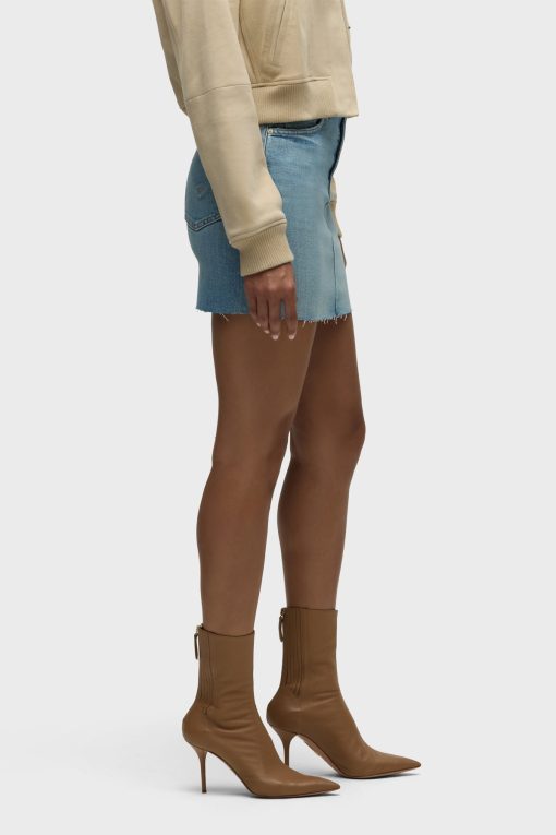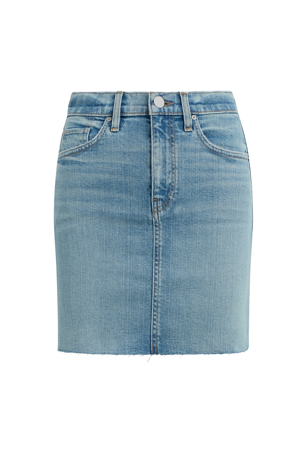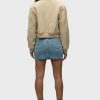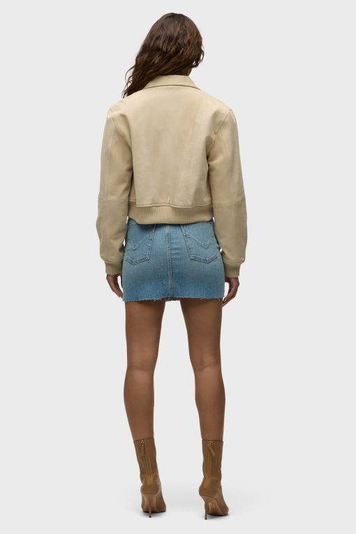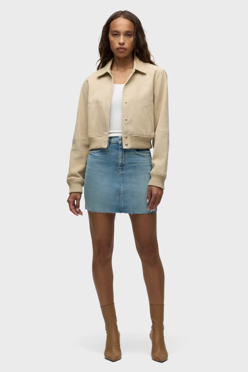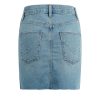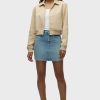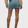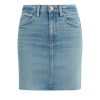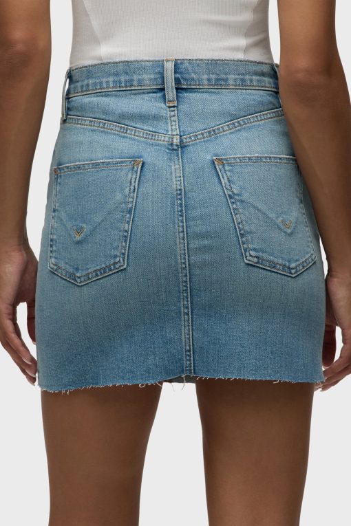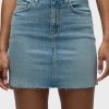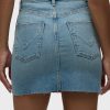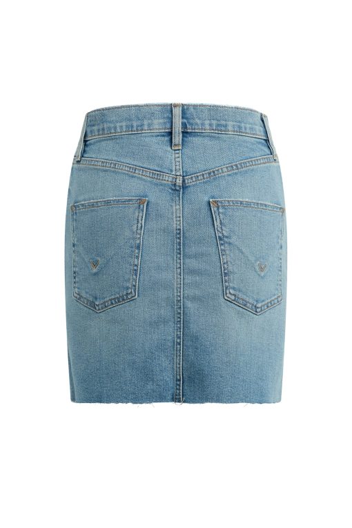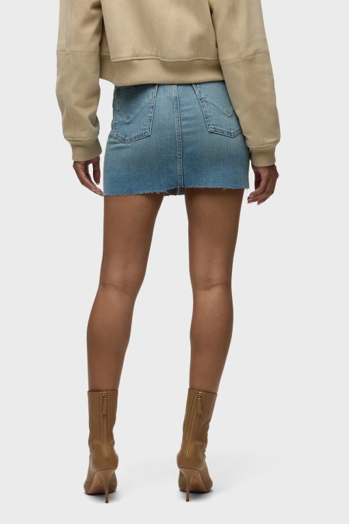 - Our Viper Mini Skirt in medium-light Aviator is made from premium comfort stretch denim for flexibility. High-rise, A-line shape. Complete with whiskering, a raw hem and grinding along the edges.