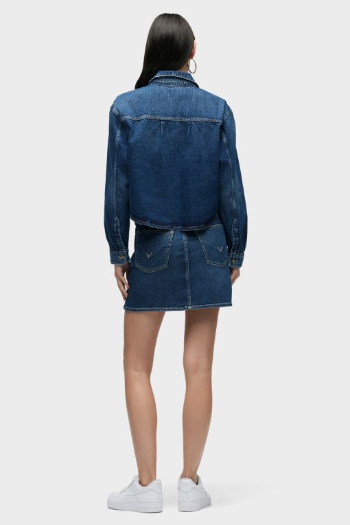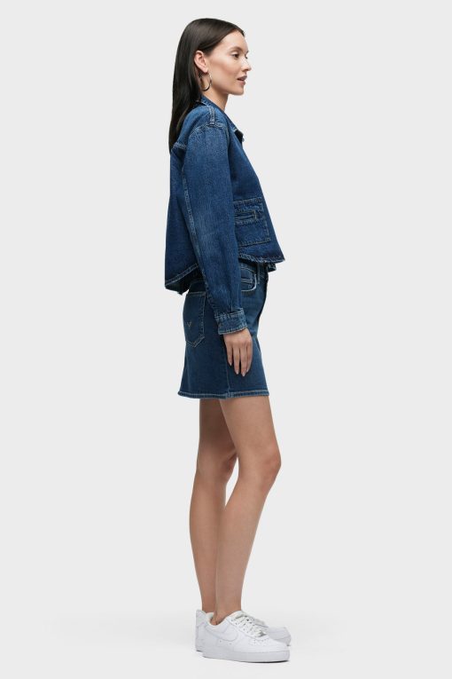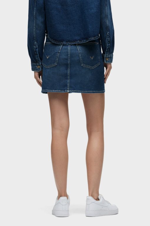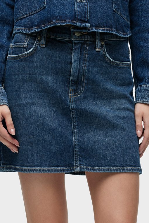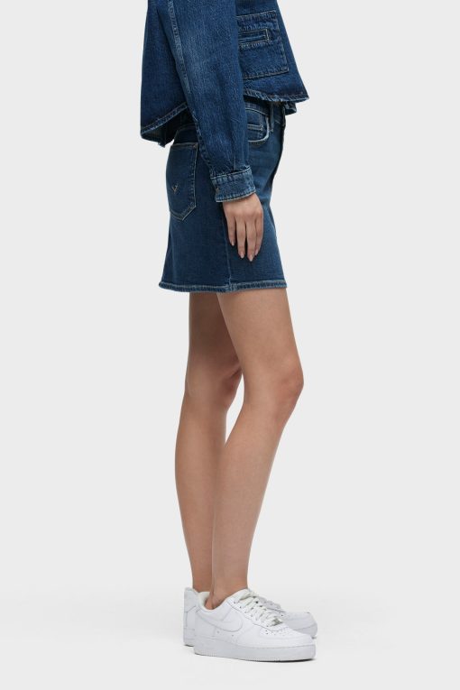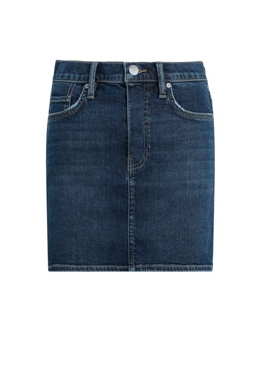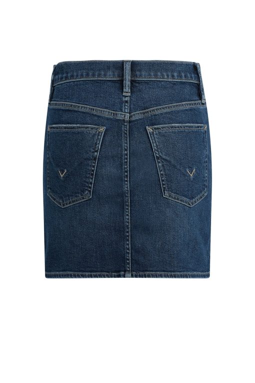 - Our Viper Mini Skirt in medium-dark Riot is cut from premium stretch denim made from recycled cotton. High-rise, A-line shape. Complete with classic five-pocket details and grinding along the edges.