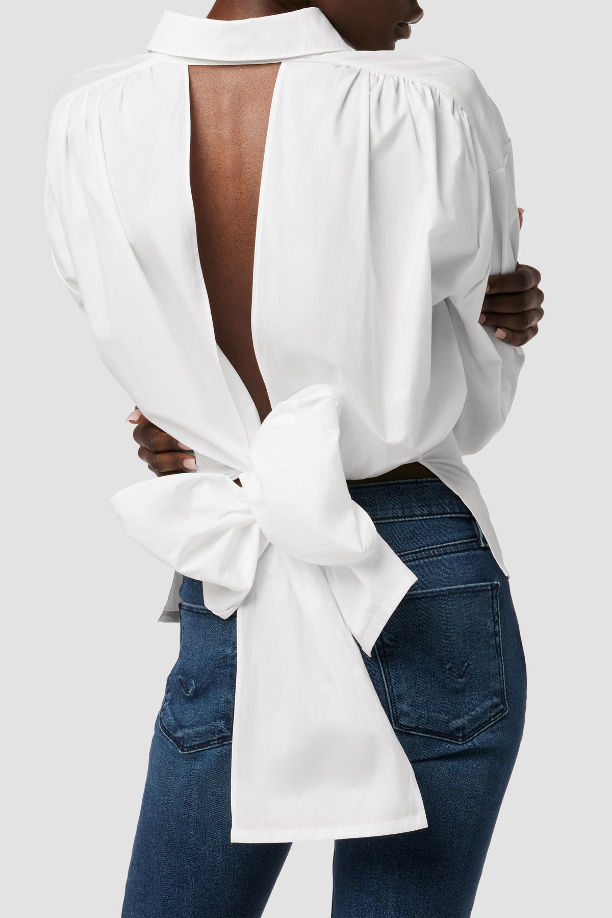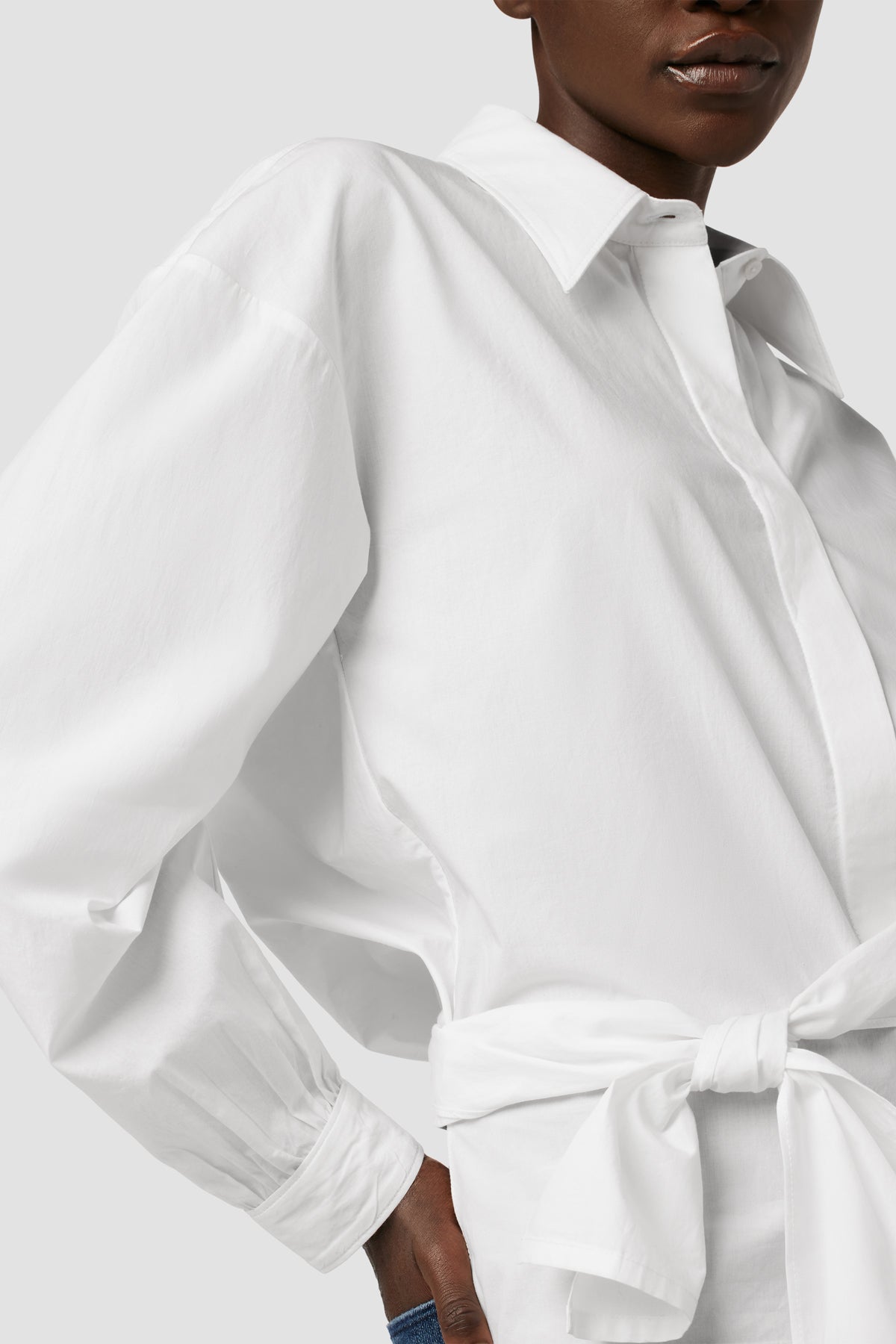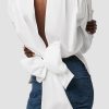 - Our Wrap Poplin Top is cut from soft 100% cotton in White. Finished with a button-front closure, pointed collar and drapey back wrap.