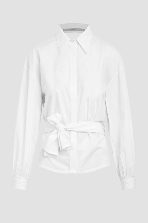 - Our Wrap Poplin Top is cut from soft 100% cotton in White. Finished with a button-front closure, pointed collar and drapey back wrap.